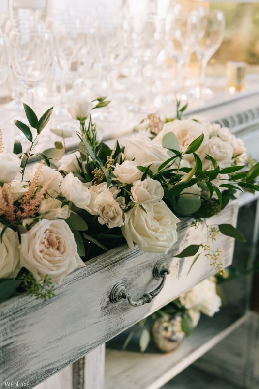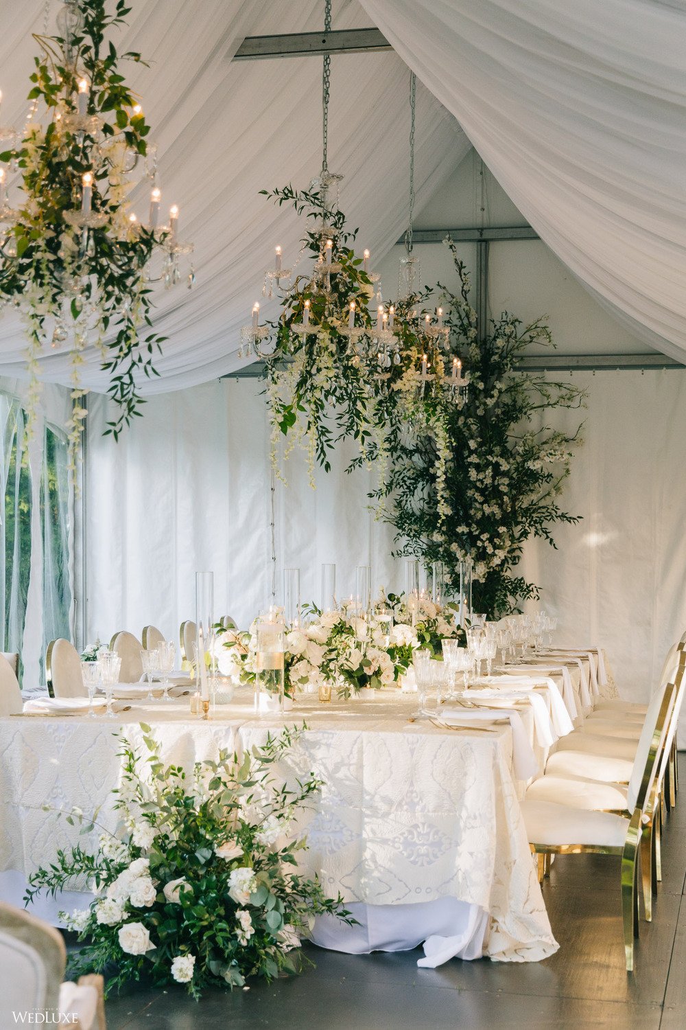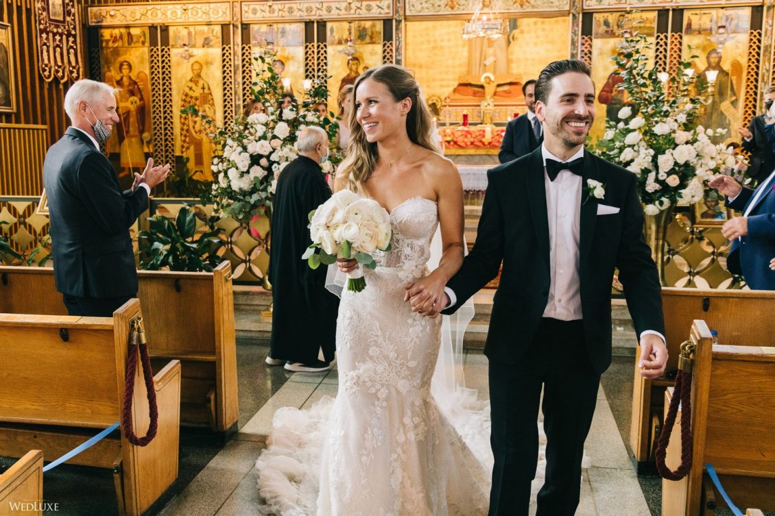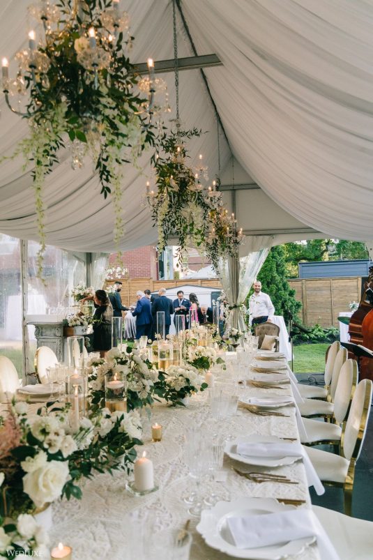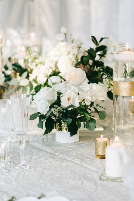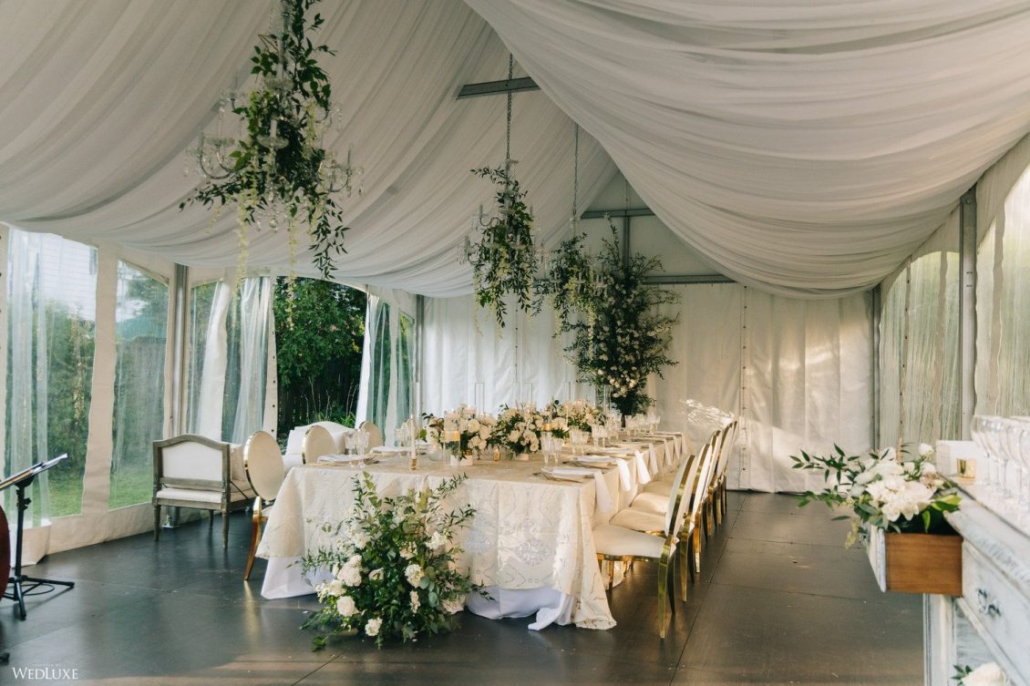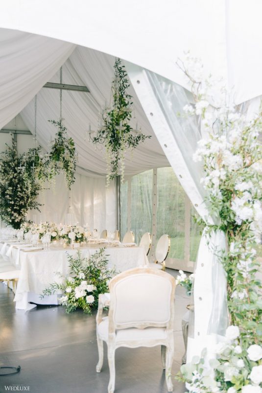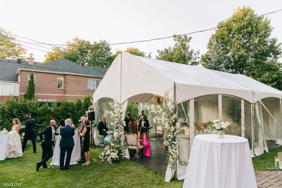 Andrea and Philip’s intimate wedding takes their theme of “Backyard Elegance” to the next level with a chic, sophisticated tent reception space, full of lush white blooms and greenery!