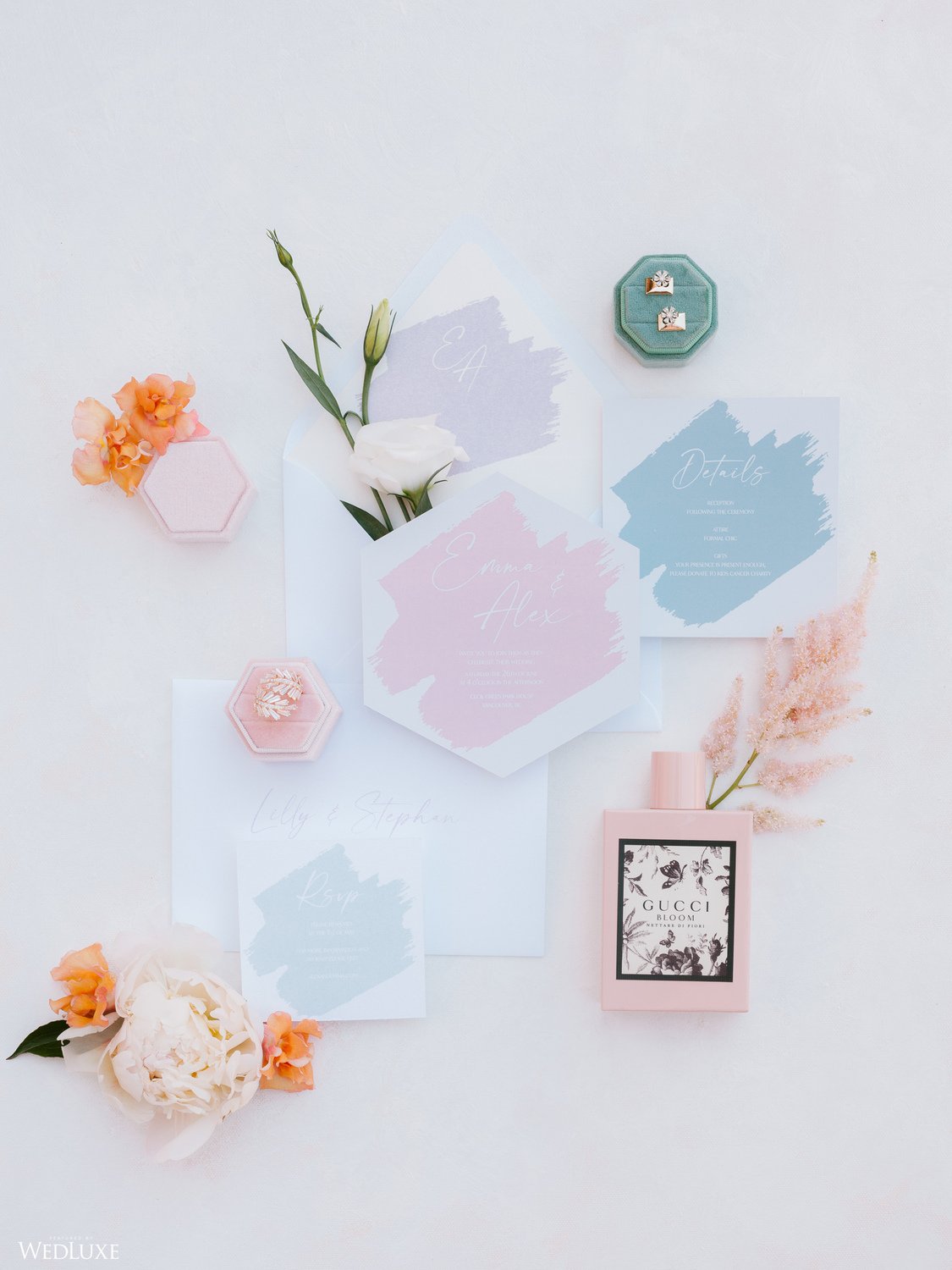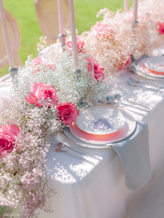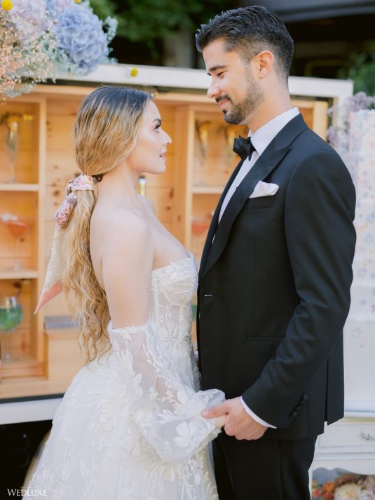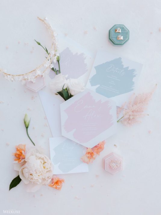 Enter a serene dream with this intimate summer garden-inspired shoot with pastel hues that add a splash of color against lush greenery. So romantic yet effortless!