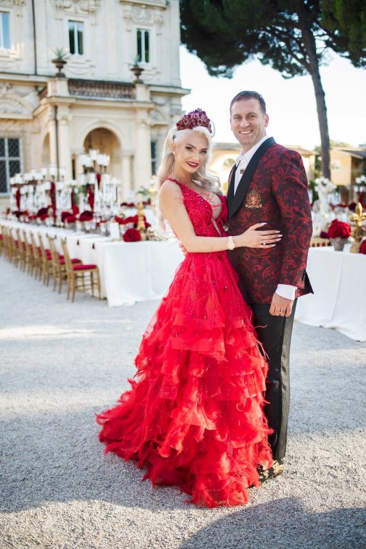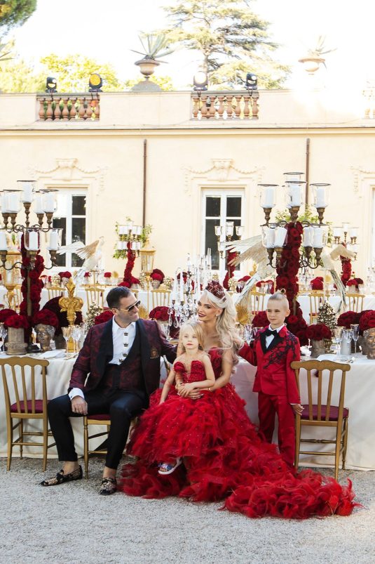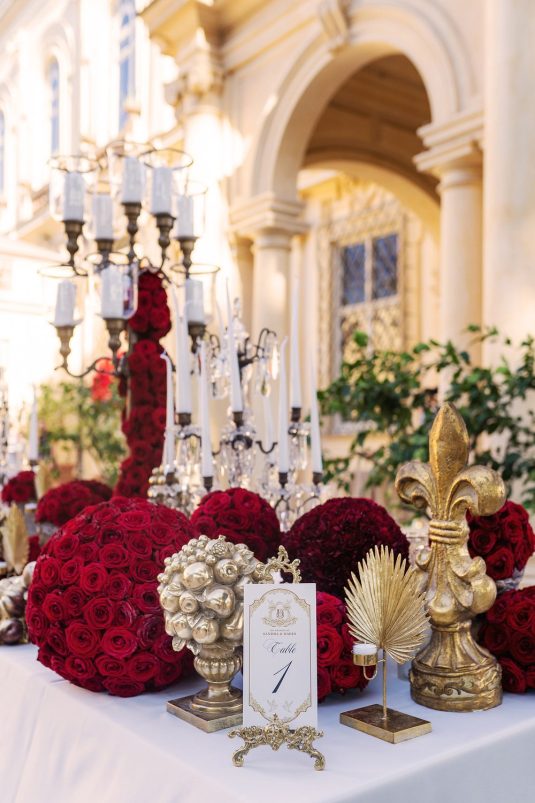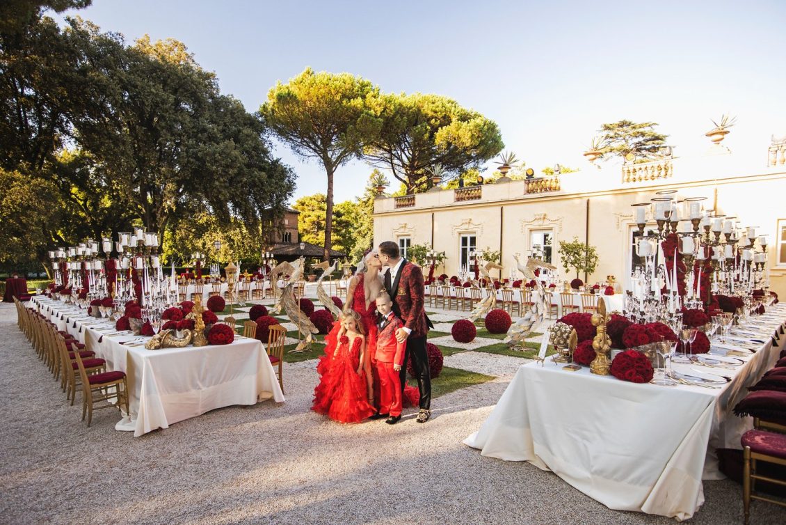 Bride @sandraskorup Photography @nakutisphotography Event Planning @italianweddingsandevents and @eventsbygibiza Floral and Decor Design @flowercouturebymp_official Red Gown @robertkalinkin Formal Wear @dolcegabbana Beauty @isikayhan Catering @californiacateringrome Light and Sound @tecnoservice2000official Entertainment @knightsclub.vip Videography @varnastudios Venue @villaaureliagianicolov