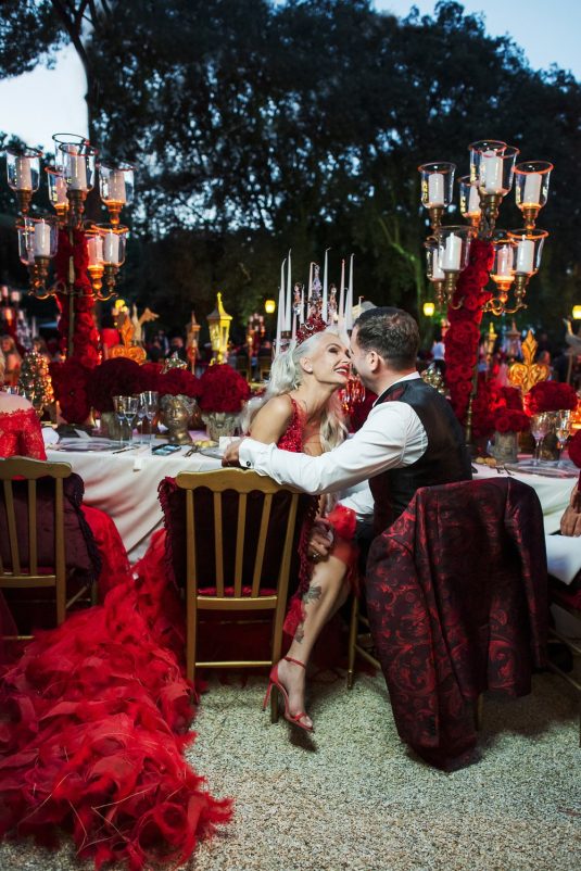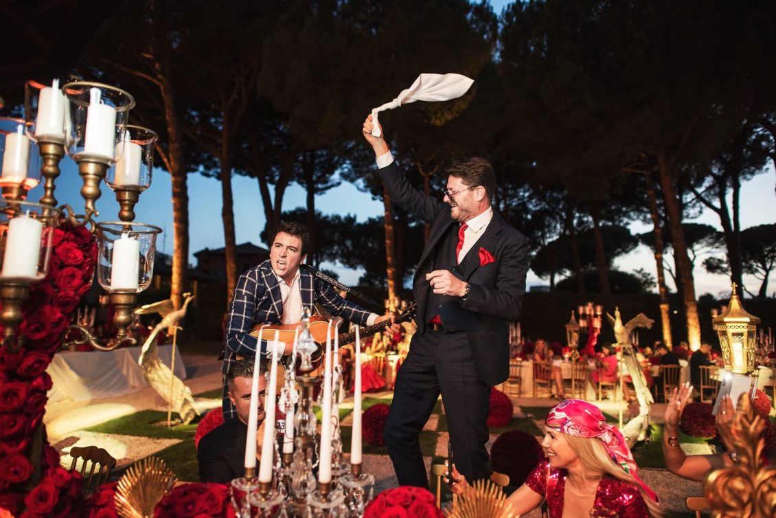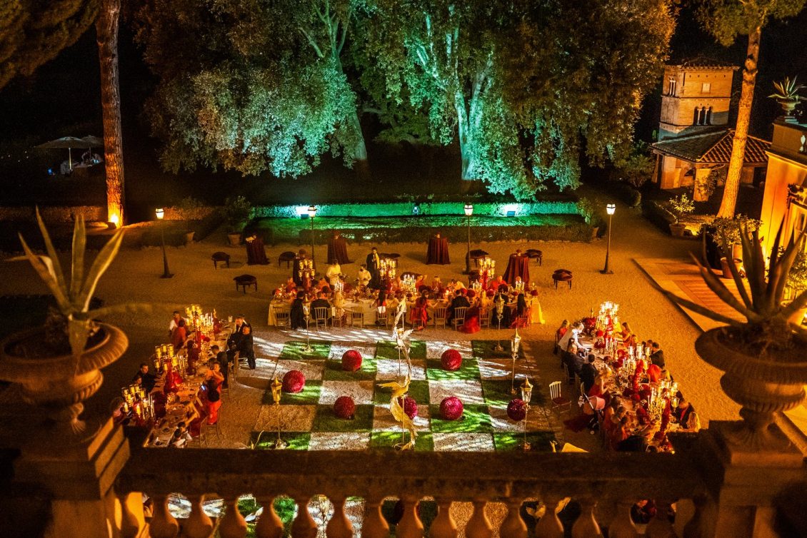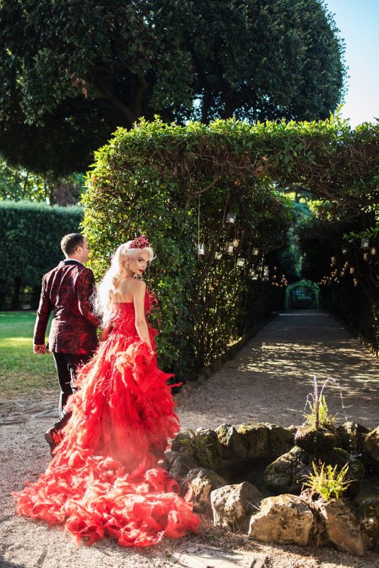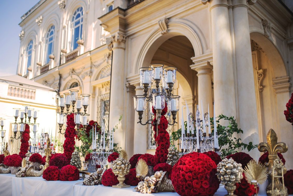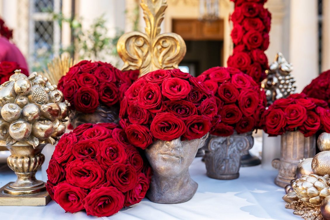In honor of Valentine’s Day, we’re serving up red-Haute opulence! The day before their wedding, Sandra and Dario welcomed their guests in the most magnificent Villa in Rome, Villa Aurelia. How romantic is this setup—which we can only describe as being a baroque wonderland WOW!!!!
