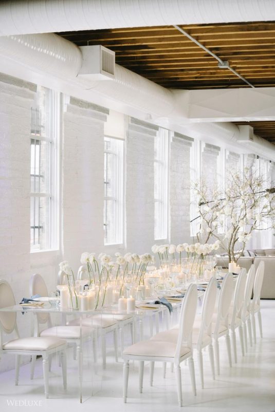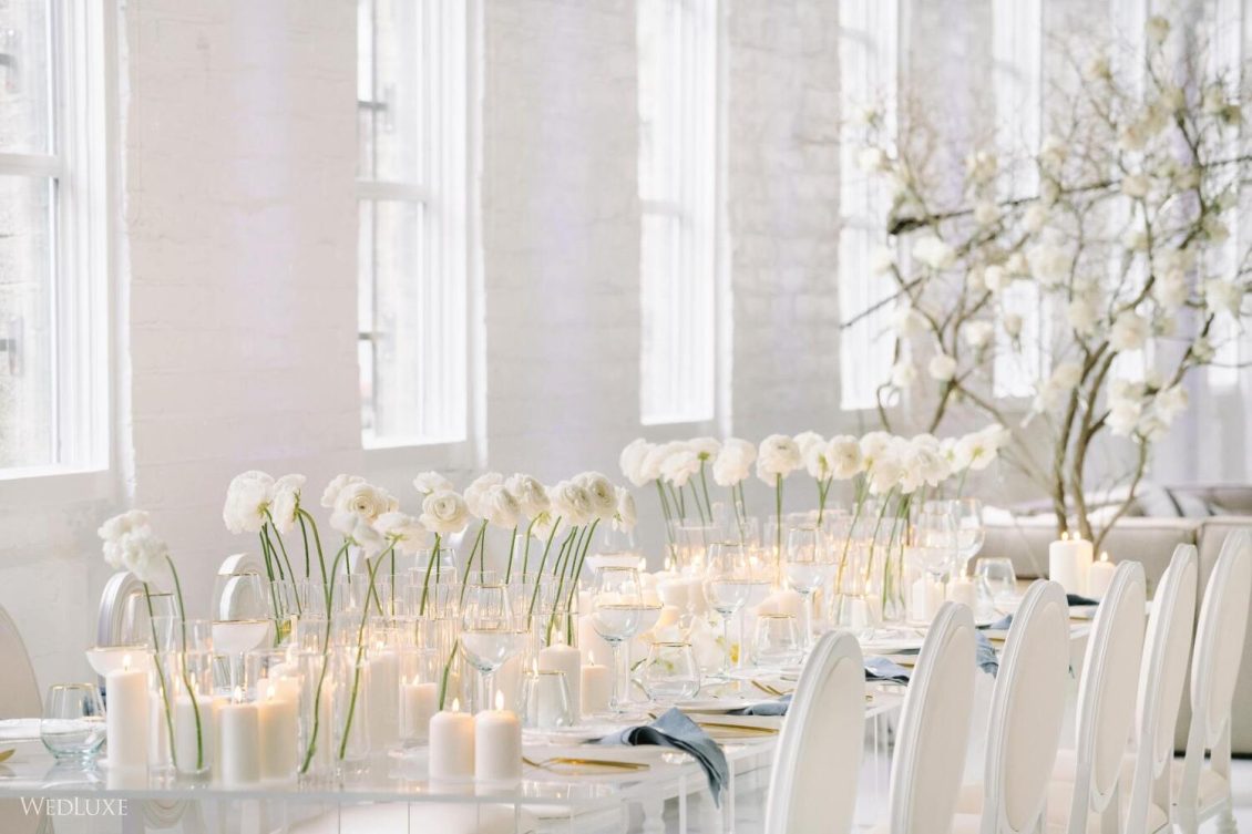 This monochromatic bespoke-iridescence-themed styled shoot graced the cover of our latest Vancouver print edition of WedLuxe! We’re THRILLED to be able to share more of the images from the story here. The issue was dubbed “Style & Grace.” Notably, the city of Vancouver, BC (and the Vancouver wedding and events industry) suffered one of the longest and most stringent sets of lockdowns in North America, so we honestly couldn’t think of a better name for the issue as we are in awe of the grace under pressure shown by so many of our friends and colleagues in Vancouver, and across the world. For today, we would love to give a special shout-out to the entire team, led by Soha Lavin, principal event designer of CountDown Events. Despite the challenges each of these businesses individually faced over the last two years, they came together to create a photo shoot that feels fresh, hopeful, and modern. Style and grace are personified.