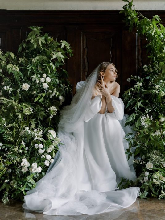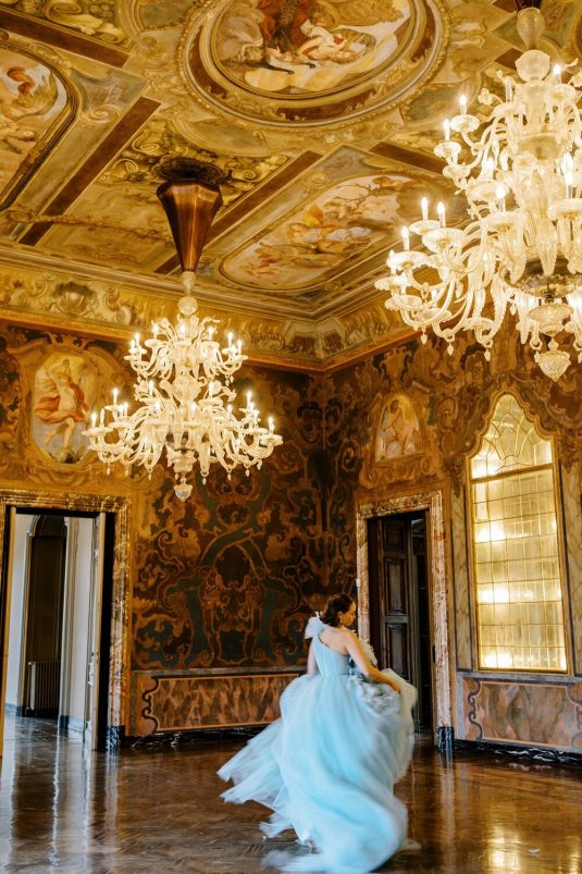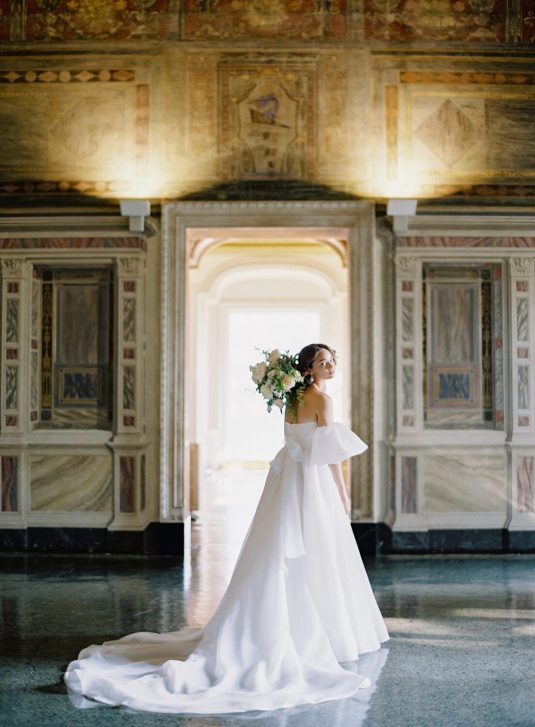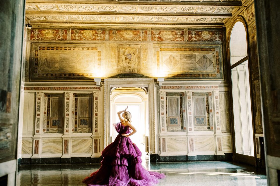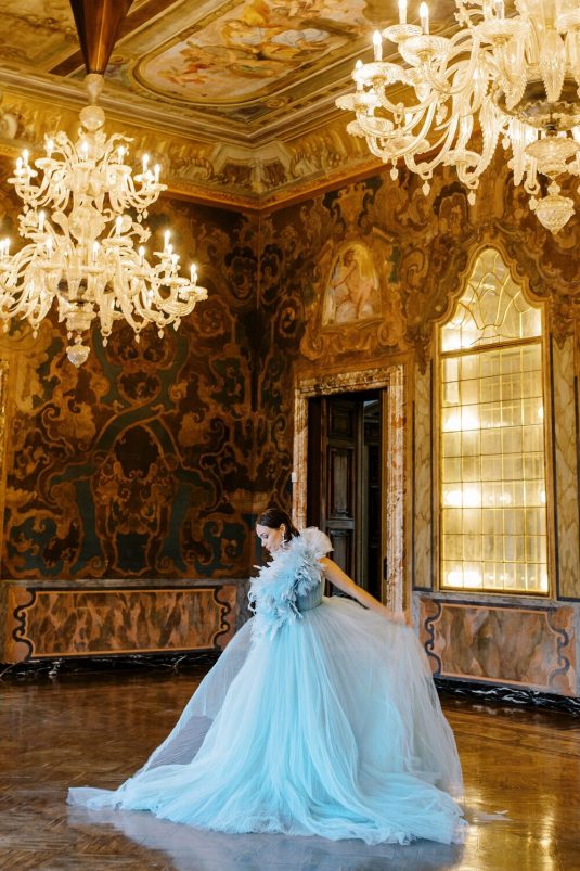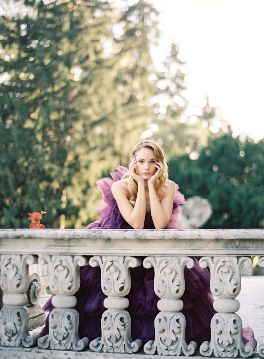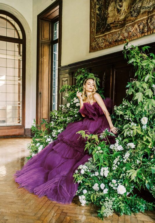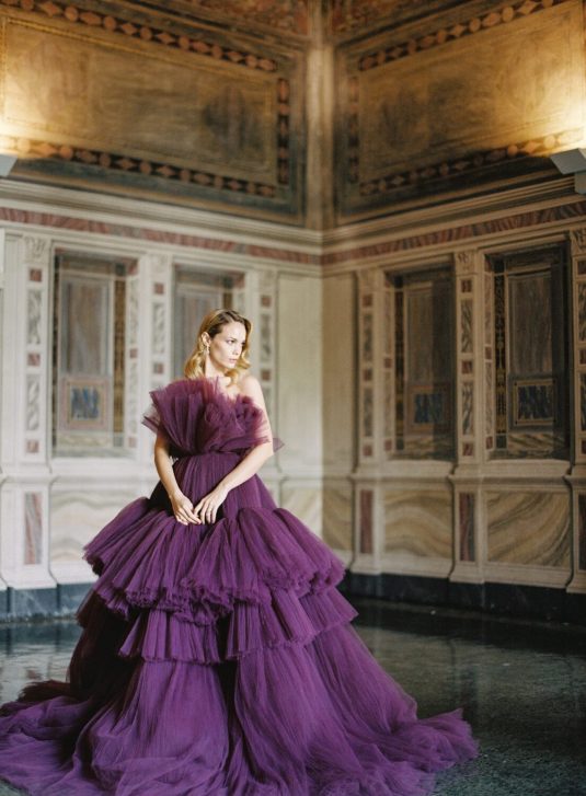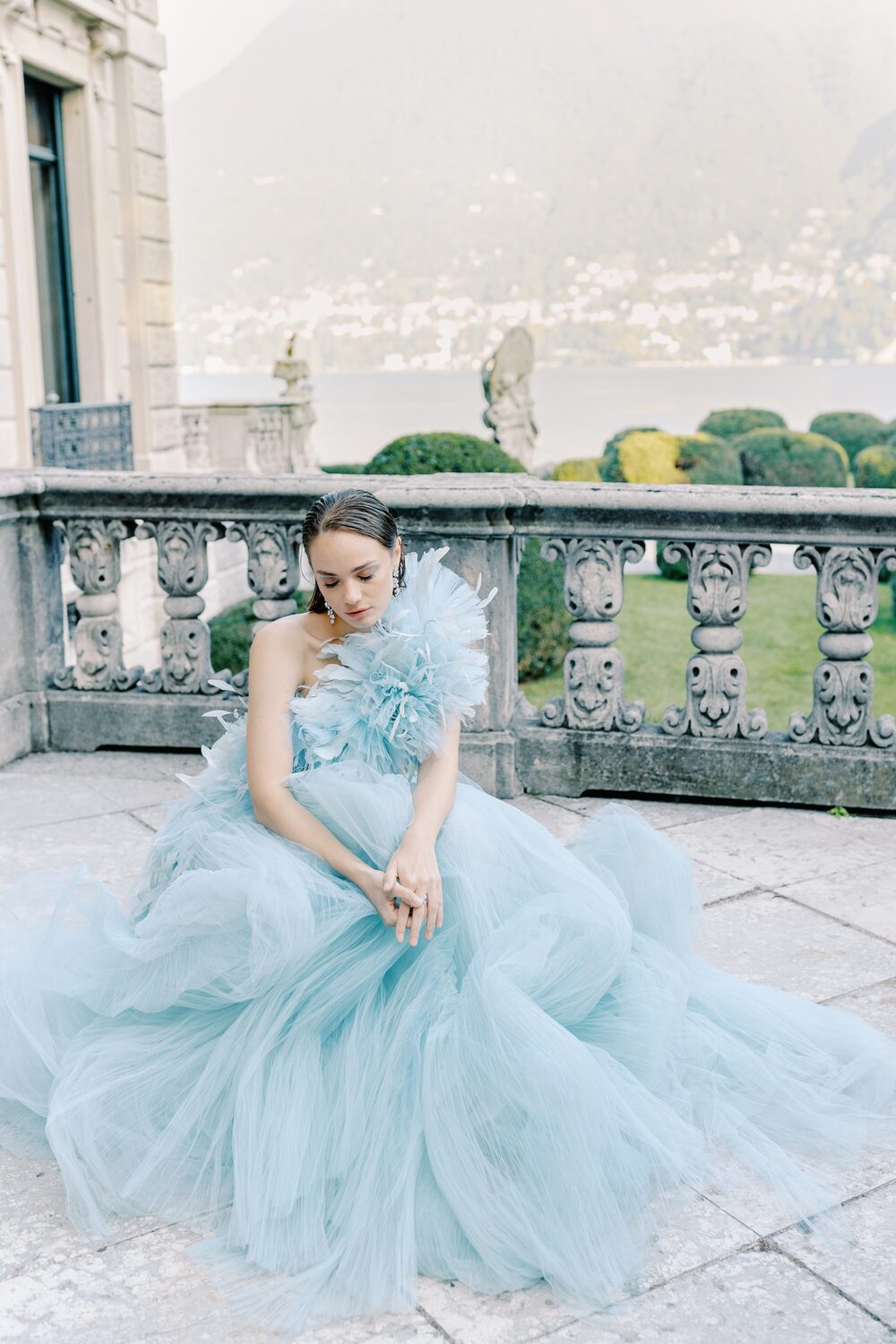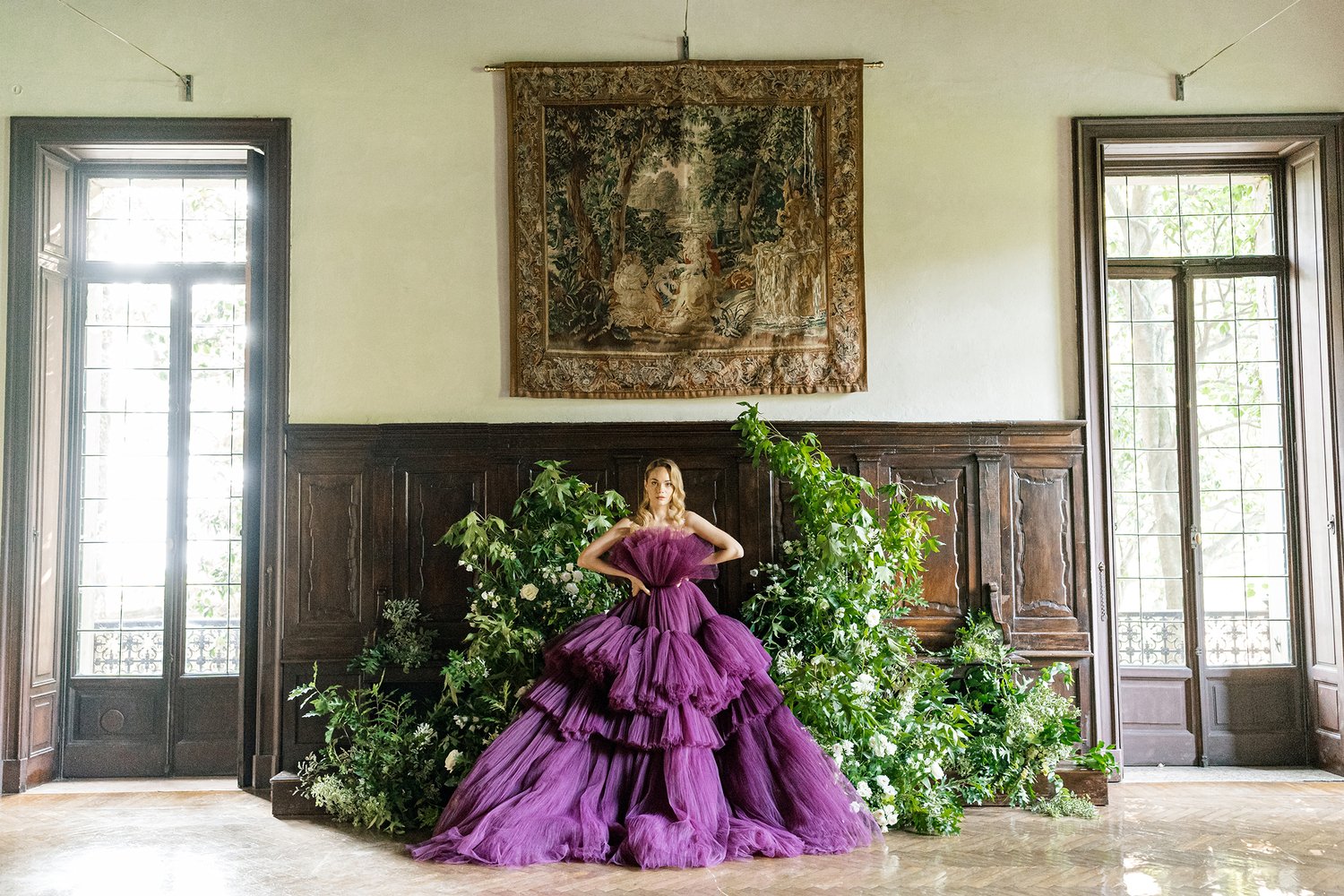 This styled shoot set at Villa Erba on Lake Como pushes the boundaries of extravagance and fashion. Photographer and event stylist, Amy Mulder shares she loves to push herself out of her comfort zone and that she, “wanted to give flare to what a fashion-forward bride’s uniqueness could be.”