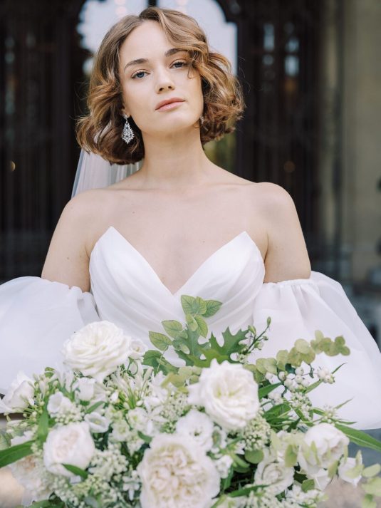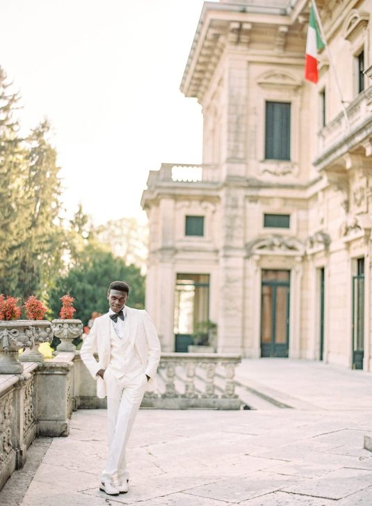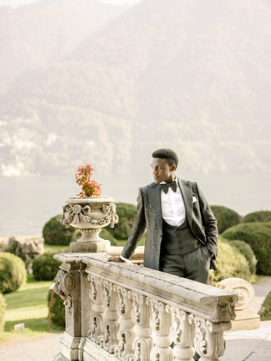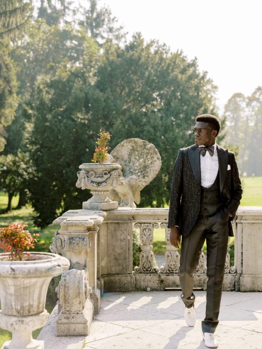Photography and Male Styling, Amy Mulder Photography – Design and Female Styling, Federica Beni Event & Design – Floral Design, Floraison Paris – Planning & Coordination Before The Moon – Colored Gowns, Sara Mrad – White Gown, Eva Lendel – Hair and Makeup, Alessandro Mancino Studios – Formal Wear, Sebastian Cruz Couture – Jewellery, Eden Luxe Bridal, and Amelie George Bridal – Rings, Artaner Paris – Location, Villa Erba – Cinematography Koman Photography