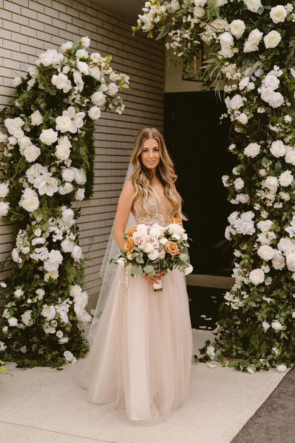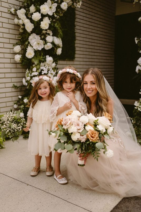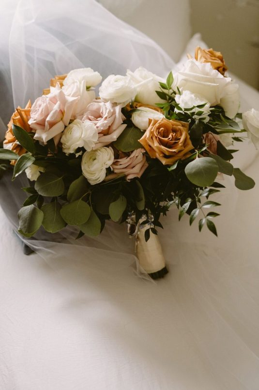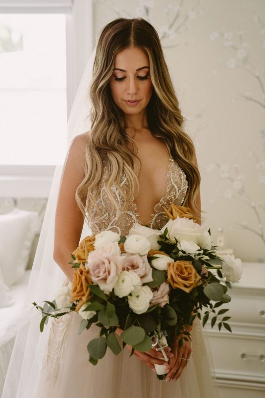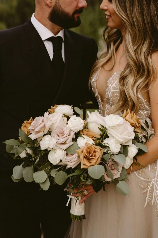 WILD THEORY FLORAL & EVENT DESIGN created a romantic bouquet guided by the colour of Alexandra’s bridal gown.