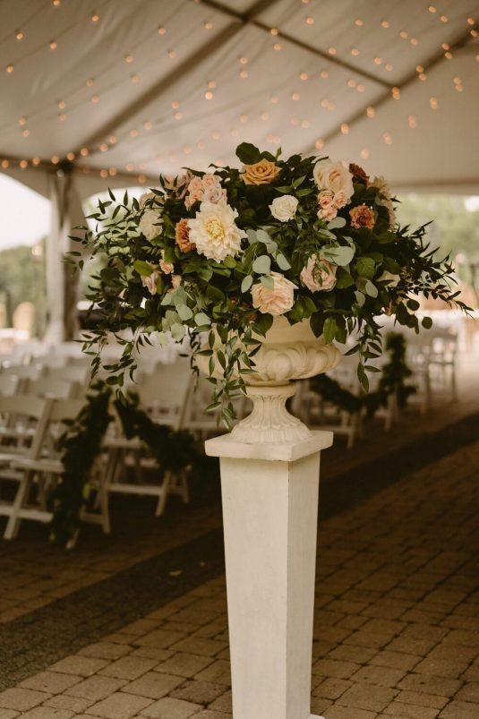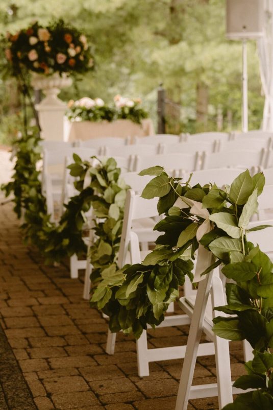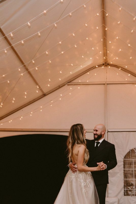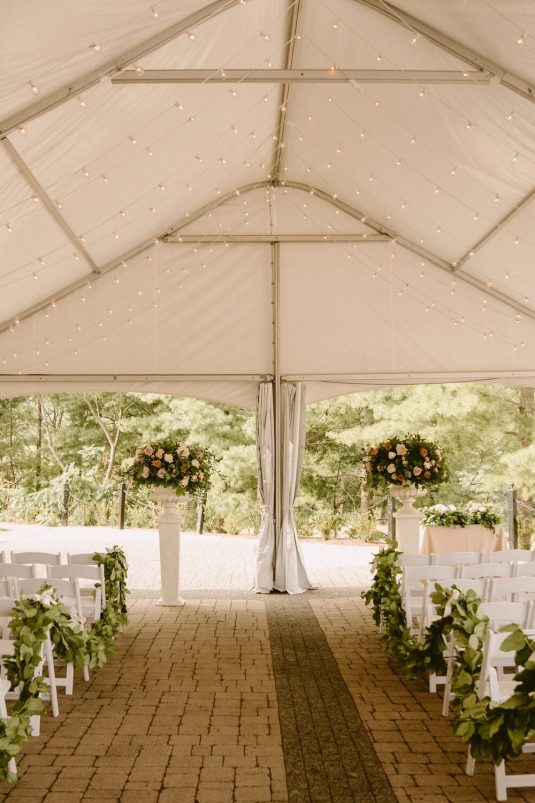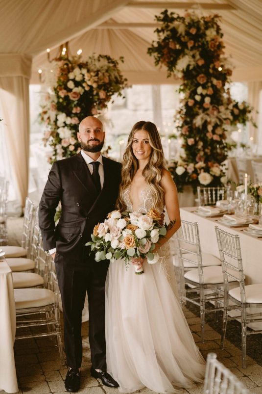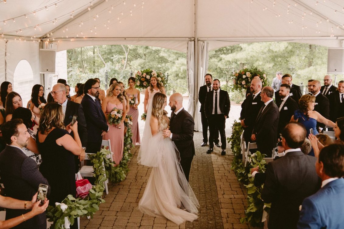 With Covid-19 restrictions, the couple knew they wanted an outdoor wedding. “Our biggest priority was making sure we would safely be able to have the people we love in attendance. We couldn’t imagine our wedding day without certain people, so the priority was making a space that could accommodate those who meant the most to us,” shares Alexandra.