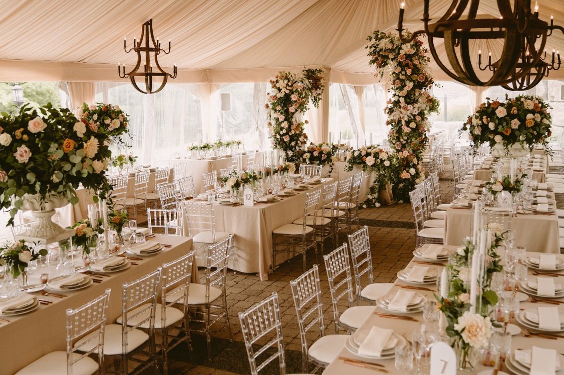 The ceremony and reception were both held at Copper Creek Golf Club in individual open-air tents provided by