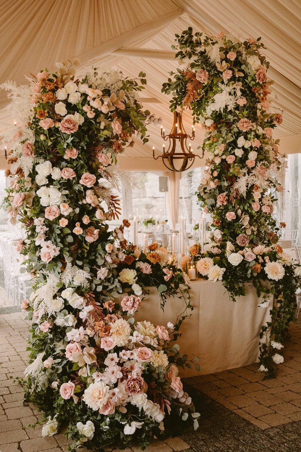 Nude-toned draping installed by Eventure also added a sense of warmth to the space. Various textures of stone, ceramic and wooden elements all came together to bring the “Bohemian Desert” vibe to life.