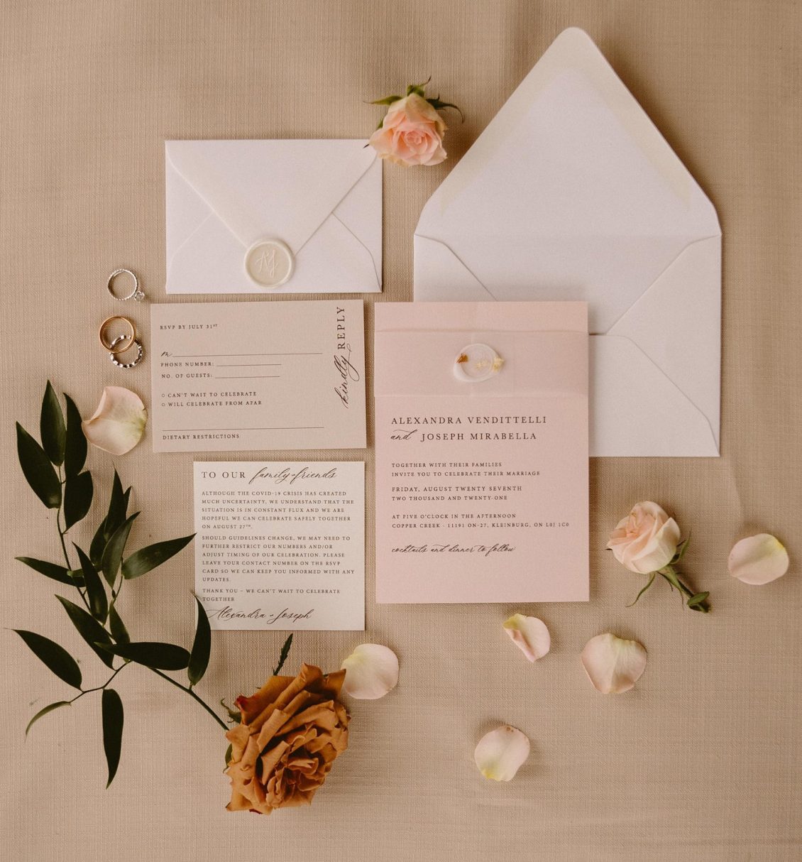 In November of 2019, Joe invited Alexandra to a Toronto Maple Leaf’s game, something the couple often did so it didn’t raise any suspicions on Alexandra’s part. “He told me we were meeting his lawyer and his wife downtown for dinner beforehand, so to dress accordingly.” Joseph also said they would take an Uber since his lawyer had great taste in wine and they’d likely drink a few glasses. As Alexandra arrived at Joseph’s house she realized something wasn’t adding up. “As I walked in, all the lights went off and all I could see was the glow of candles. I made my way up the stairs to find Joe in his family room surrounded by flower arrangements and candles. Of course, at that moment I knew what was happening and I could not believe he pulled off such an elaborate scheme. He had arranged for all of our family and friends to come over that same night and celebrate with us. It was absolutely perfect.”