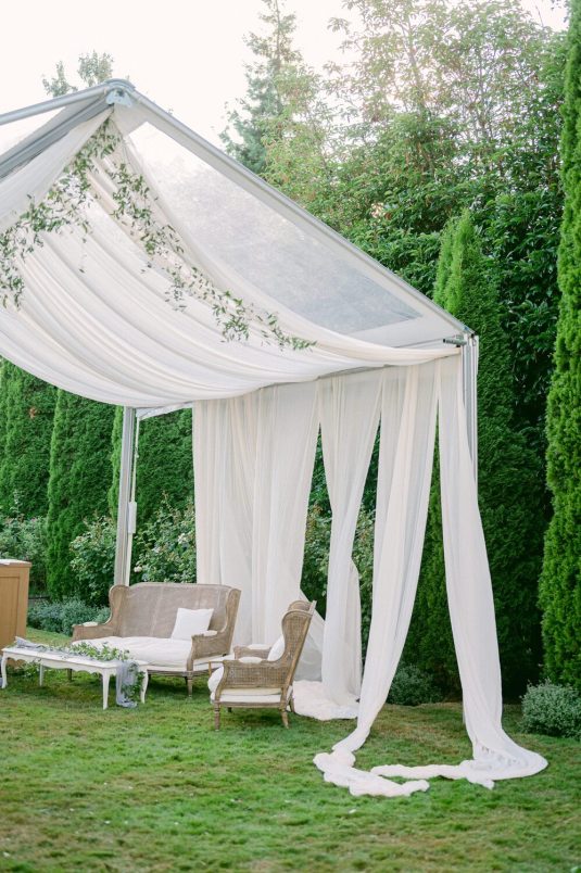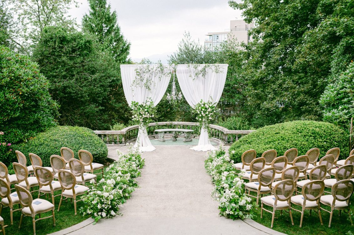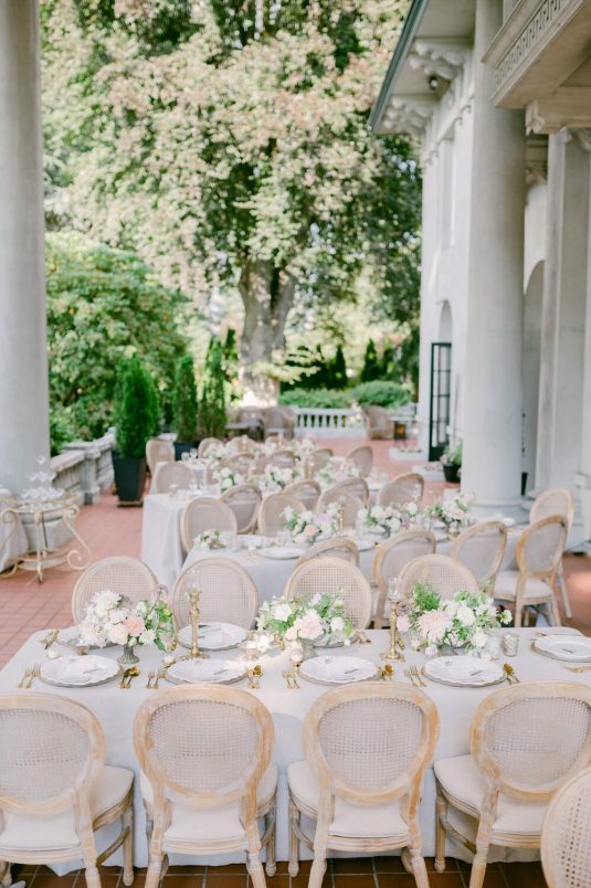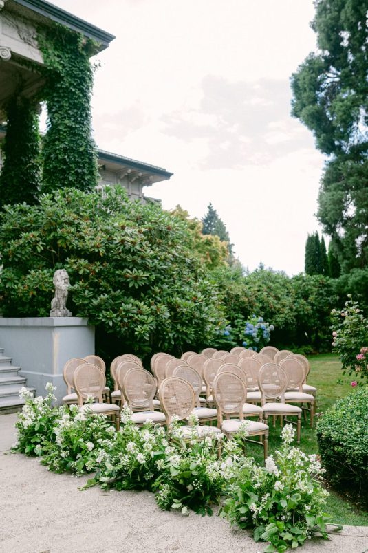 The University Women’s Club of Vancouver at Hycroft provided the perfect venue for the couple’s old-world European elegance theme. Heather Siu from Myrtle et Olive provided full-service planning, floral, decor, and event design services for the big day.