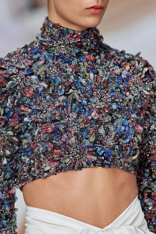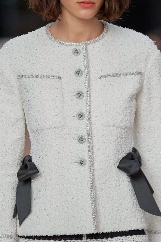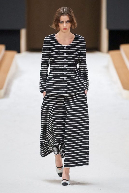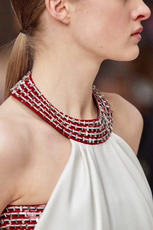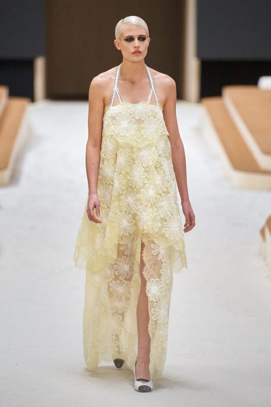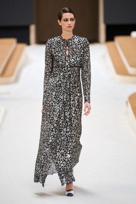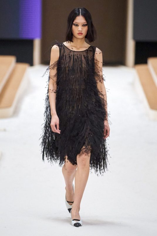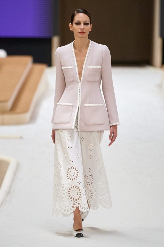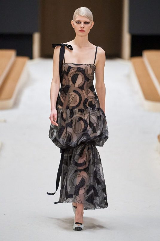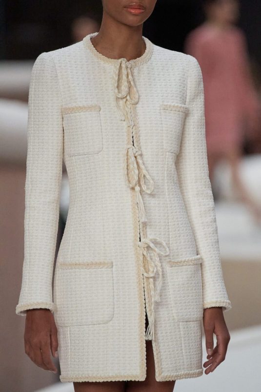 Chanel’s Spring Couture 2022 Collection finds its inspiration in the 1920’s Constructivism period in fashion and art. This avant-gard era is manifested in the set built by artist, Xavier Veilhan and artistic director, Virginie Viard’s new take on the Chanel tweed suit while elements of the flapper days are visible in the use of feathers, fringes, filmy chiffon. Veilhan says, “I think that in fashion there is always this idea of a relationship with history, but also of always renewing constantly.” This collection bridges the gap between old and new while delivering timeless looks.
