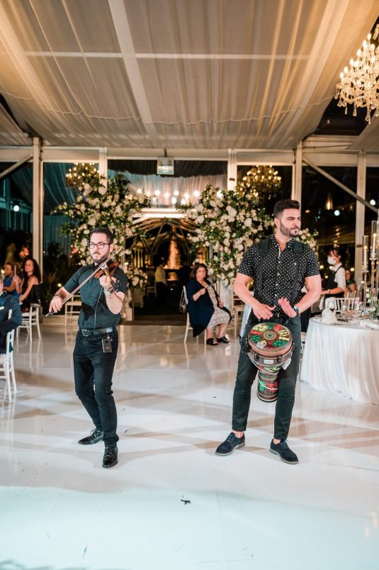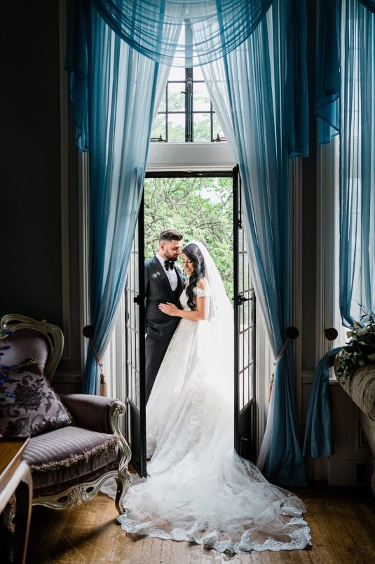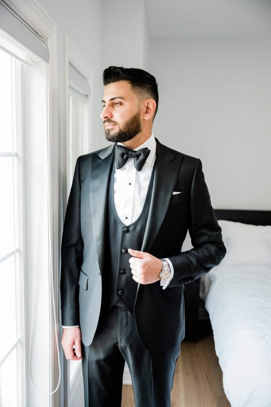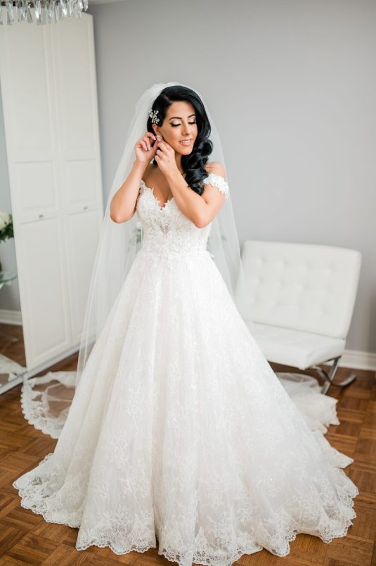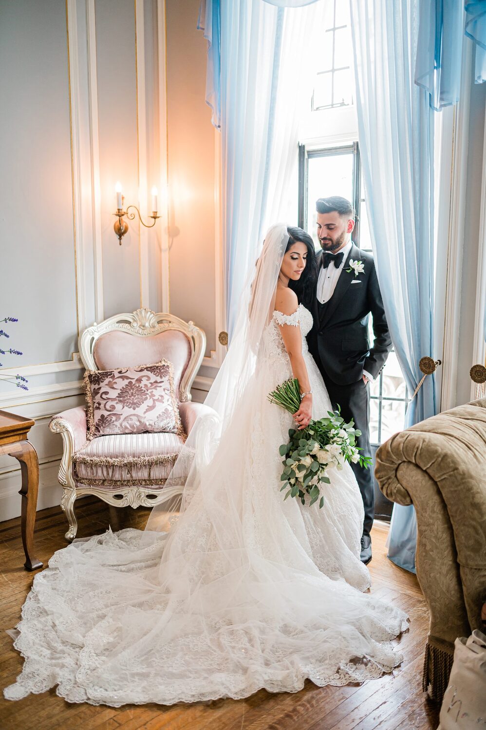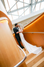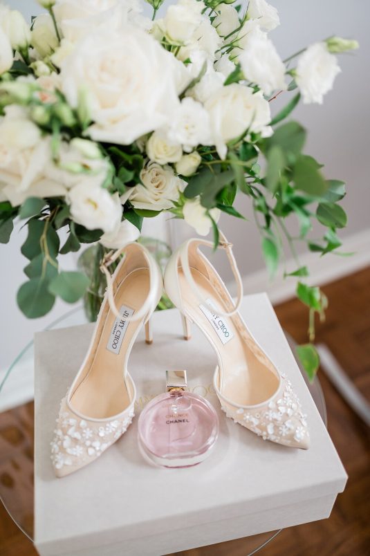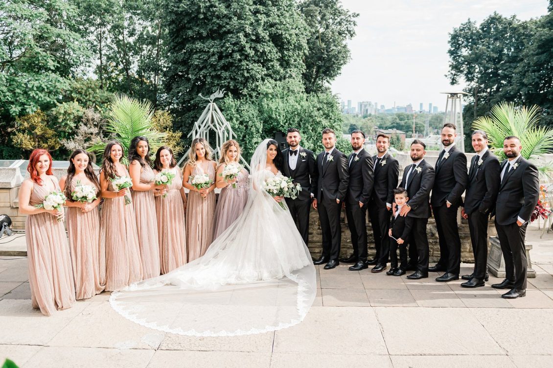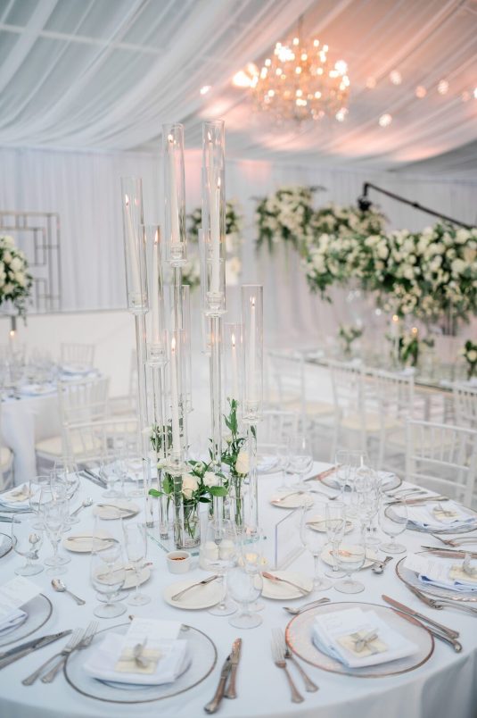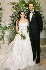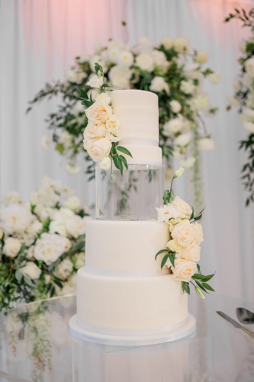 Julia and Robert’s blissful white wedding reception at Casa Loma’s Glass Pavilion was wreathed in white roses, overflowing greenery, and adorned with lush floral trees—creating the feeling of a modern yet ethereal garden. A true fairytale happily ever after!