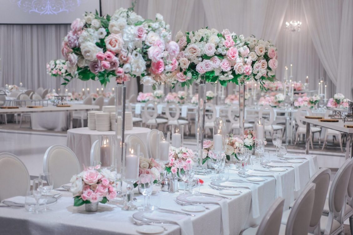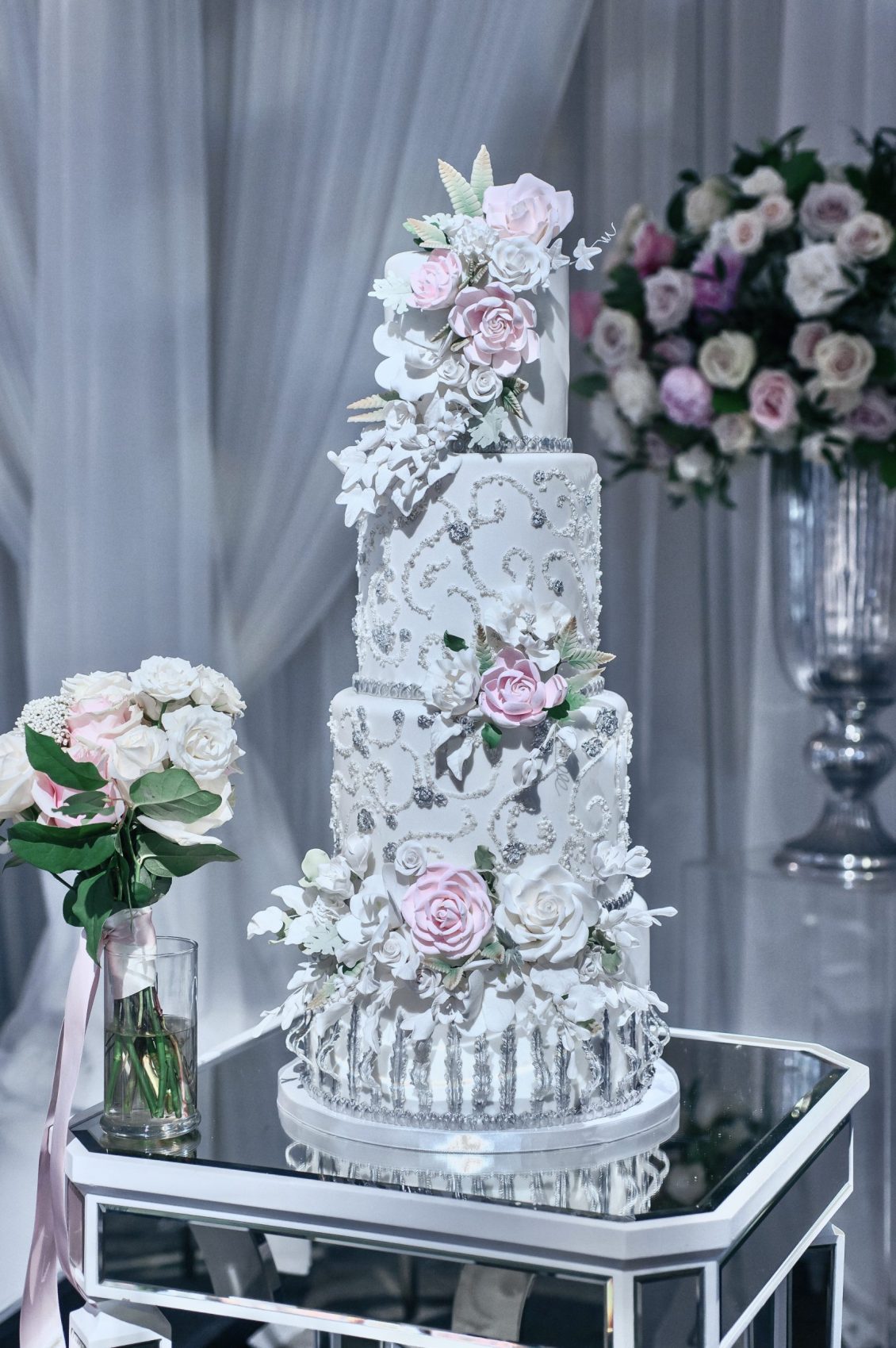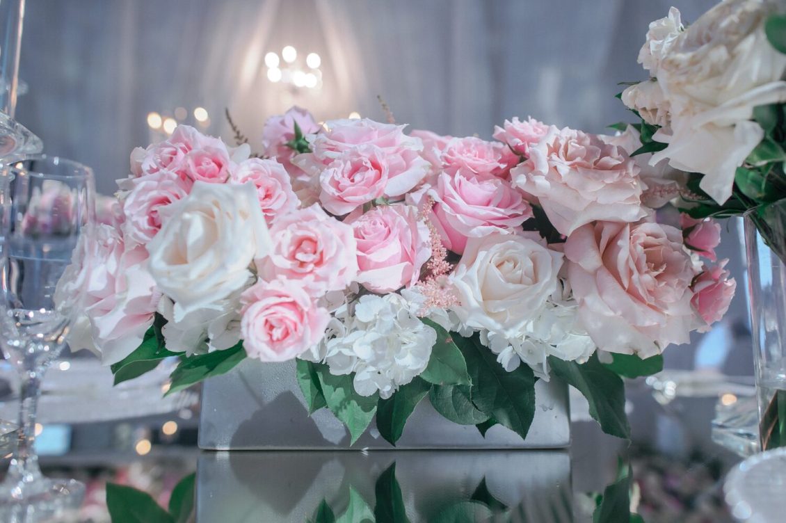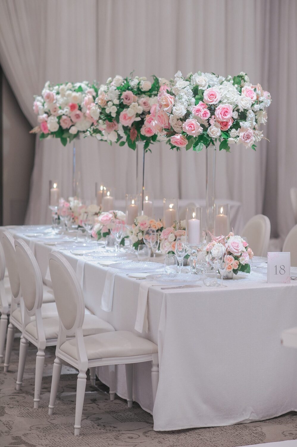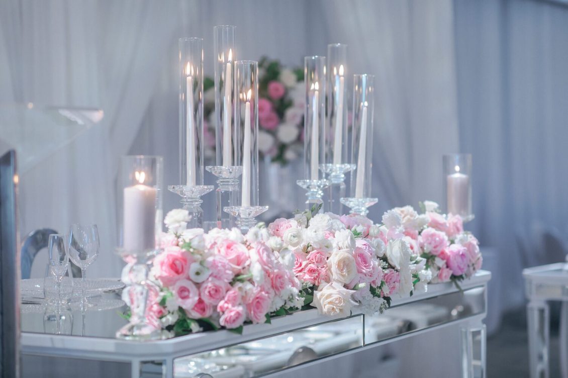 Everything was sparkling and magical at Diana and James’s modern yet classic reception. Beautiful soft pink and ivory florals adorned tabletops alongside crystal glass candelabras and silver accents making the space shine with a true fairytale elegance! Scroll down to enjoy all the glittering details!