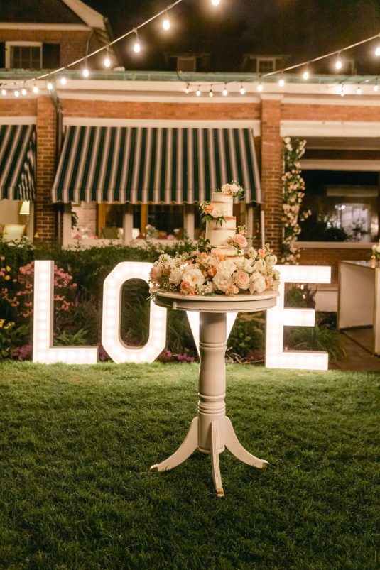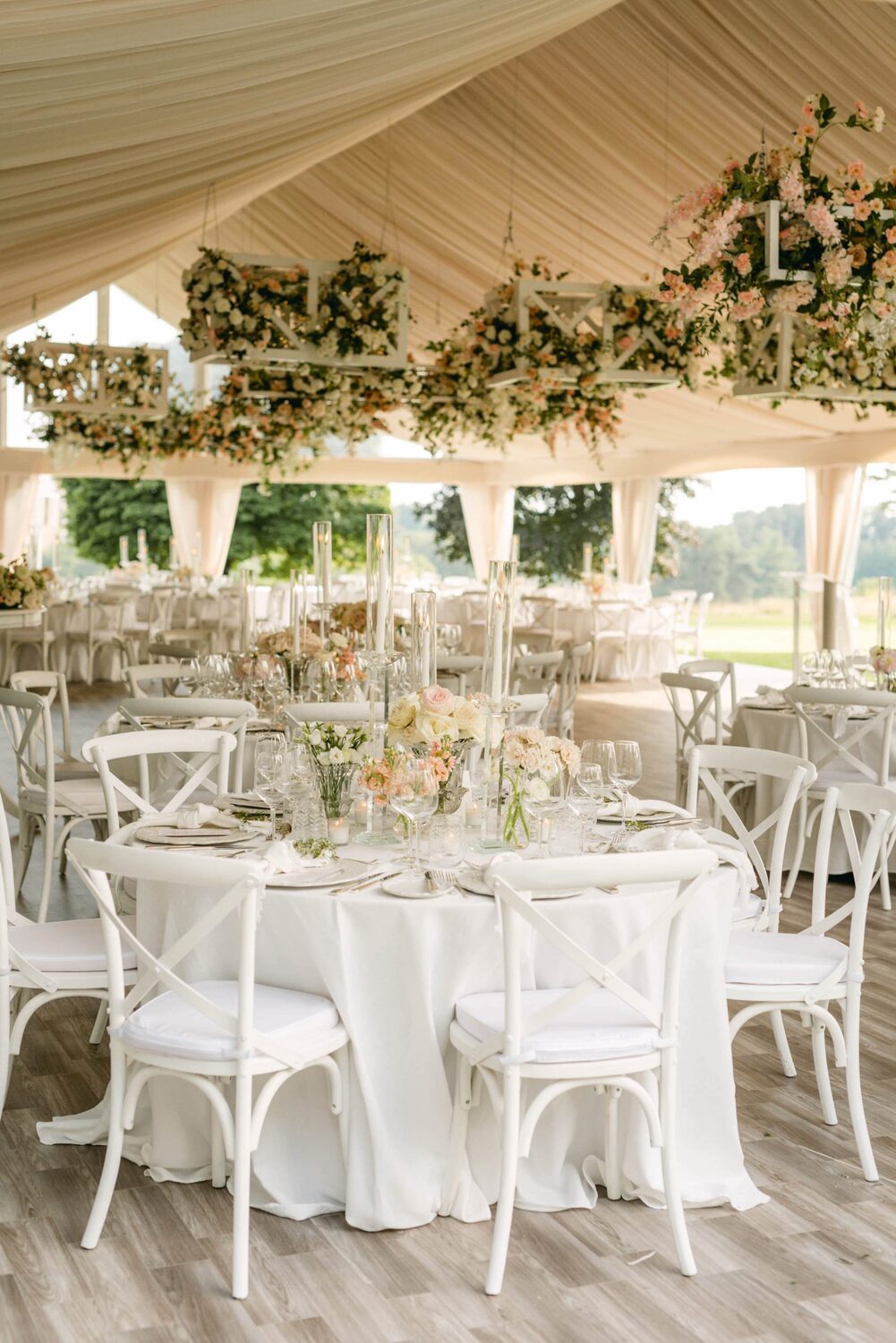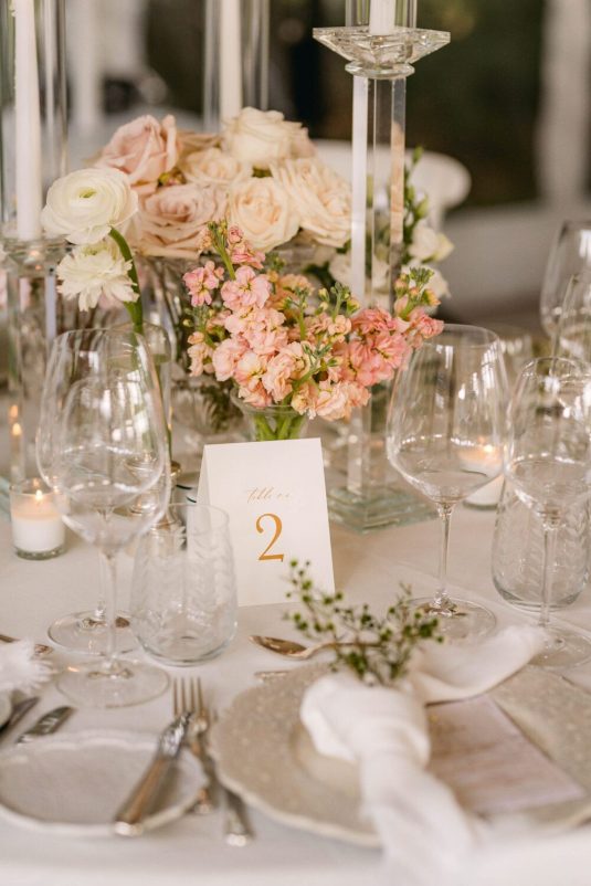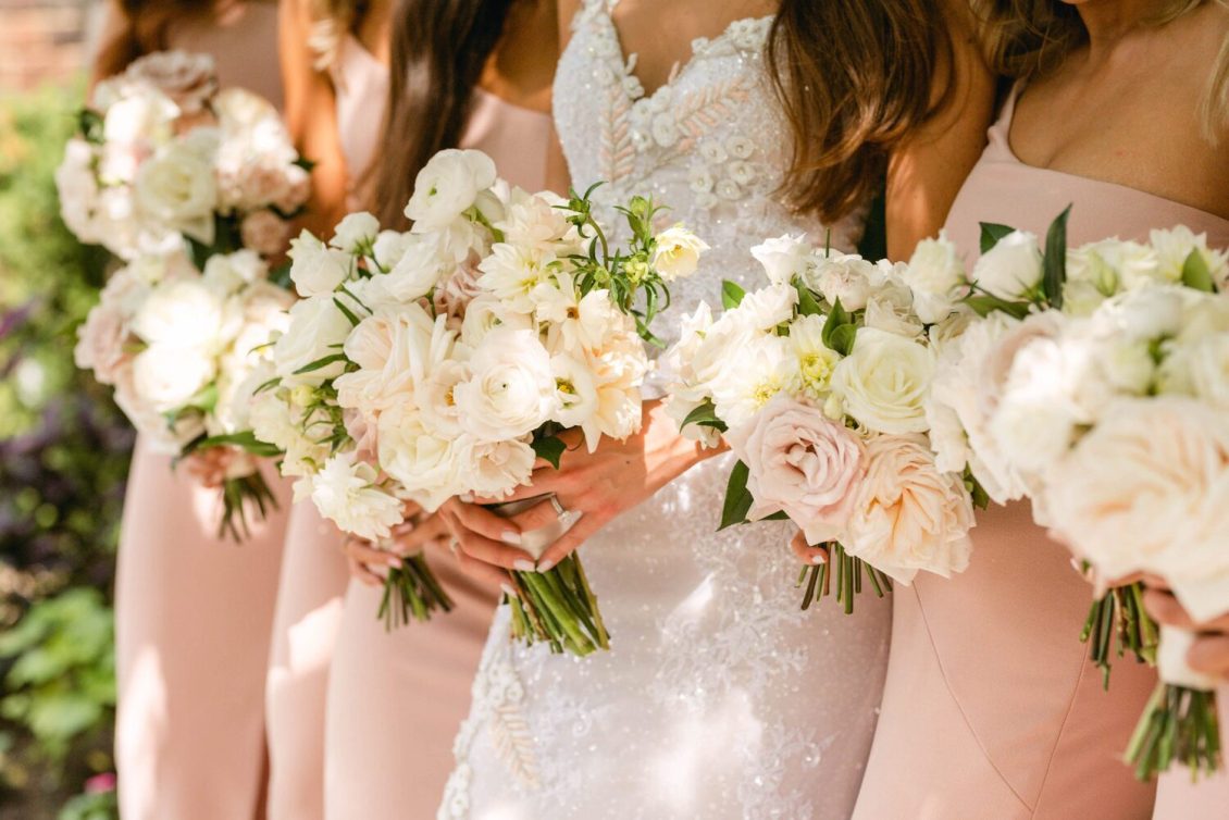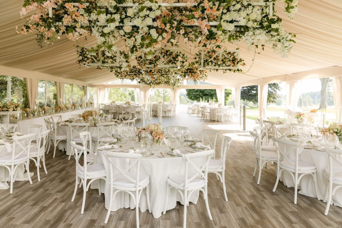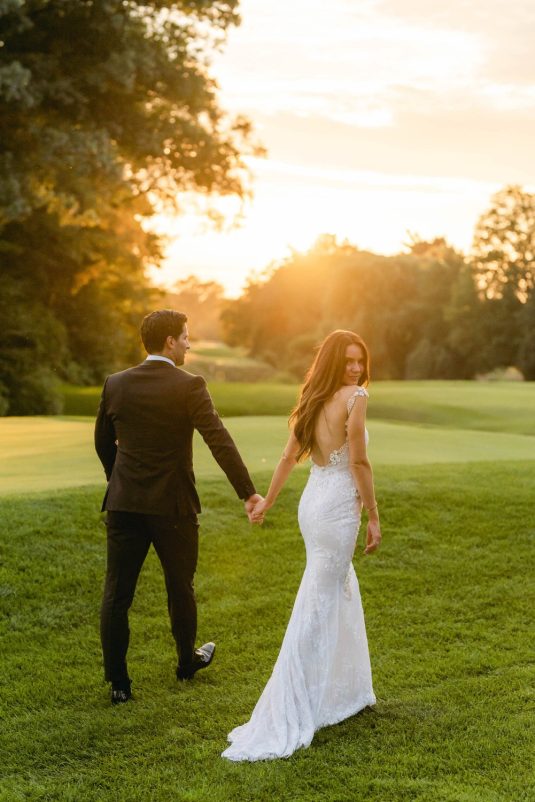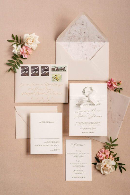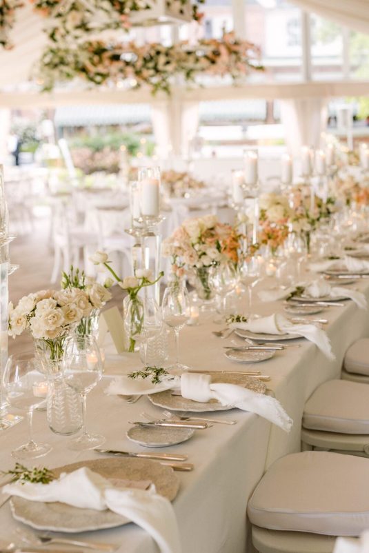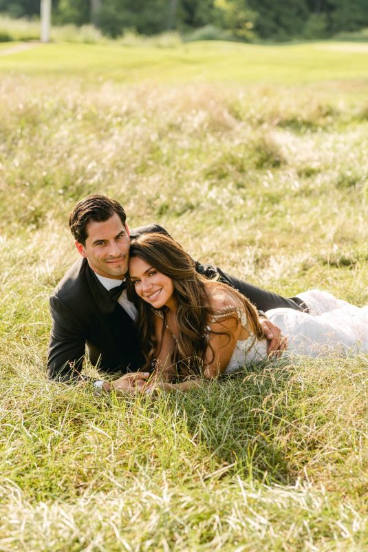 Floral, Decor and Event Design @rachelaclingen, Tent @premiertents, Photography @515photoco, Full-Service Planning, Decor and Event Design @kiera.caruso, Groom’s Getting Ready Location @fstoronto, Ceremony Location Blessed Sacrament Parish, Reception Location, Catering and Favours Toronto Golf Club, Invitations @plumecalligraphy, Day-Of Stationery @raquelwalmancreative, Bridal Gown Designer @lian_rokman, Bridal Gown and Veil Retailer @panachebeverlyhills, Bridal Shoe Designer @jimmychoo, Bridal Shoe Retailer @neimanmarcus, Romper @mirazwillinger, Groom and Groomsmen’s Formalwear, Bowties, Pocket Square and Groom’s Suspenders @carusofinetailoring, Cufflinks @etsy, Watch @audemarspiguet, Engagement Ring and Groom’s Ring @josephanthonyinc, Bridesmaid’s Gown Designer @lovenookie, Bridesmaid’s Gown Retailer @revolve, Bridesmaids’ Earrings Designer @madebymaddiedesigns, Bridesmaids’ Earring Retailer @bhldn, Hair Stylist @virasack @chrishairartist, Makeup Artist @fl.aw.less @annewiseblott, Chair Rentals @divinefurniturerentals, Tableware @splendidsettings, Linens @have_a_seat_events, Cake @trufflecakeandpastry, Draping @eventuredesign, Lighting, AV, Rigging and Entertainment @solepower, Favours @artigirls, Transportation @premiercoachtoronto, Cinematography @hidden_light_films