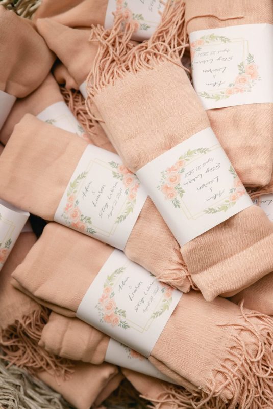 Adam proposed on Christmas morning 2020. “After micro-managing the gift opening (not suspicious at all), he saved the best for last,” says Lauren. “I opened up a sign that said “will you marry me?”, and when I turned around he was on his knee with the ring.”