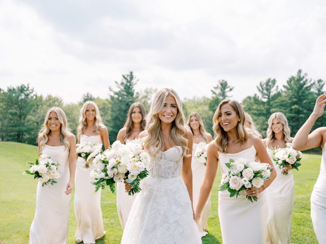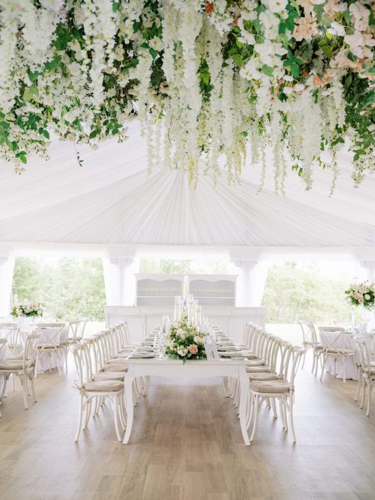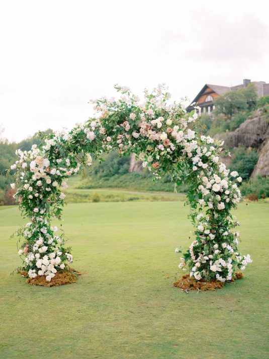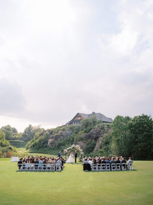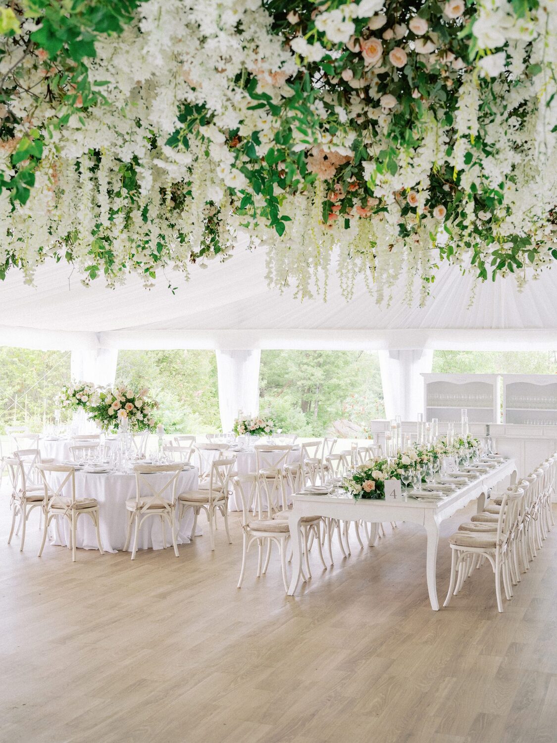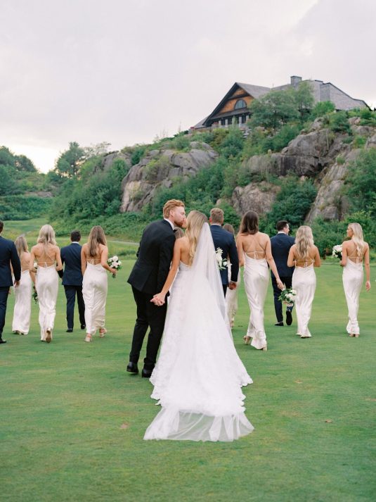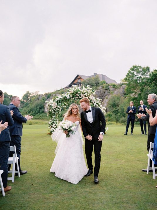 Floral, Decor and Event Design, and Rigging @rachelaclingen, Makeup Artistry by Brittany Gray @fancyfaceinc, Tent @premiertents, Location @muskokabayresort, Photography @willreidphoto, Full-Service Planning and Design Assistance @ashleypigottevents, Stationery @paperandposte, Bridal Gown 1 @mirazwillinger, Bridal Shoe 1 Designer @gianvitorossi, Bridal Shoe 1 Retailer @farfetch, Clutch @edie_parker, Rings, Earrings, Tennis Bracelet, Initial Necklace, and Bridesmaid Earrings @crownandcarat, Bridal Gown 2 Designer @alexperryofficial, Bridal Gown 2 Retailer @desorderboutique, Bridal Shoes 2 @jimmychoo, Bride’s Watch @cartier, Earrings 2 @saks, Groom’s Formalwear, Bowties, Pocket Squares, Cufflinks, and Groomsmen’s Formalwear, Ties and Tie Clips @empirecustoms_official, Groom’s Watch @rolex, Bridesmaid Gowns @shonajoy, Hair Styling @allison_kam, Officiated by Joe Gorman, Furniture Rentals @detailzfurniturerentals, Linens @eventrentalgroup, Tableware @splendidsettings, Draping @eventuredesign, Rigging and Entertainment @solepower, Wedding Cake @trufflecakeandpastry, Cinematography @corinnemcdonaldfilms
