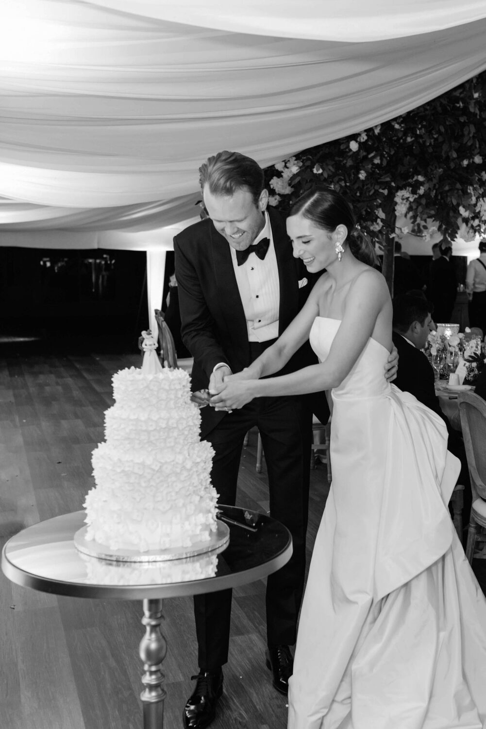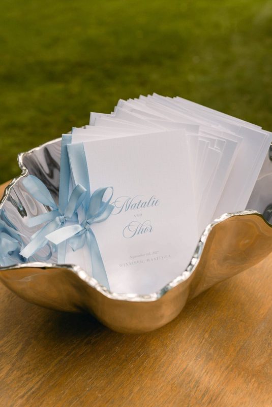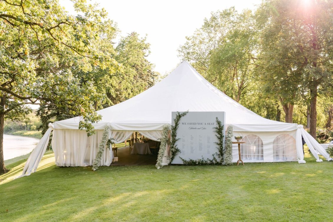 Full-Service Planning and Design Assistance @sincerelyyoursevents, Floral Direction, Decor and Event Design @rachelaclingen, Photography @515photoco, Floral Design @beyond_flowers, Stationery @katberingdesignstudio, Bridal Gown @oscardelarenta, Bridal Shoes @jimmychoo, Formalwear @tomford, Hair Styling by @jennamarianihair, Makeup Artist @myuzartistry, Furniture Rentals @collectiverentals_ @detailzfurniturerentals, Linens @simplybeautifuldecor, Custom Linen Cocktail Napkins @shopceces, Tableware @splendidsettings, Wedding Cake @lilacbakery, Catering @fairmontwinnipeg, Late-Night Pizza provided by Gino’s Pizza, Draping and Rigging @eventuredesign, Tent @pinnacleeventrentals, Lighting and AV @eventlight, Vinyl Flooring @reznickeventcarpets, Entertainment (Ceremony) @wpgsymphony (Reception) @bigcityallstarband