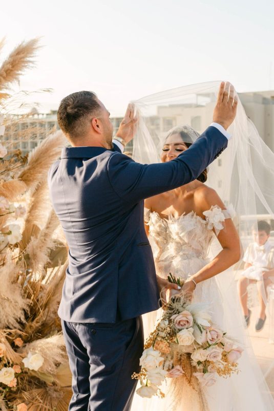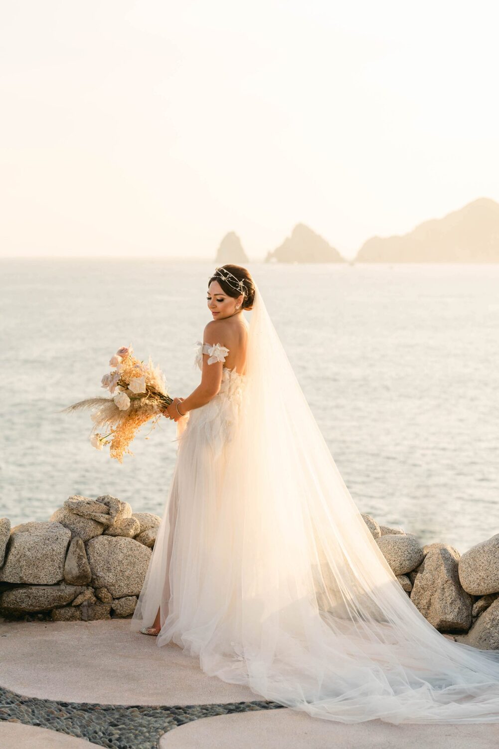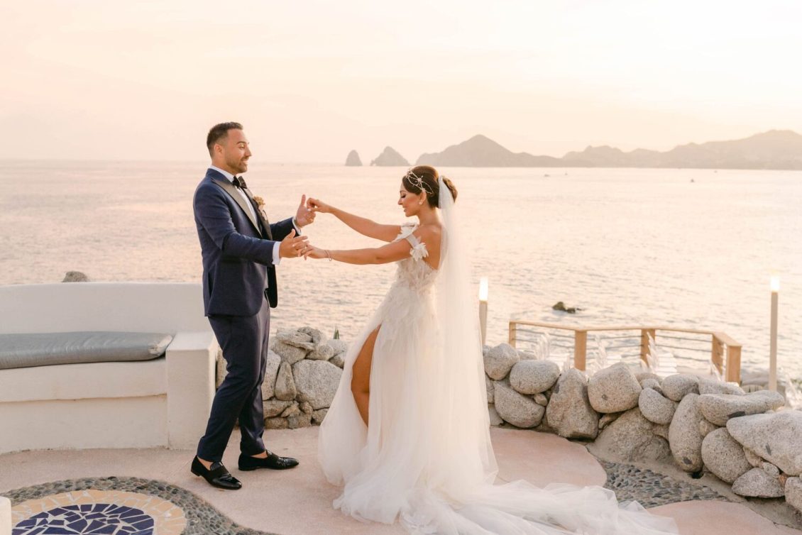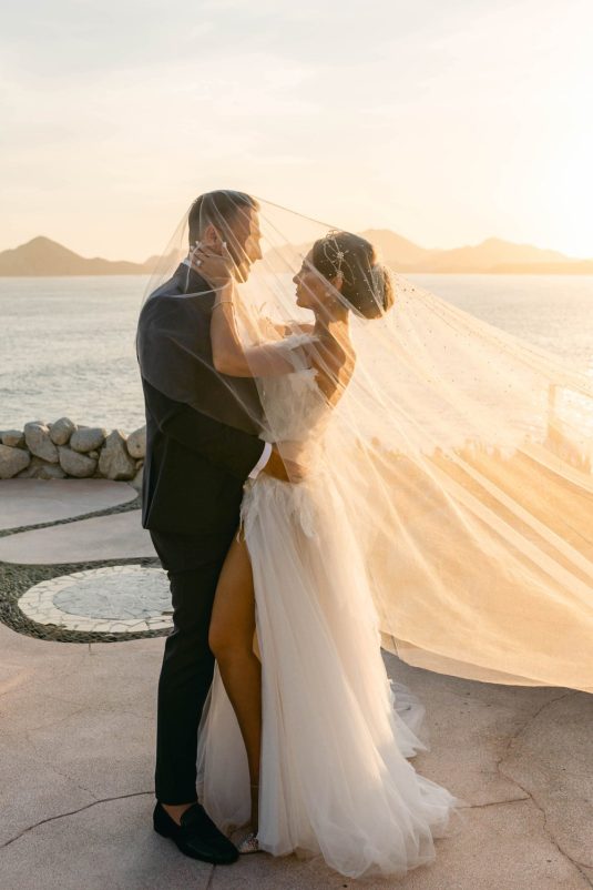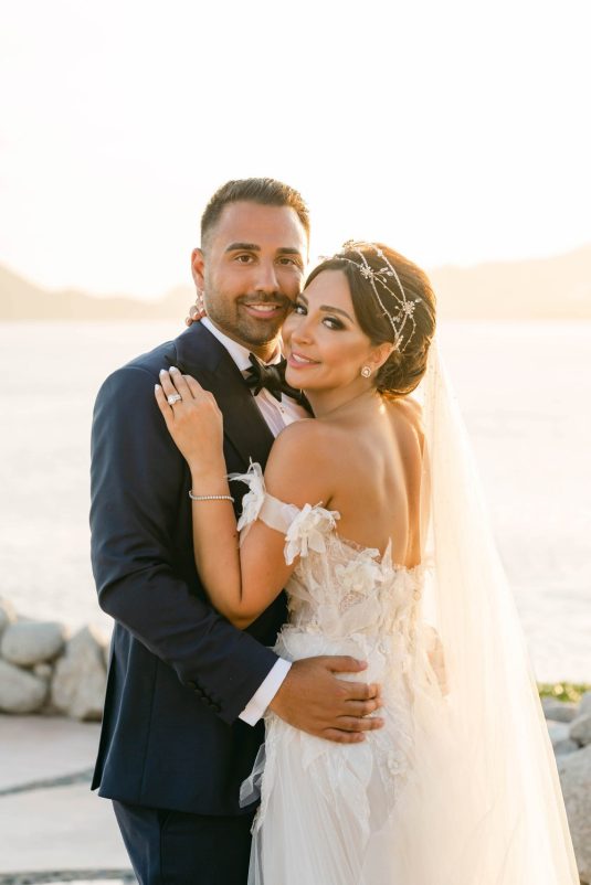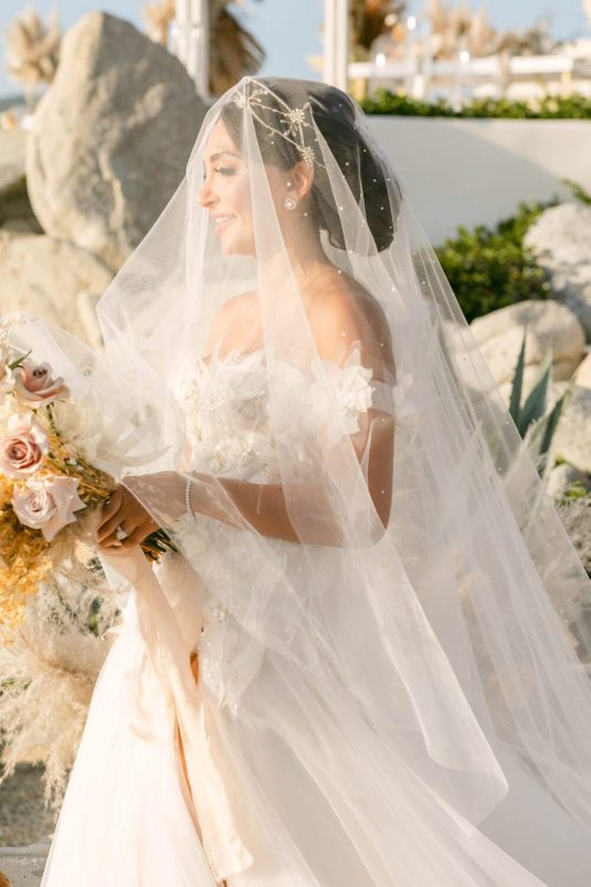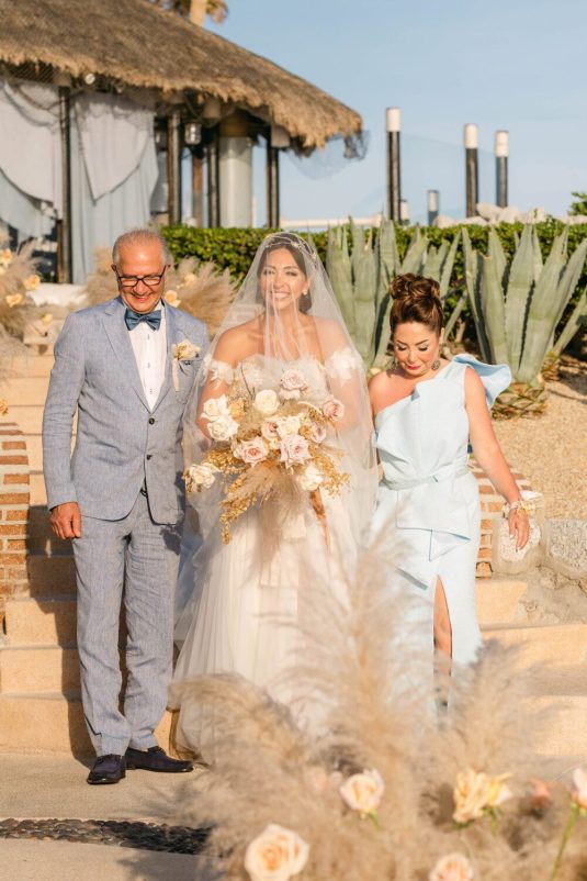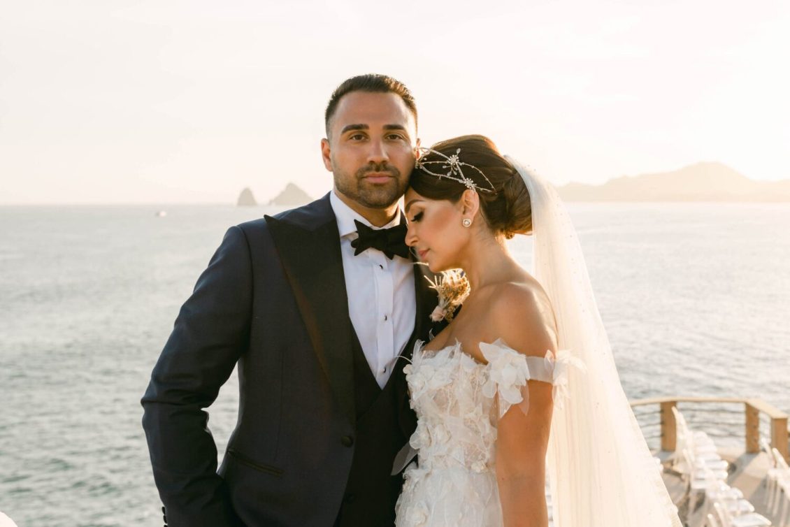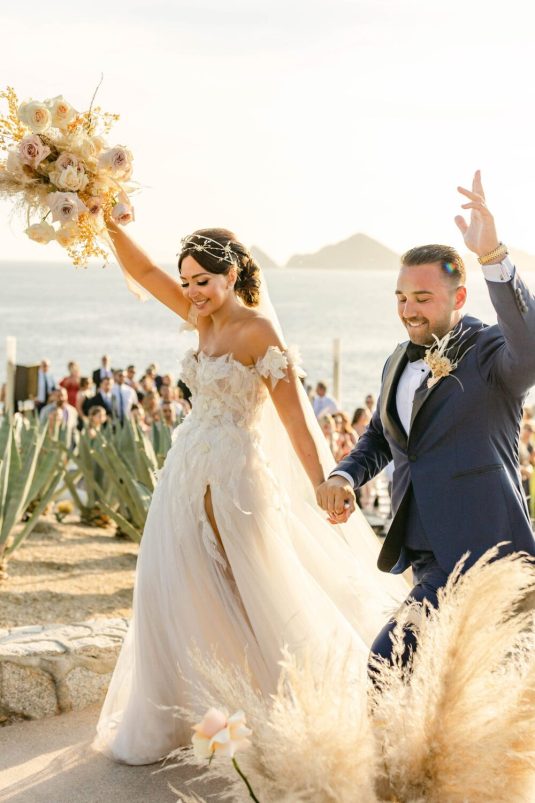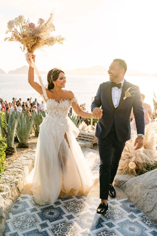 Groom’s Shoe Retailer @harryroseninc, Photography @515photoco, Full-Service Planning and Design Assistance @theeventeur, Getting Ready Venue @hyattzivacabos, Wedding Location, Catering and Wedding Cake @sunsetmonalisa, Stationery @minted, Floral Design @letitbloomcabo, Bridal Gown Designer @mirazwillinger, Bridal Gown and Accessories Retailer @powder_bride, Bridal Shoes @louboutinworld, Bride’s Rings, Earrings, Tennis Bracelet and Groom’s Cufflinks @raffijewellers, Formalwear @empirecustoms_official, Groom’s Shoe Designer @ferragamo, Bowtie @tomford, Watch @rolex, Groom’s Wedding Band @cartier, Beauty @shboutiquesalon, Rentals, Napkins and Glassware @let_it_be_events, Guest Favours/Custom Seating Chart @blackpalmcabo, DJ and AV @djm1lad, Transportation @transcabo, Cinematography @victorgreenfilms
