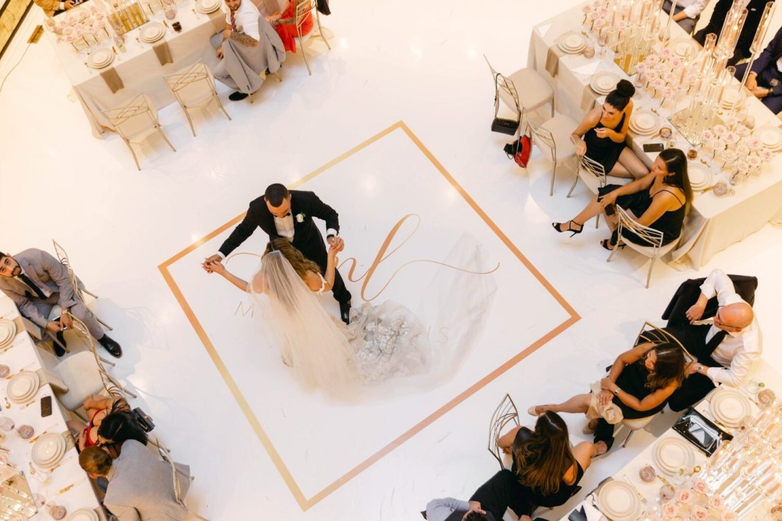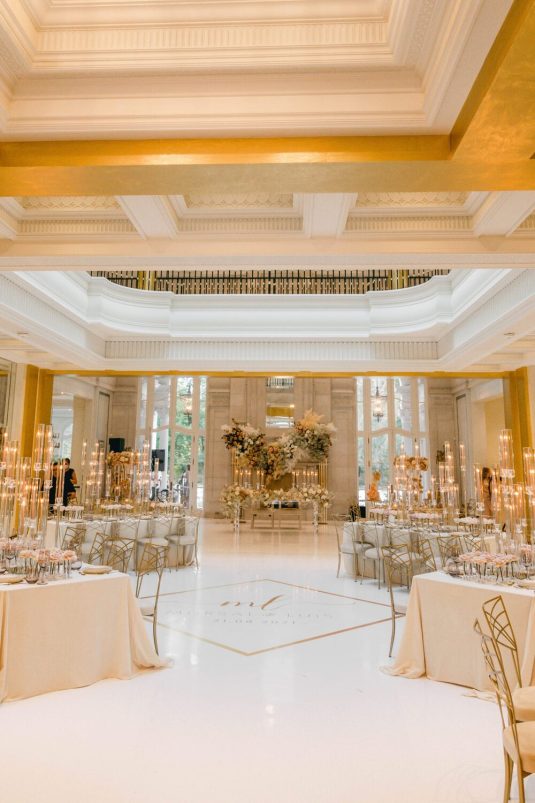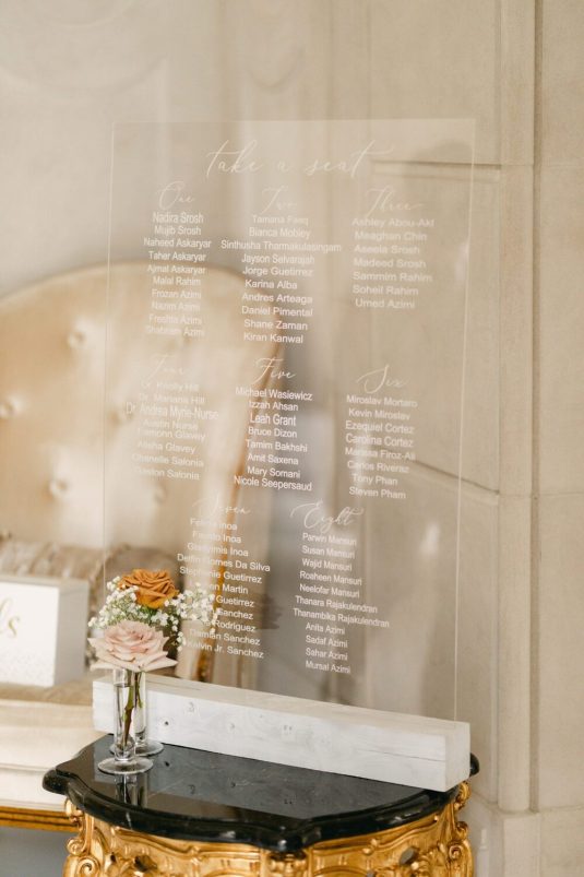 Floral Design @cocobycoverscouture, Groom and Groomsmen’s Formalwear @harryroseninc, Photography @515photoco, Full-Service Planning, Decor and Event Design, Dance Floor Artwork @petalsandpearls, Bridal Gown @berta, Veil @etsy, Bridal Shoes @jimmychoo, Bride’s Earrings and Maid of Honour’s Hair Accessory from Accessories by Talia, Groom’s Belt @louisvuitton, Rings @liviadiamonds, Bridesmaid Gowns @jennyyoonyc, Hair Stylist @manebyanna, Makeup Artist @ushatoronto, Acrylic Seating Chart and Place Cards @_misspapercut, Furniture Rentals and Tableware @detailzfurniturerentals, Linens @simplybeautifuldecor, Vinyl @wrapinthe6, Catering @riazcatering, Wedding Cake @fruitilicious_cakes, Macarons @ledelicepastryshop, Violinist @sofiaa_vio, Cinematography @raykwokfilms