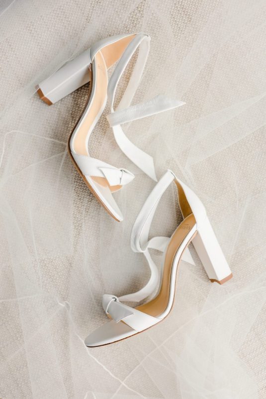 Stacey’s wedding jewelry held special significance beginning with her diamond earrings, a birthday gift from Jordan. To remember her late father, she wore a silver bracelet featuring a charm with his initial.