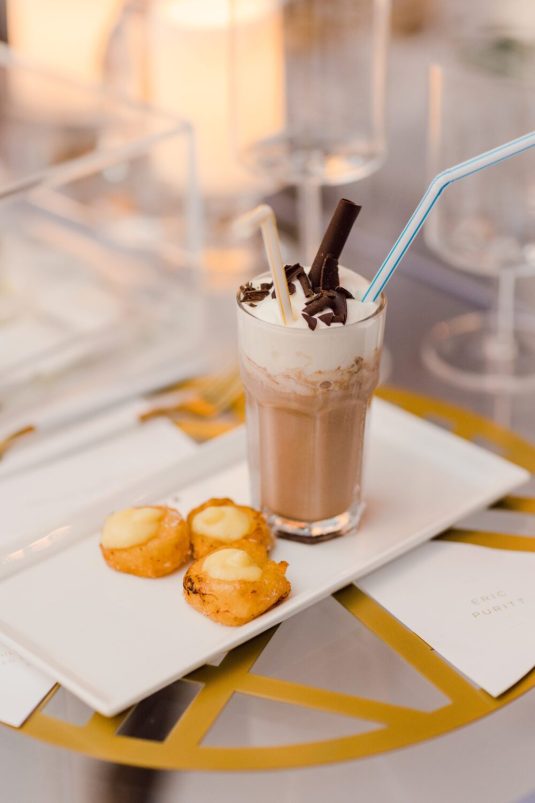 For a long time we didn’t know if we were going to have dancing at our wedding so we really wanted to emphasize the food as a focal point,” recalls Stacey. McEwan Catering rose to the challenge with a three-course meal that included a custom milkshake and donut dessert. Late night eats also included Craig’s Cookies and food from McDonald’s!