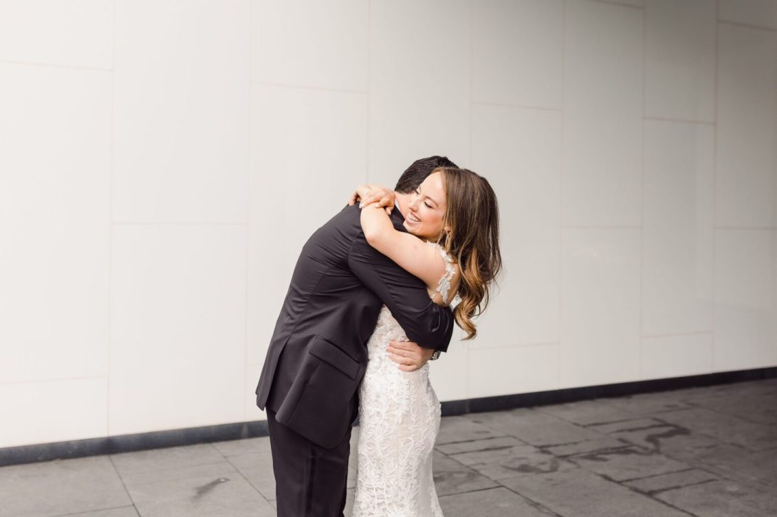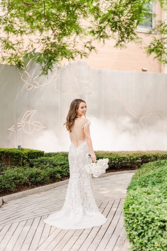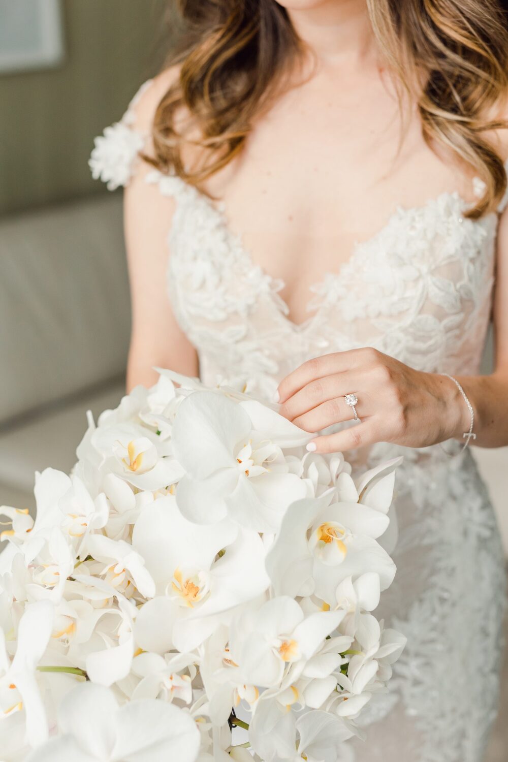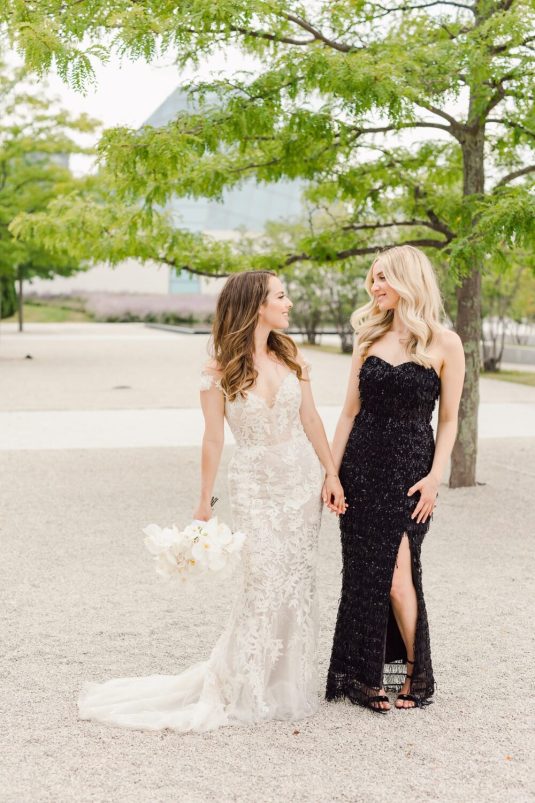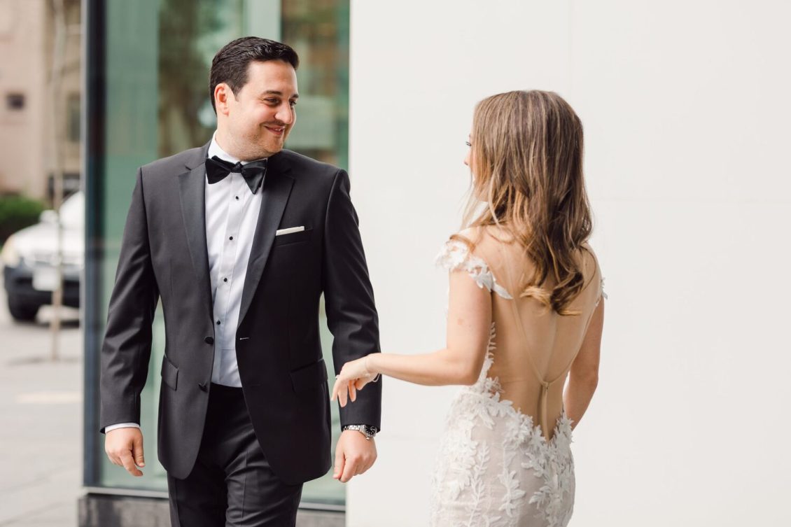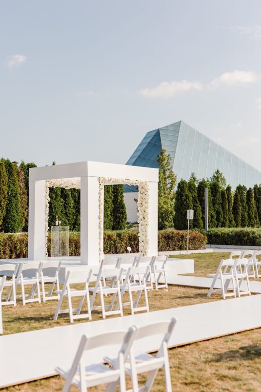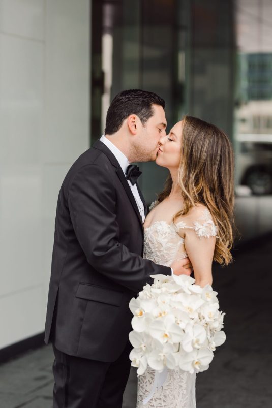 “It was incredibly special, and I was very surprised!” says Stacey. Throughout their wedding planning process, the couple had to postpone to three different dates because of Ontario’s Covid-19 restrictions. Eventually, the couple was married on August 12, 2021, at the Aga Khan Museum in Toronto, Ontario with full-service event planning and design assistance by Melissa Baum Events.