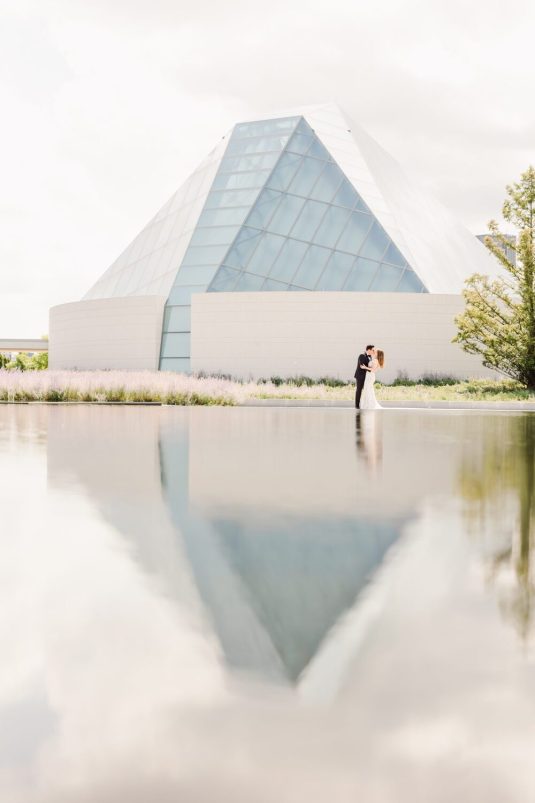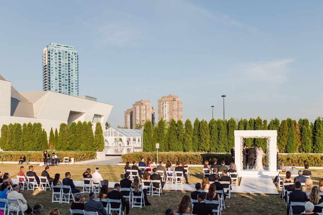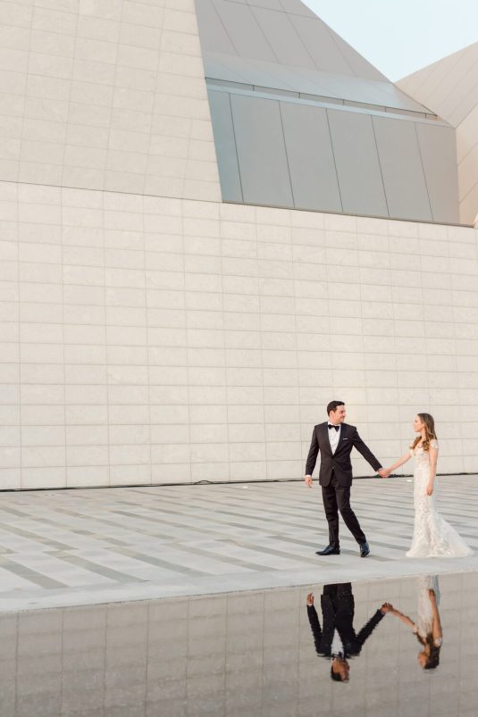 Like many other Canadian couples planning a wedding during the Pandemic, Stacey and Jordan made adjustments to their original wedding plans to suit the times. They switched venues in order to have an all-outdoor celebration. The Aga Khan Museum was chosen for its ample outdoor spaces which include a picturesque reflecting pool.