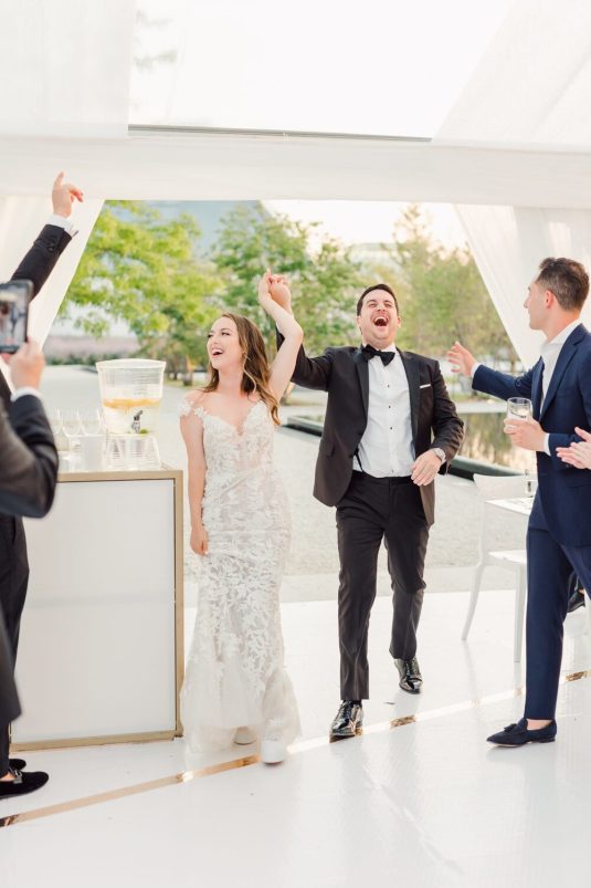 Photography @purpletreephotography, Gown and Veil Retailer @whitetoronto, Formalwear, Cufflinks and Pocket Square Retailer @harryroseninc, Tent @premiertents, Dance Floor @eventgraffiti, Full-Service Planning and Design Assistance @melissabaum, Floral Design and Chandeliers @stemzflowers, Getting Ready Venue @fstoronto, Wedding Venue @agakhanmuseum, Gown and Veil Designer @berta, Bridal Shoes @alexandrebirman, Formalwear, Cufflinks and Pocket Square Designer @hugo_official, Bowtie @dion__1967, Rings by Jonty Friedman, Hair Stylist @chrishairartist, Makeup Artist @glowbyo.ca, Stationery @smudgedesignstoronto, Furniture Rentals @detailzfurniturerentals @divinefurniturerental, Tableware @plateoccasions, Officiated by Rabbi Yael Splansky, Wedding Cake @trufflecakeandpastry, Draping @eventuredesign, Lighting, AV, Rigging and Entertainment @solepower, Catering @chefmarkmcewan, Late-Night Food @craigscookies @mcdonaldscanada, Transportation @moelimolimousine, Cinematography @bigticketproductions
