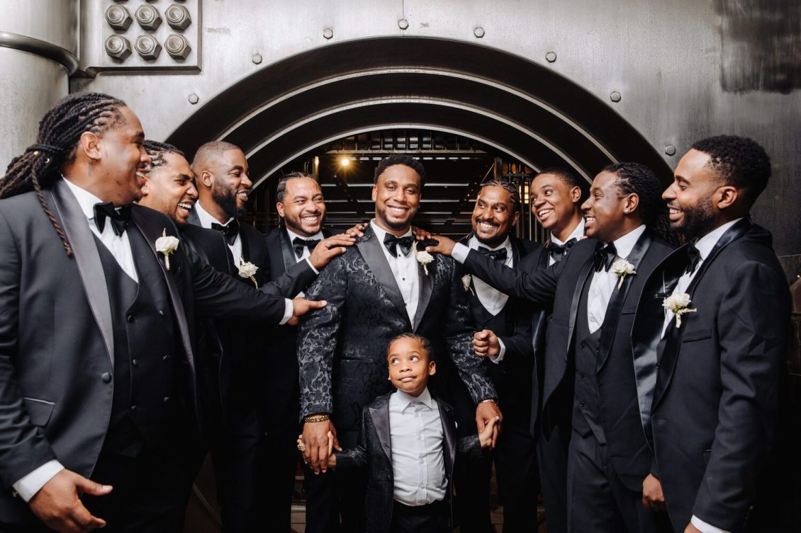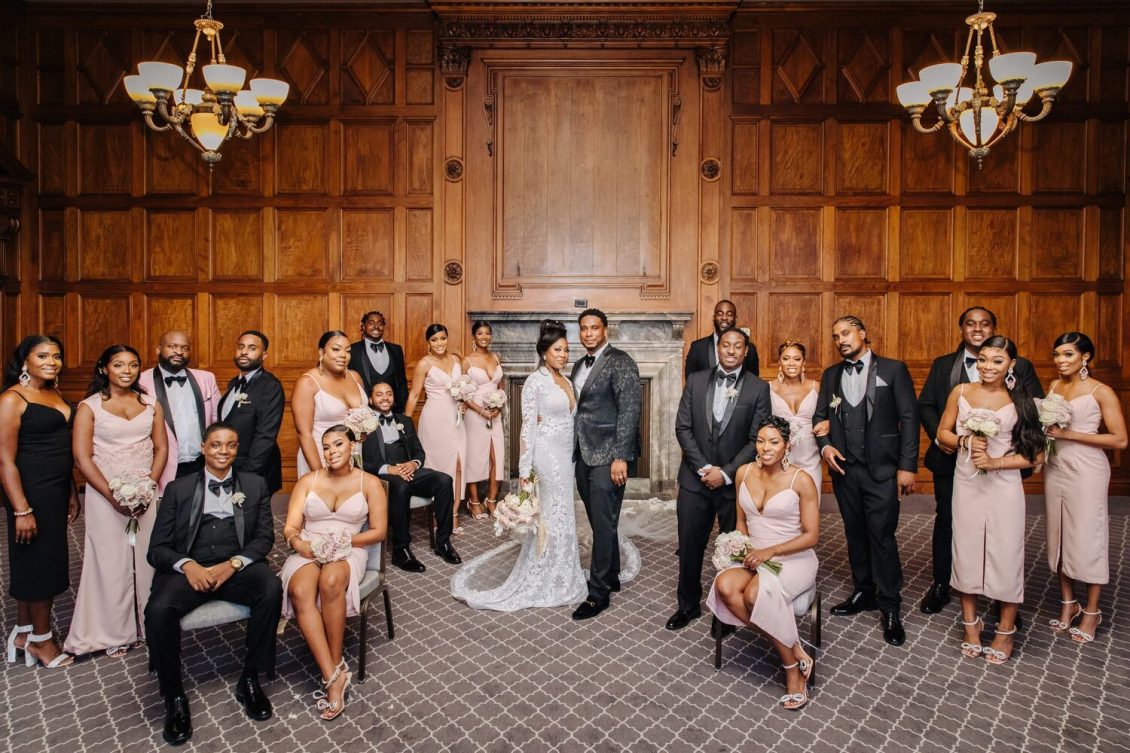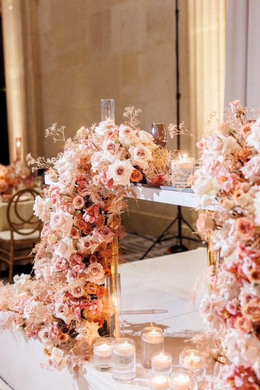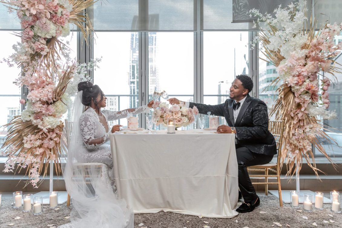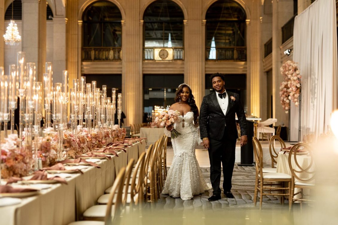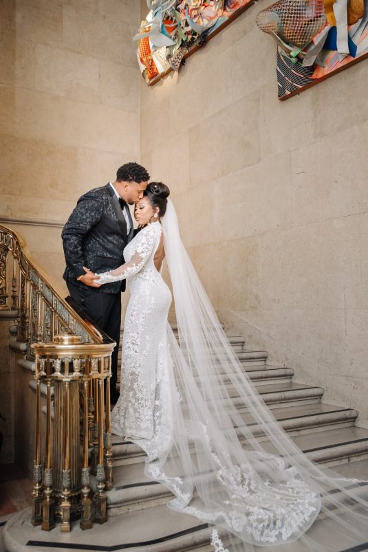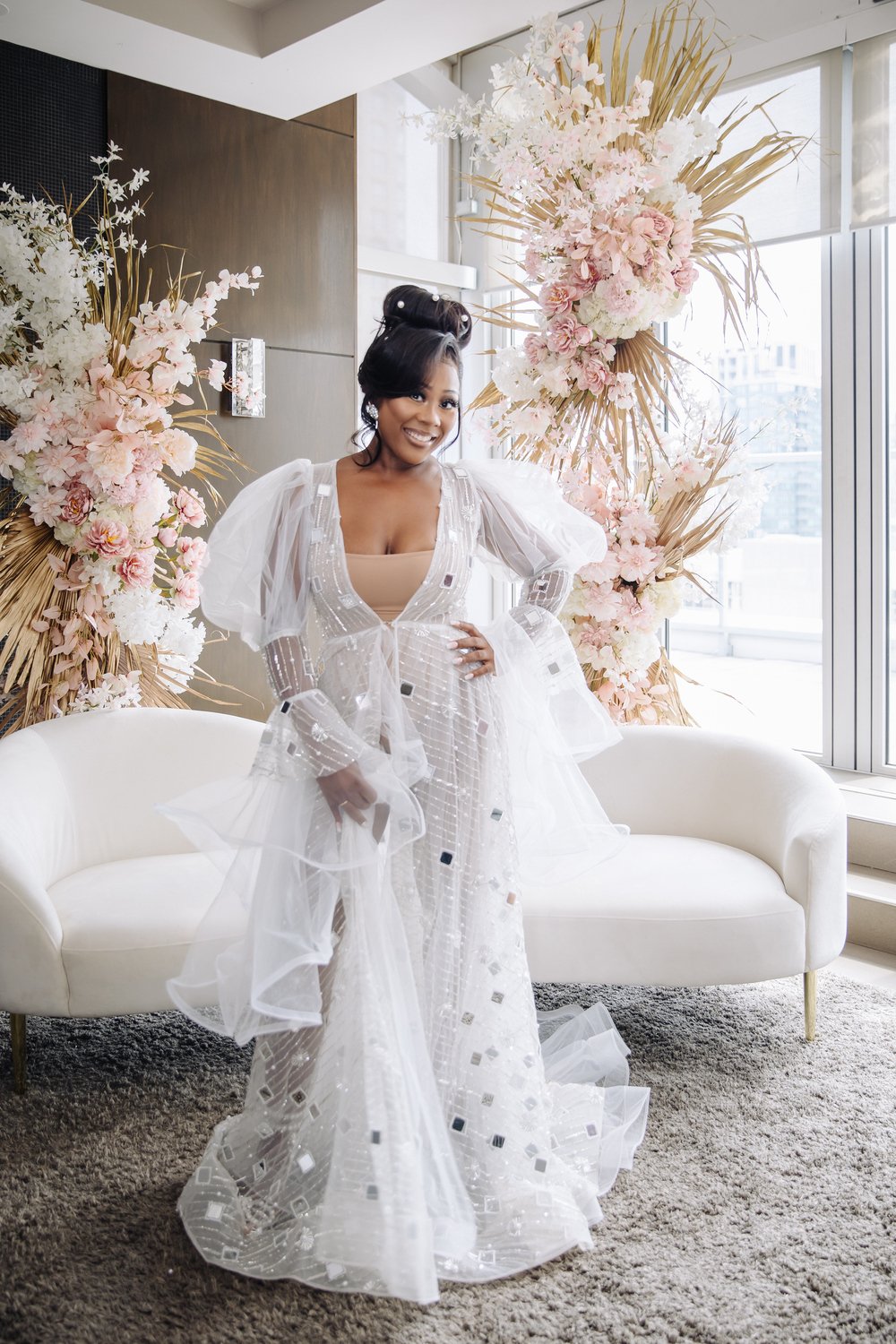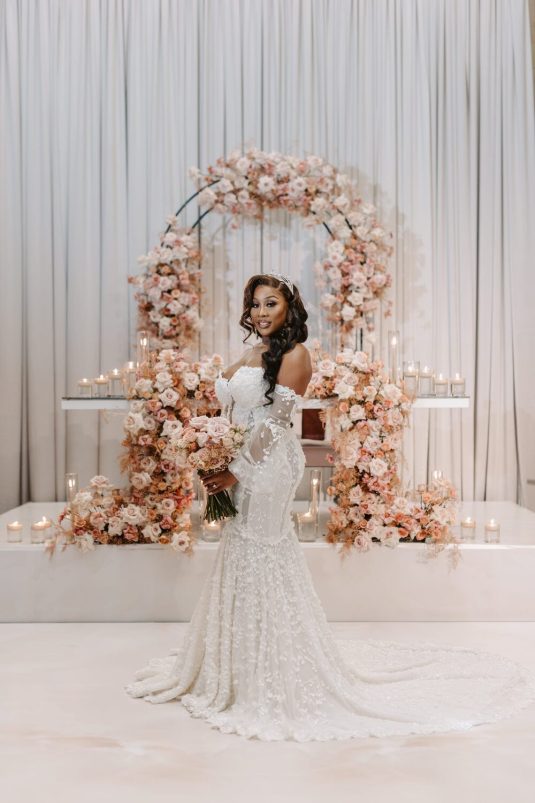 Veil and Gown Retailer @whitetoronto, Seating Chart Gold Vinyl @eventgraffiti, Seating Chart Text Design and Menus @polkadotpapershop, Photography @agistudio, Full-Service Planning and Design Assistance @petalsandpearls, Ceremony Location @metropolitanunitedto, Officiated by Pastor Frankie Lazarus, Getting Ready and Reception Venue @onekingwest, Bridal Robe @vtabi_official, Invitations @ivoriepaperie, Ceremony Floral Design @flowers_time, Reception Floral Decor and Event Design @hennaflorist, Ceremony Gown Designer @berta, Reception Gown Designer @galialahav, Reception Gown Retailer @anjoliquebridal, Ceremony Bridal Shoe Designer @sergiorossi, Ceremony Bridal Shoe Retailer @farfetch, Reception Bridal Shoes @machandmach, Jewellery @helenadia_official, Headpiece and Hair Stylist @arthurhairbridal, Pearl Hair Accessories sourced from Sassy Bloom Boutique, Groom’s Formalwear and Accessories and Groomsmens’ Formalwear @eadenmyles, Rings @diamondboi, Bridesmaid Reception Gowns @clubllondon, Hair Stylist @houseofelite, Makeup Artists @afia_beauty, @avaya.noelle, Furniture Rentals @detailzfurniturerentals, Black Seating Chart @decorandfiesta, Linens @chairdecor, Tableware and Napkins @simplybeautifuldecor, Cakes @spectacle.of.sweets, Draping @sunshinedecoration, Lighting and AV. @epiqvision, Dance Floor @paragon.designs, Photobooth @eventcircle, 360 Booth @pinksugarevents.to, MC @kidkut, Ceremony Entertainment @stringsisterz, Reception and Cocktail Hour Entertainment @sofiaa_vio, Reception Entertainment @thisisskitz, Cinematography @corinnemcdonaldfilms