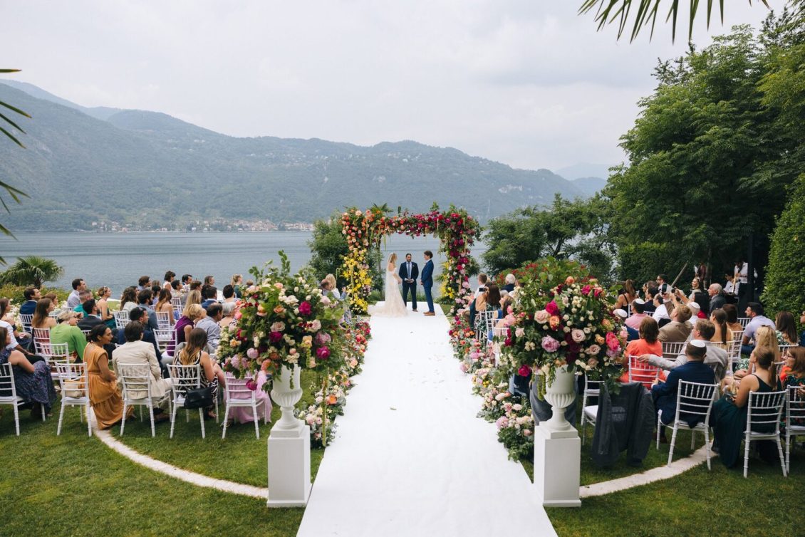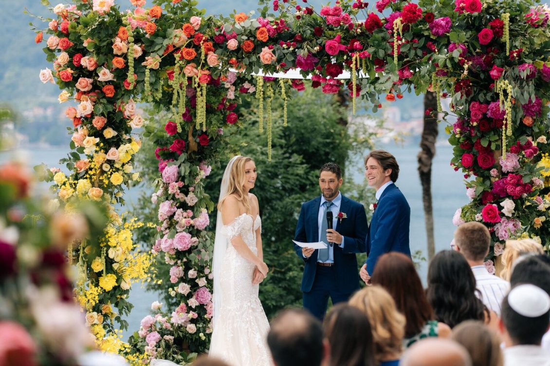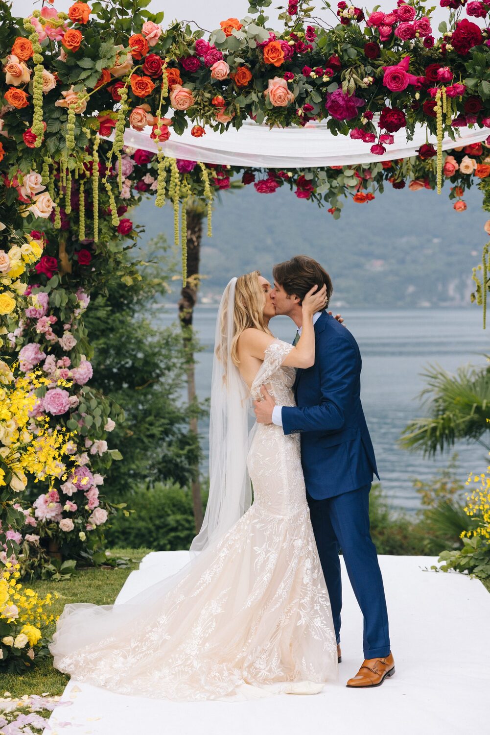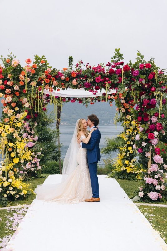 Christie and Jack held their stylish outdoor wedding at Villa Lario Resort on Lake Como, Italy. We LOVE how summery this wedding is with its warm-hued florals and greenery! Scroll for more from this STUNNING celebration!