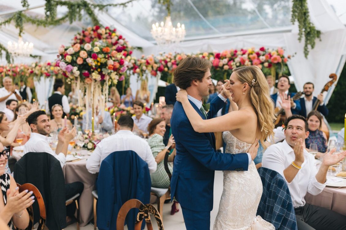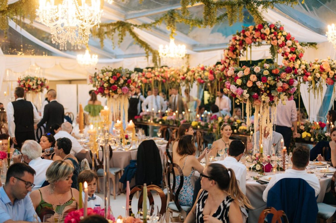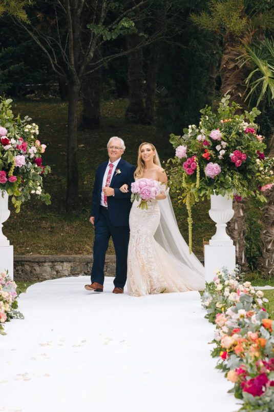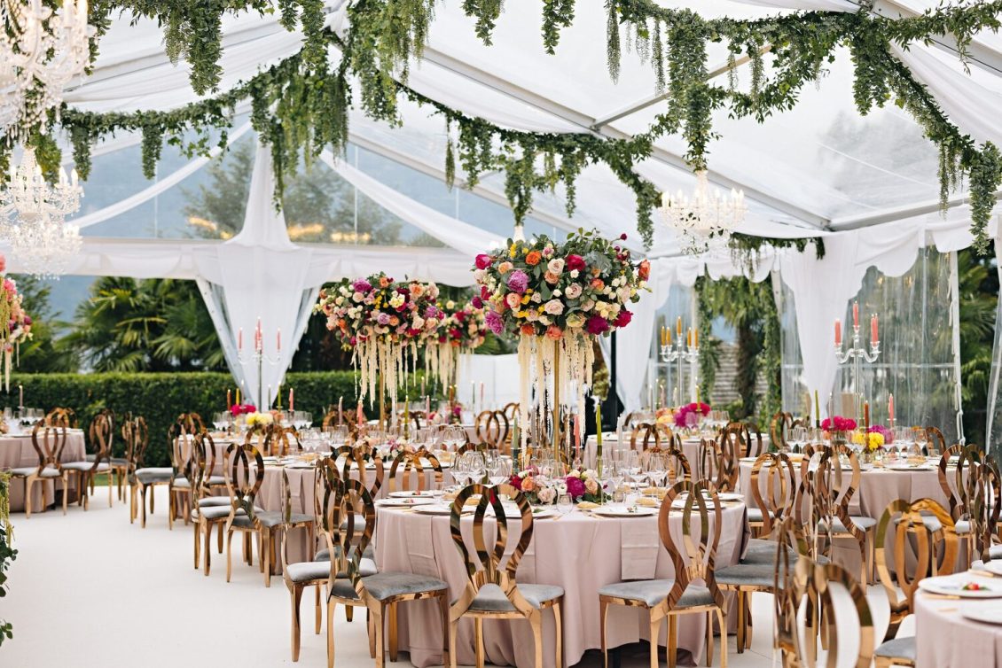 Christie and Jack held their stylish outdoor wedding at Villa Lario Resort on Lake Como, Italy. We LOVE how summery this wedding is with its warm-hued florals and greenery! Scroll for more from this STUNNING celebration!