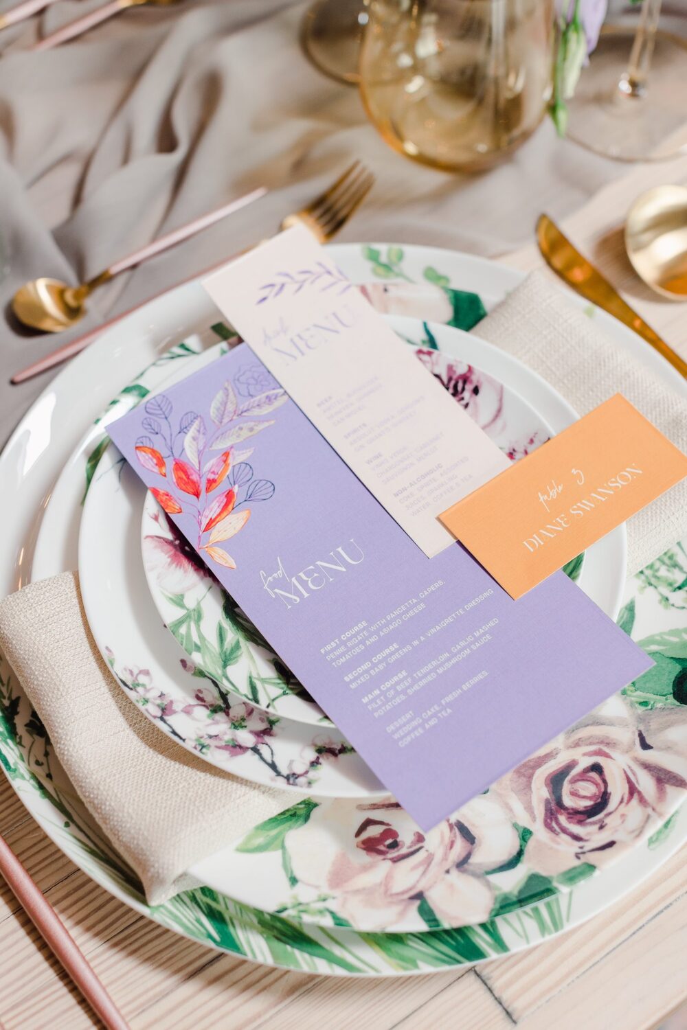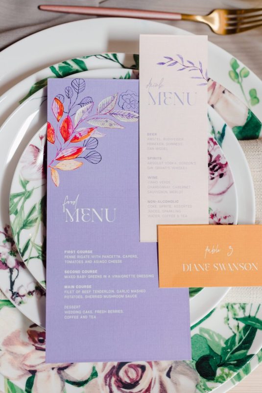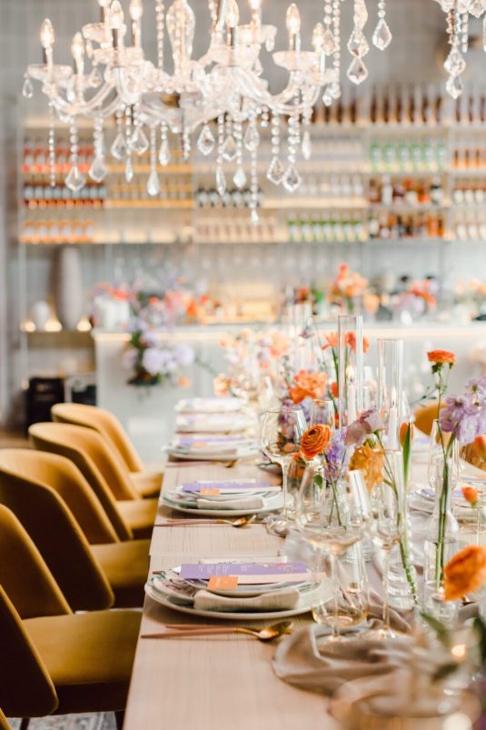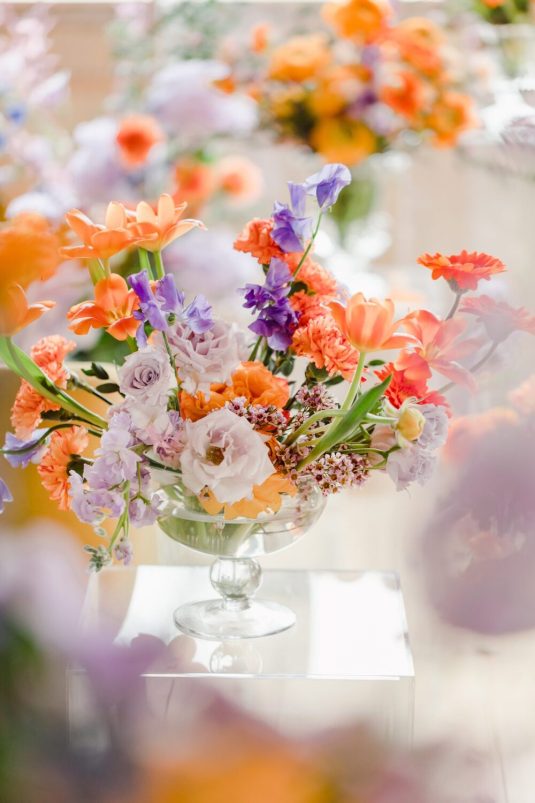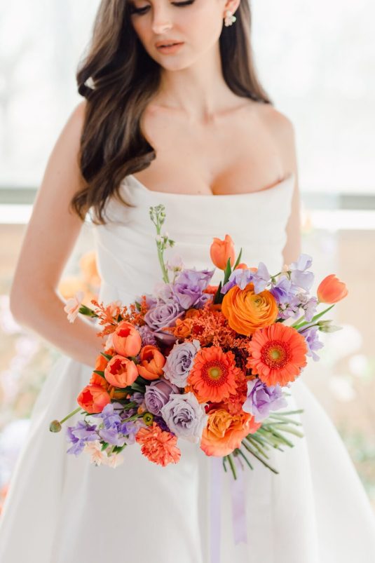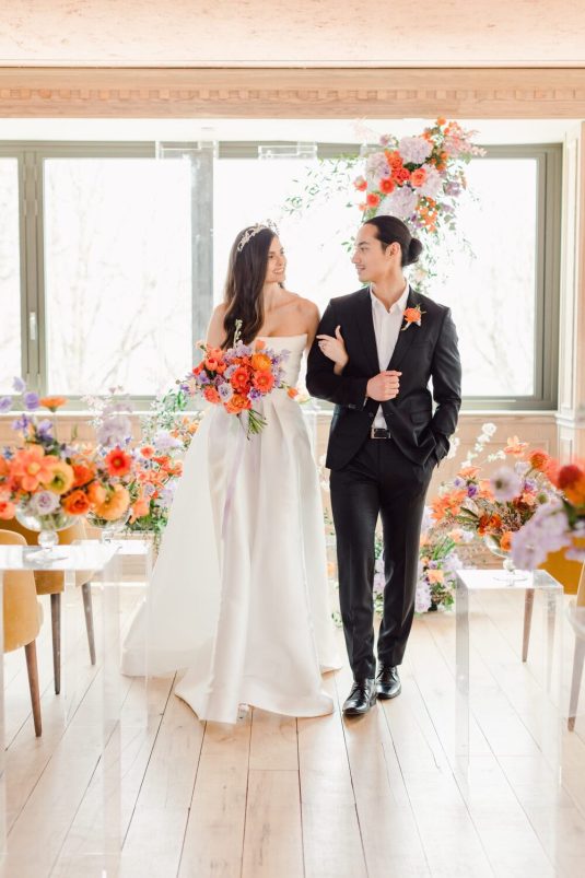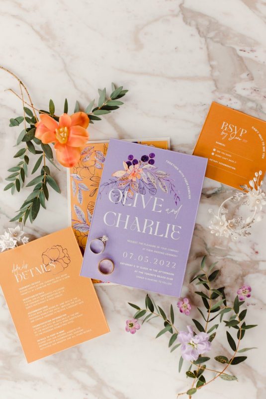 This styled shoot was held at the Toronto Beach Club and is full of stylish design elements. “Vivid and delicate, bright and pastel, sexy and sophisticated are just examples of contrasting adjectives to describe this theme. The soft lilac notes with the bright orange create an elegant yet fun look that is perfect for a summer/spring wedding.” share Heidy Barsoum and Lina Gobrail of Elegant Steps Events. See Delicate Contrast in the Summer/Fall 2022 Toronto Edition of WedLuxe Magazine!