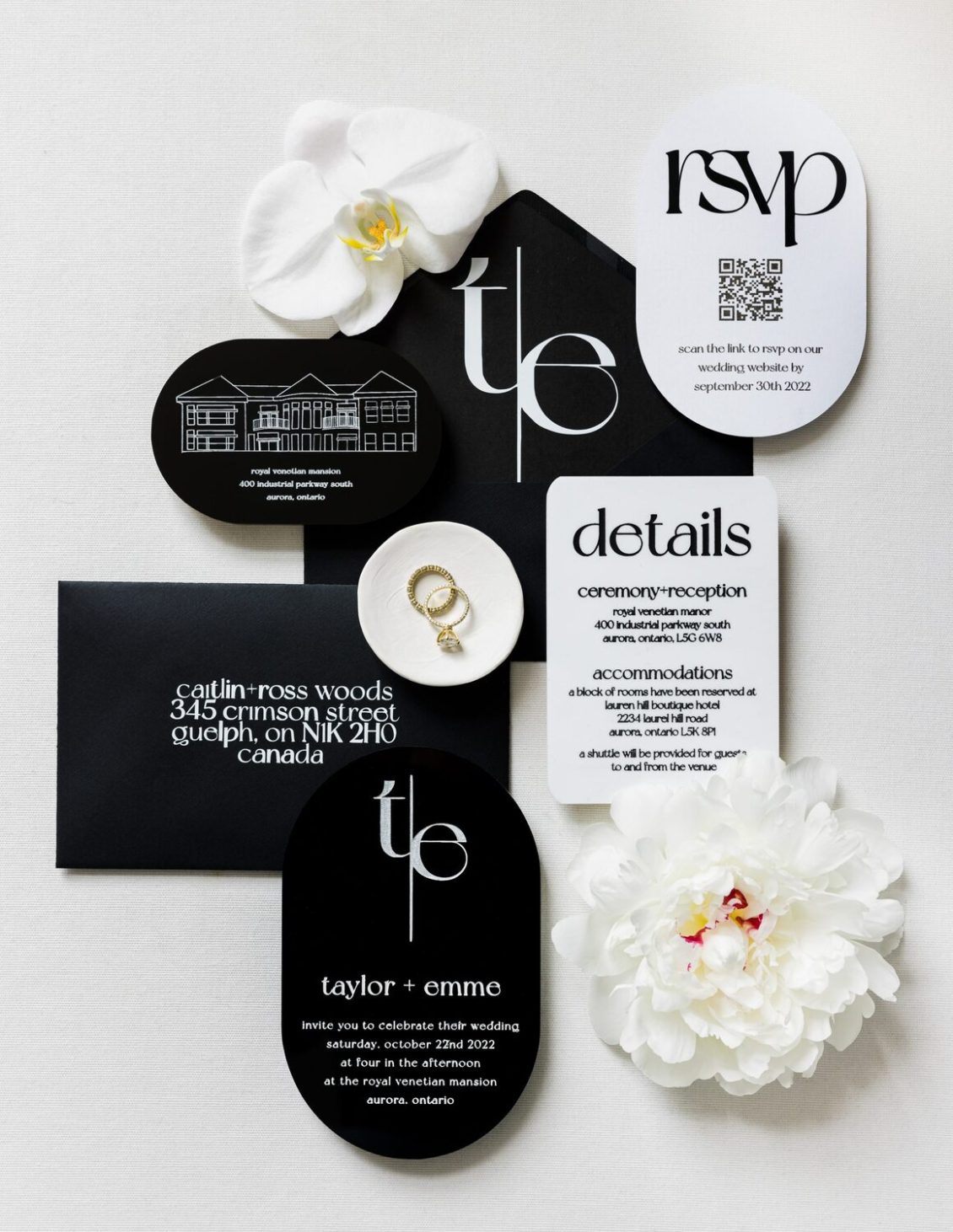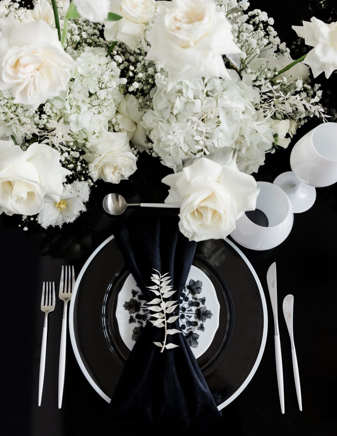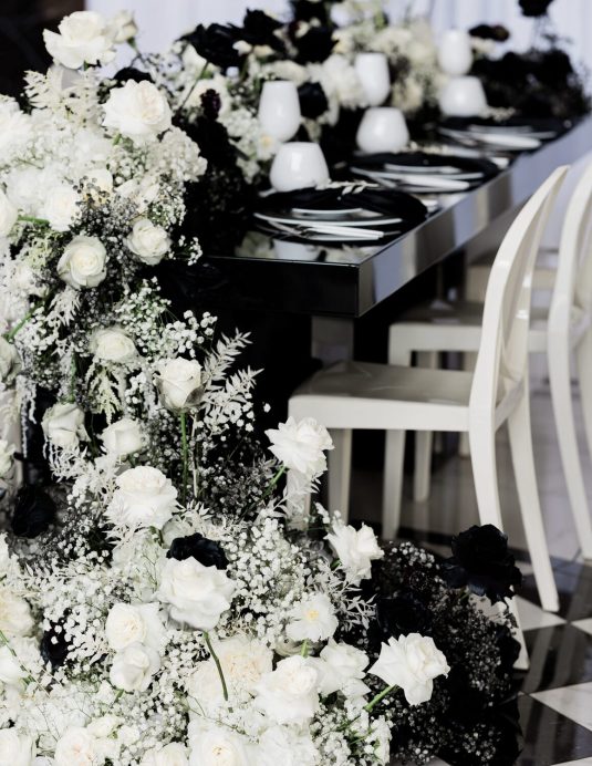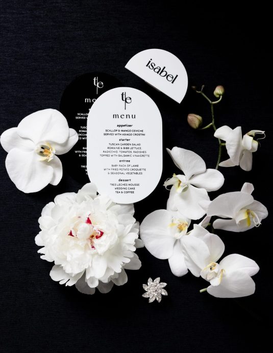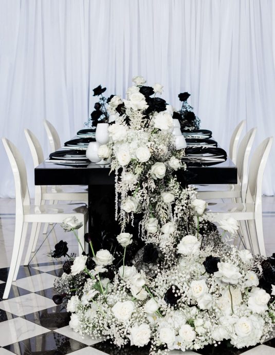 This styled shoot features a timeless monochromatic colour palette that’s stylish and sophisticated. “We wanted to take the “classic black and white” and really make it pop; not too moody, but still dramatic.” shares Alyssa Mauro of Event Shoppe by Alyssa & Co. Monochromatic was featured in the Summer/Fall 2022 Toronto Edition of WedLuxe Magazine.