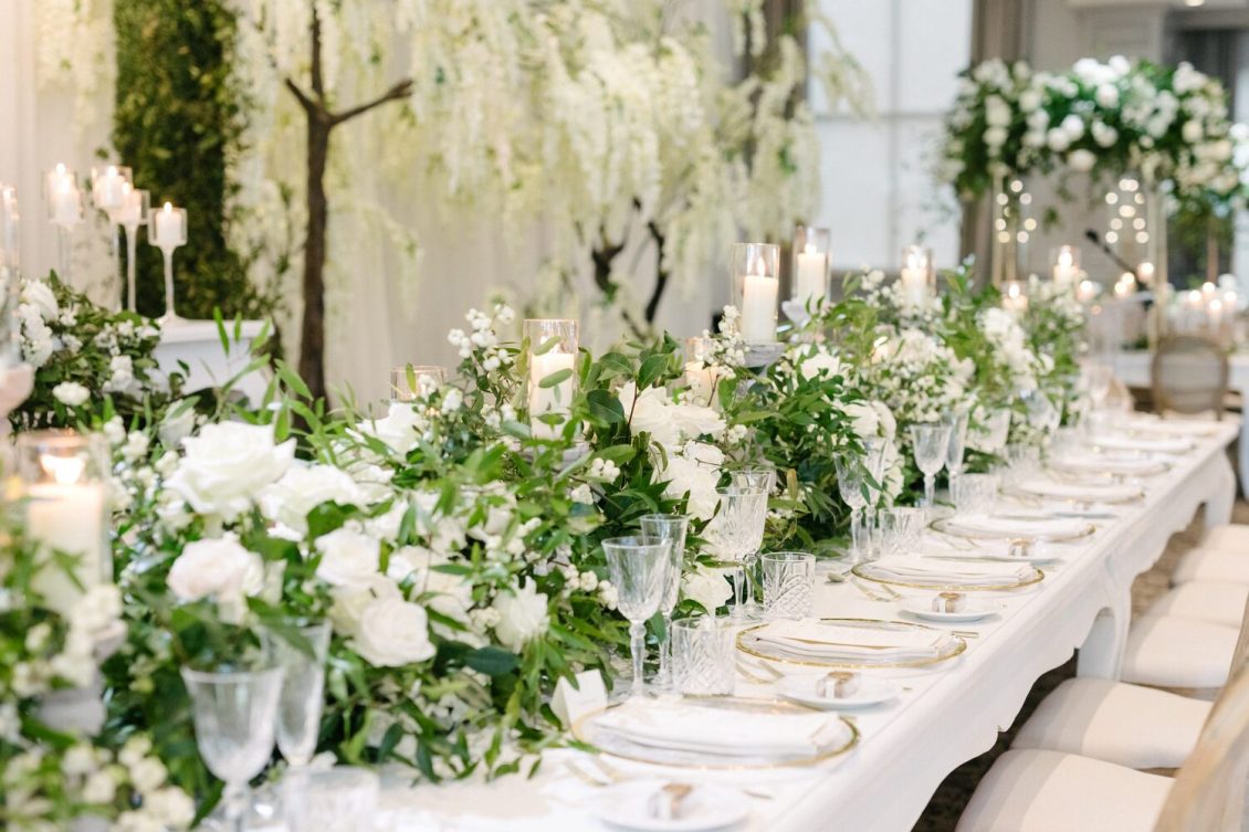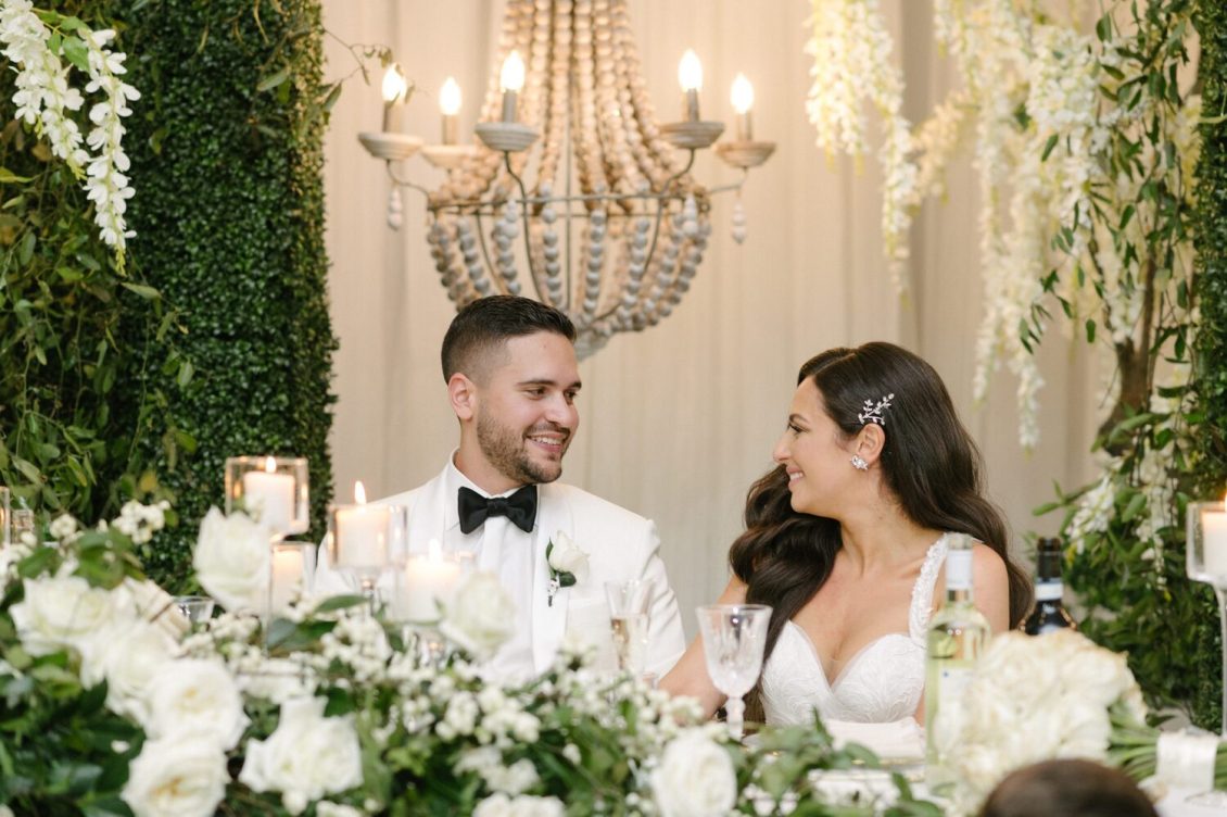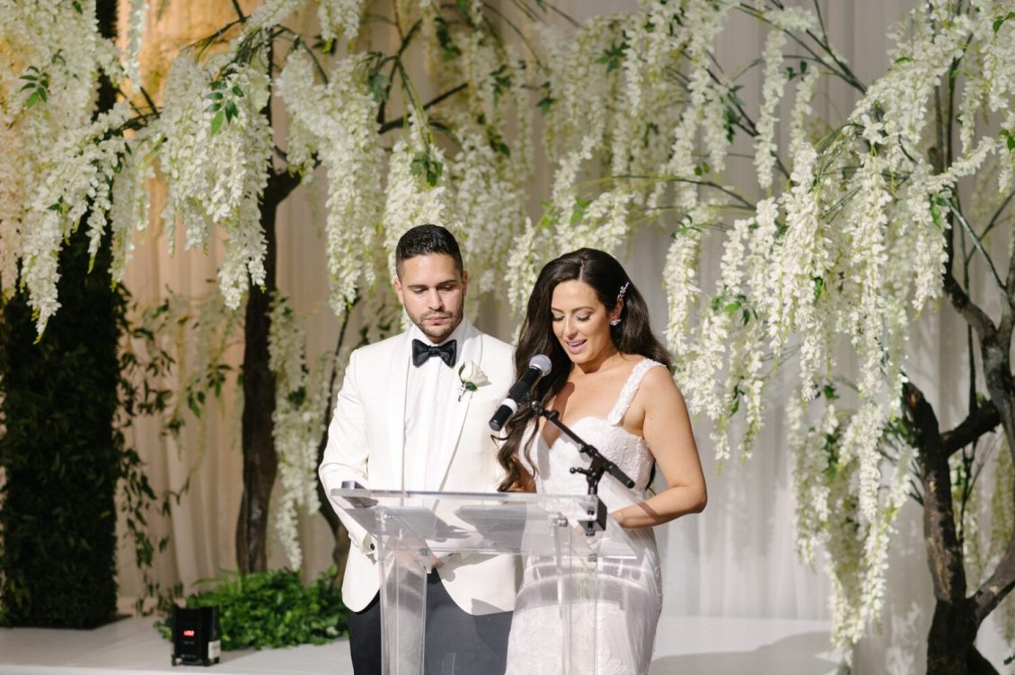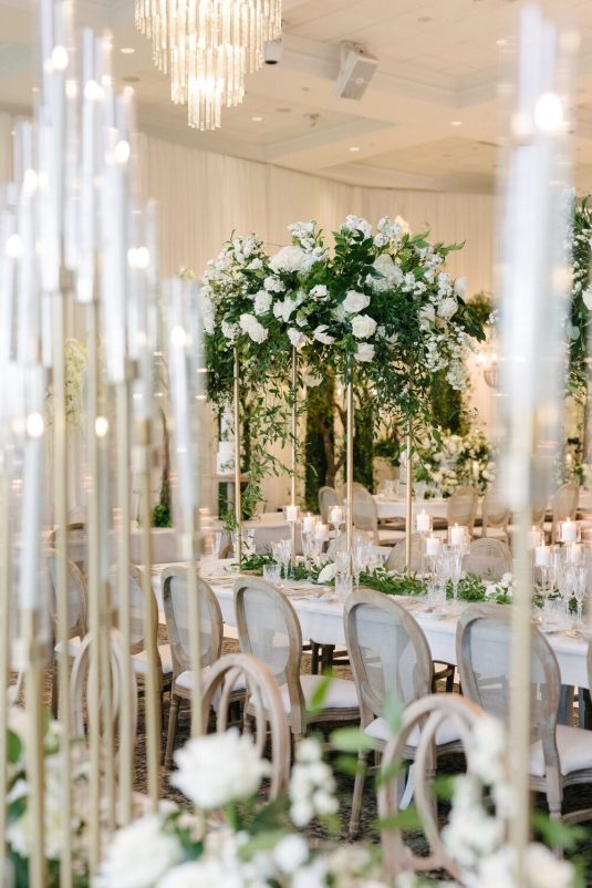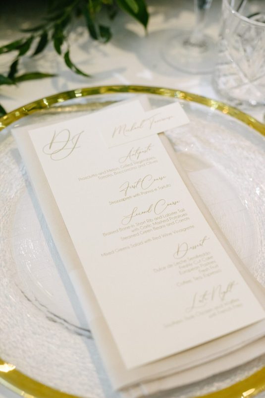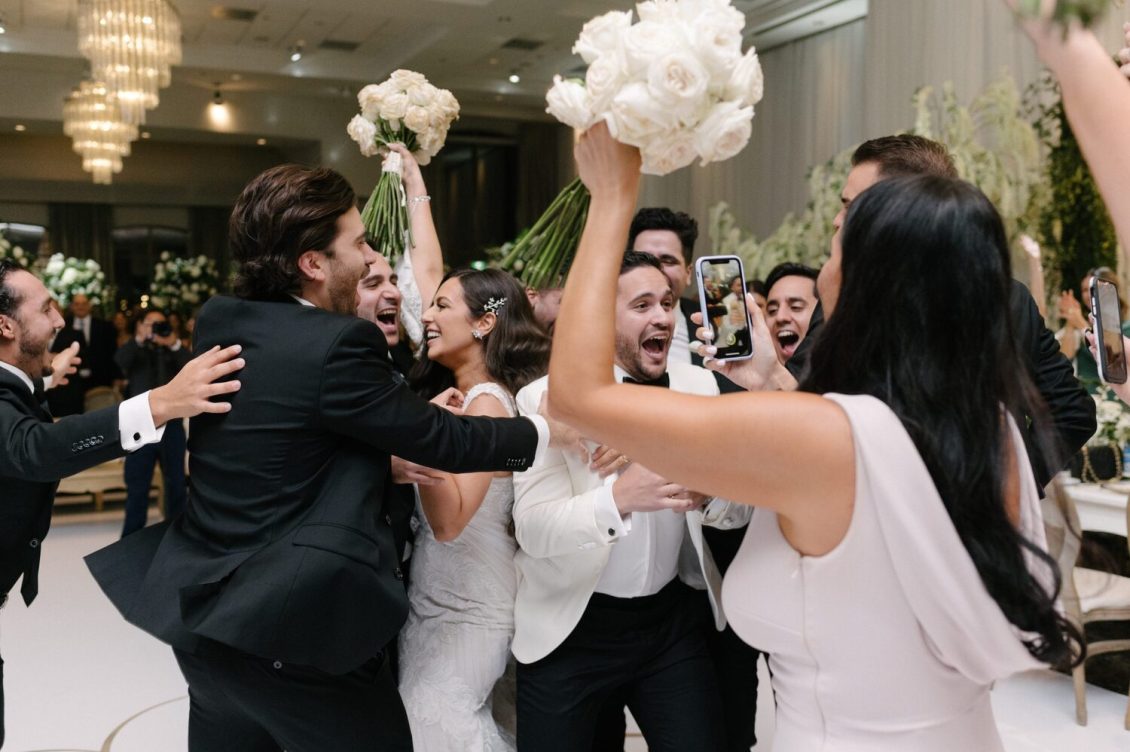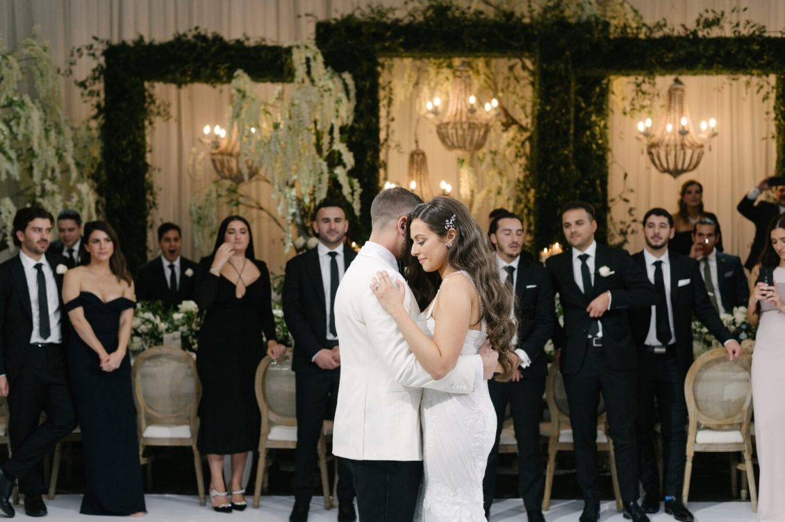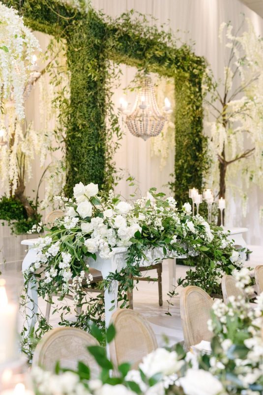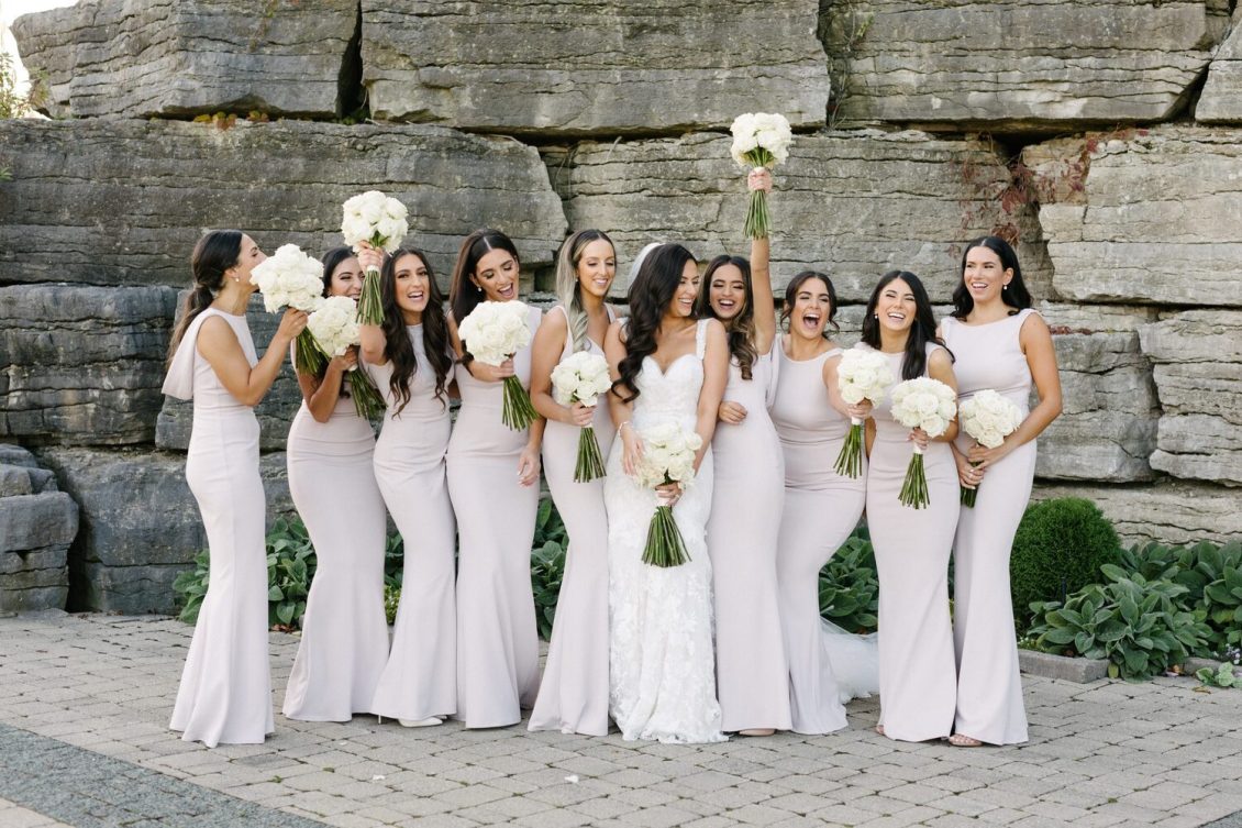 Photography @mangostudios, Full-Service Planning and Design Assistance @simplysiennas, Floral Design @blossomboutiquebb, Draping, Decor and Event Design @eventuredesign, Ceremony located at Immaculate Conception Parish, Officiated by Father Eugene, Reception Venue @coppercreekeventspace, Invitations @elenaslittleshoppe, Day-Of Stationery by Sentiments, Bridal Gown @inesdisanto, Bridal Shoe Designer @maisonvalentino, Bridal Shoe Retailer @nordstrom, Hair Accessory and Jewellery @tarafavajewellery, Formalwear @garrisonbespoke, Watch @rolex, Rings designed by Frank Lijoi, Ring Retailer @finchcentrejewellers, Bridesmaid Gowns @pearlbridalhouse.to, Bridesmaid Earrings @swarovski, Groomsmen’s Formalwear @perluitoronto, Beauty @biancambeauty, Furniture Rentals @detailzfurniturerentals, Linens @att_linenrental, Tableware @maisondesienna, Wedding Cake @sweet_regards, AV and DJ @platinumentertainmentsolution, Dance Floor @creativedancefloors, Entertainment @wellington.music, Cinematography @julianwerks
