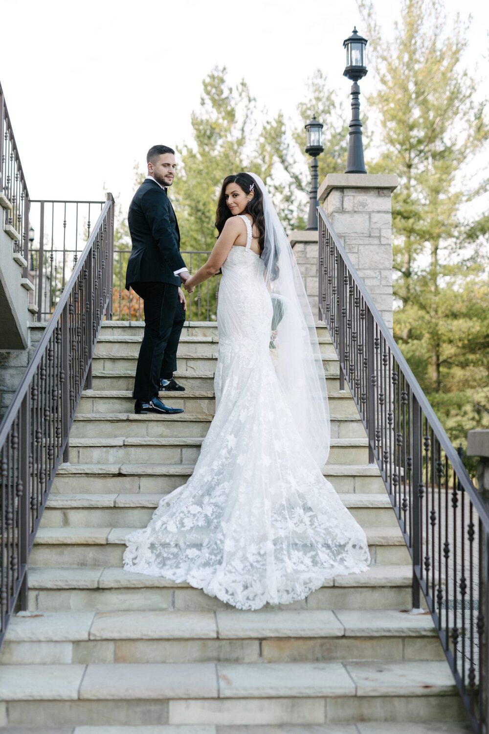 After several Pandemic-related wedding day postponements, the couple was finally married on October 27, 2021, at Immaculate Conception Church. The wedding reception was held at Copper Creek Golf Club in Kleinburg, Ontario. Event planning for the romantic, elegant, and rustic wedding was provided by Simply Sienna.