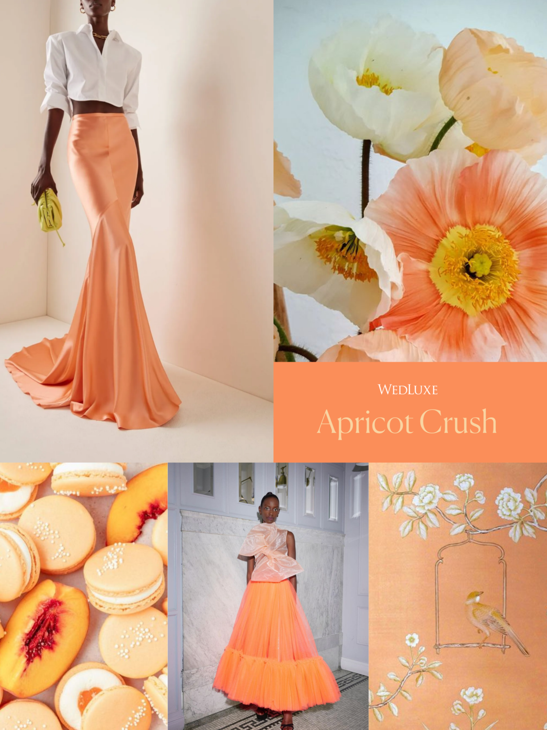The essence of orange (but not quite orange!) is the taste du jour as apricot and tangerine continue to be a core trend. WGSN Trend Forecasters and sister company Coloro color system JUST announced that The Color of Year for 2024 will be APRICOT CRUSH! Pantone also predicted “Tangelo” was a shade to watch for Spring 2023. So whether your creative jumping-off point is a scarf, an orange creamsicle, or an apricot-hued wallpaper, we look forward to your fresh squeeze on this theme.