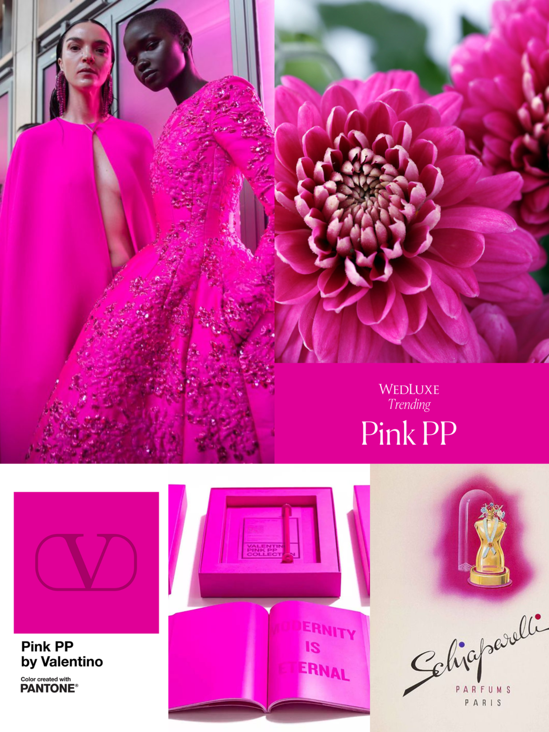 Unless you’re living under a rock, you’d know that Valentino’s Pierpaolo Piccioli (in combination with Pantone) rolled out a MONOCHROMATIC MEGAHUE earlier this year. As a tribute to the creative spirit of Elsa Schiaparelli, Piccioli dedicated his entire Fall/Winter 2022-2023 collection to her signature “shocking pink.” The statement-making tribute to Schiaparelli didn’t just wake up the fashion world; it set off an international TREND SENSATION and further activated the “Barbiecore” phenomenon! (Though PP Pink is DEFINITELY Barbie’s more daring version!) Just a few weeks ago, Valentino and Pantone revealed a series of global event installations with PP Pink pop-ups about to roll out worldwide, so this trend is just getting started! We have already seen the brightest hues of pink start to show up in event floral design and we are LOVING it.