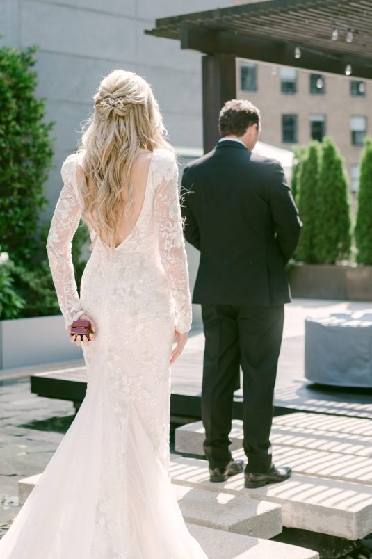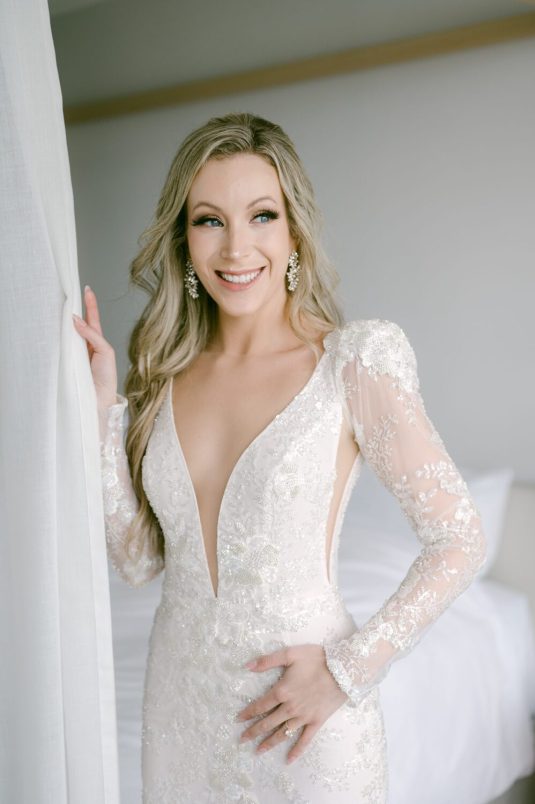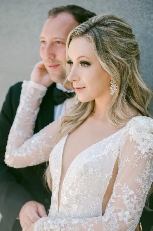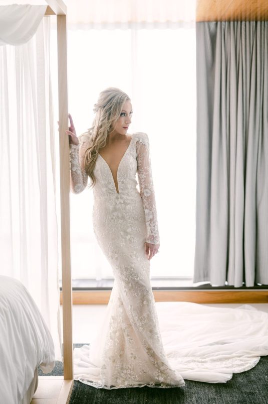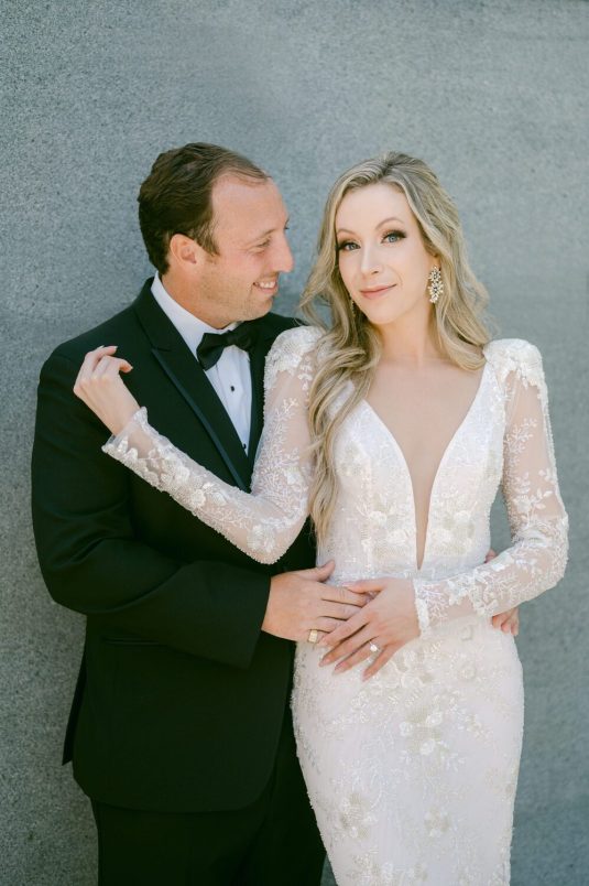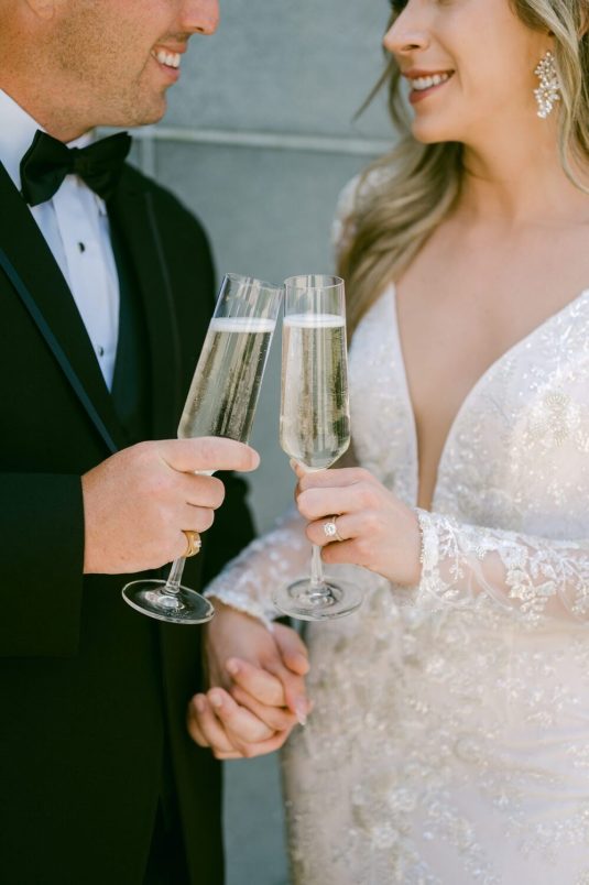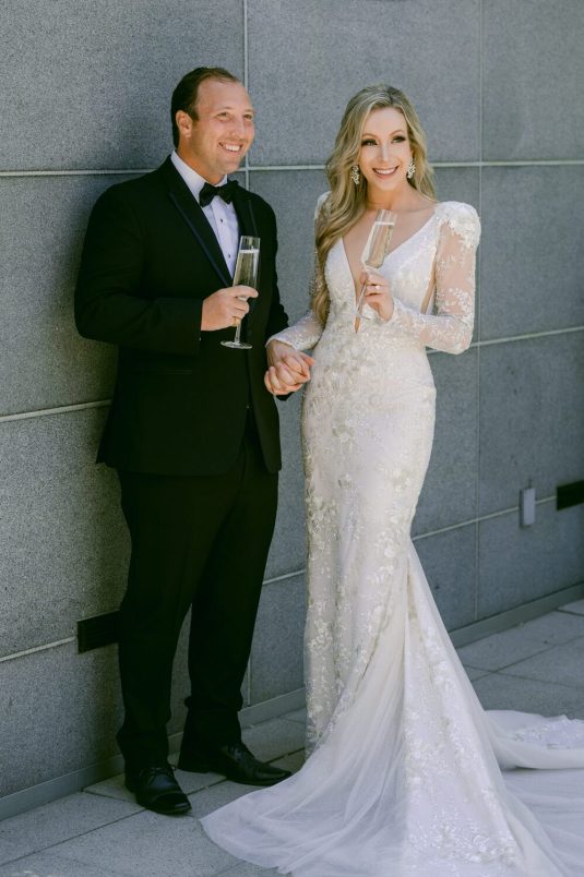Tori and Dylan first met on a dating app in 2018 and connected over happy hour at a local restaurant’s sunny rooftop patio. In the end, Tori gave him a second date even though Dylan had left his hockey sticks in the front seat of his car. Dylan drove to Tori’s parents’ home in February 2021 to ask to marry her, relieved when her mother replied with, “Well, what took you so long?!” The proposal took place two months later following a date night out at one of their favourite restaurants. When they returned home, Dylan presented Tori with a photo album full of memories together, with the question “Will you marry me?” written beneath the final photo. He got down on one knee and proposed!