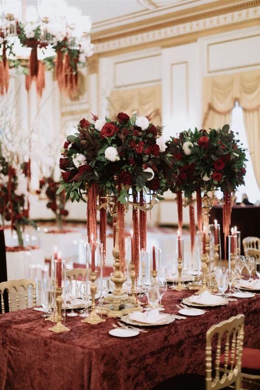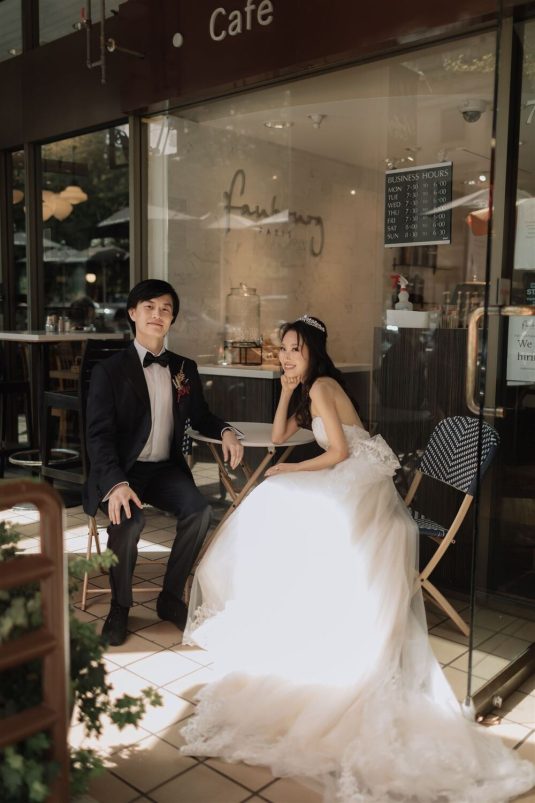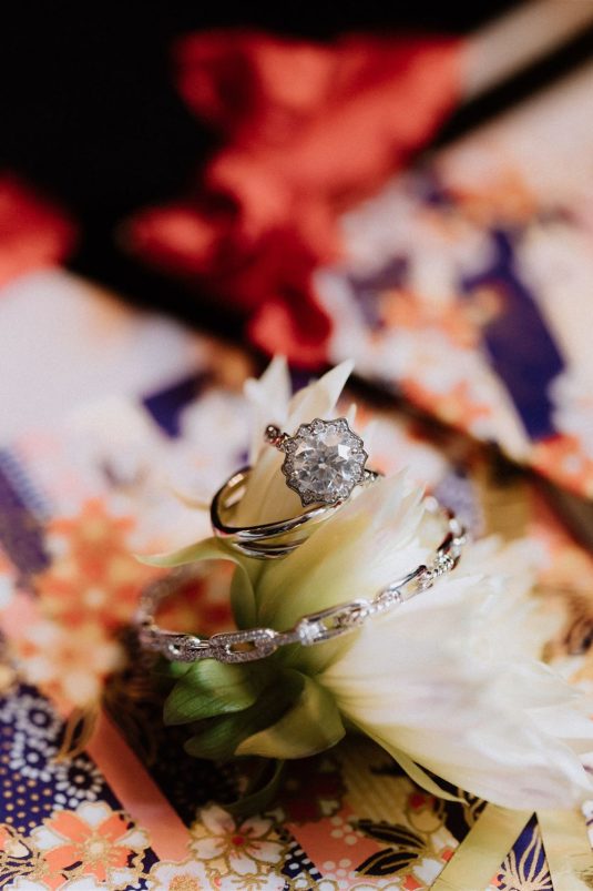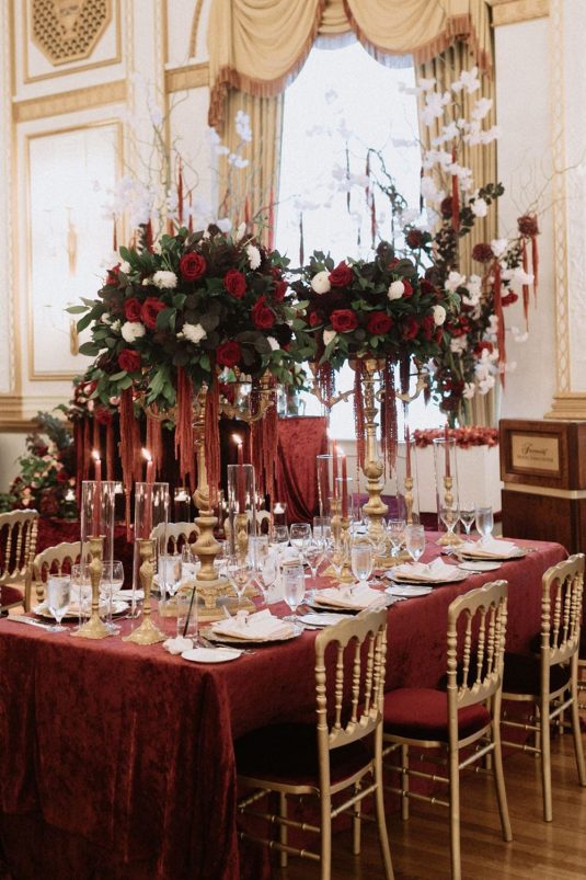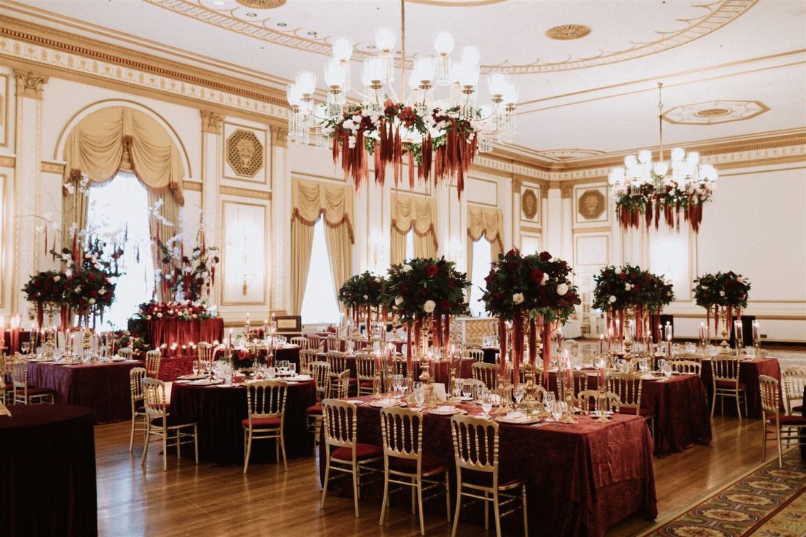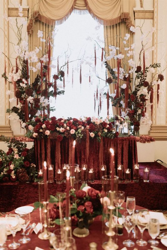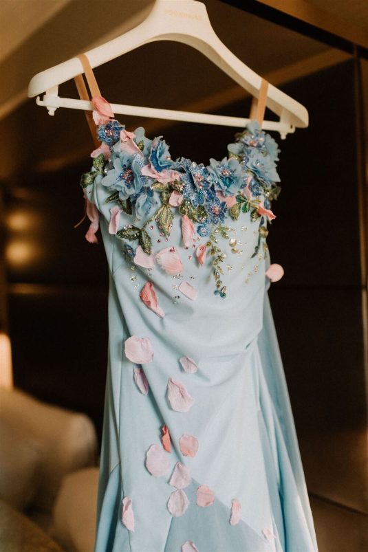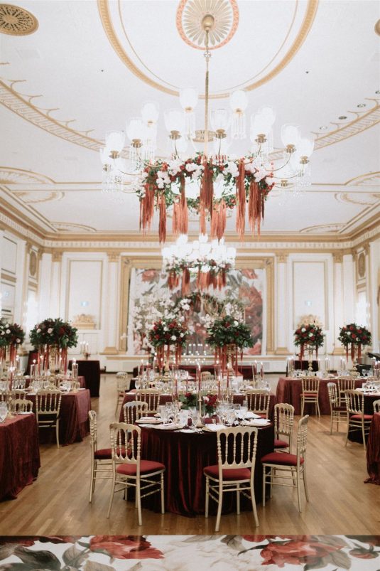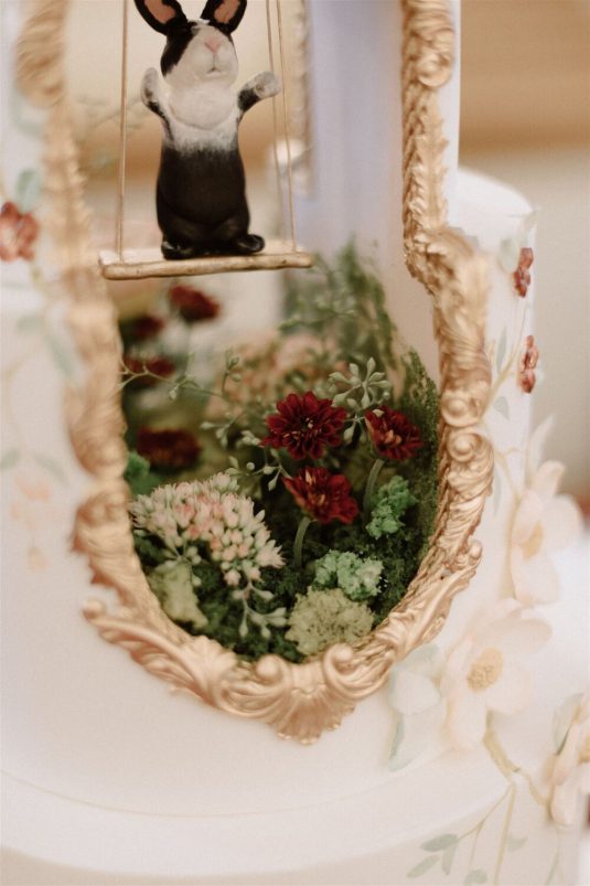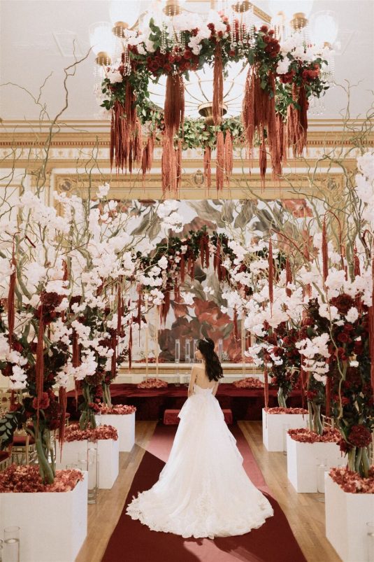 The bride and groom first met when they were partnered together in a Brown University ballroom dance class, and as they fell in love with dance, they also fell in love with each other and have danced competitively together since then. The Viennese Opera Ball-themed wedding took place at the The Fairmont Hotel Vancouver . Both the bride and groom love animals, so, with special permission from the venue, they welcomed adoptable rescue rabbits and therapy dogs at the reception, and as a tribute to their first pet rabbit Rosie, the wedding cake featured a miniature rabbit on a working swing!