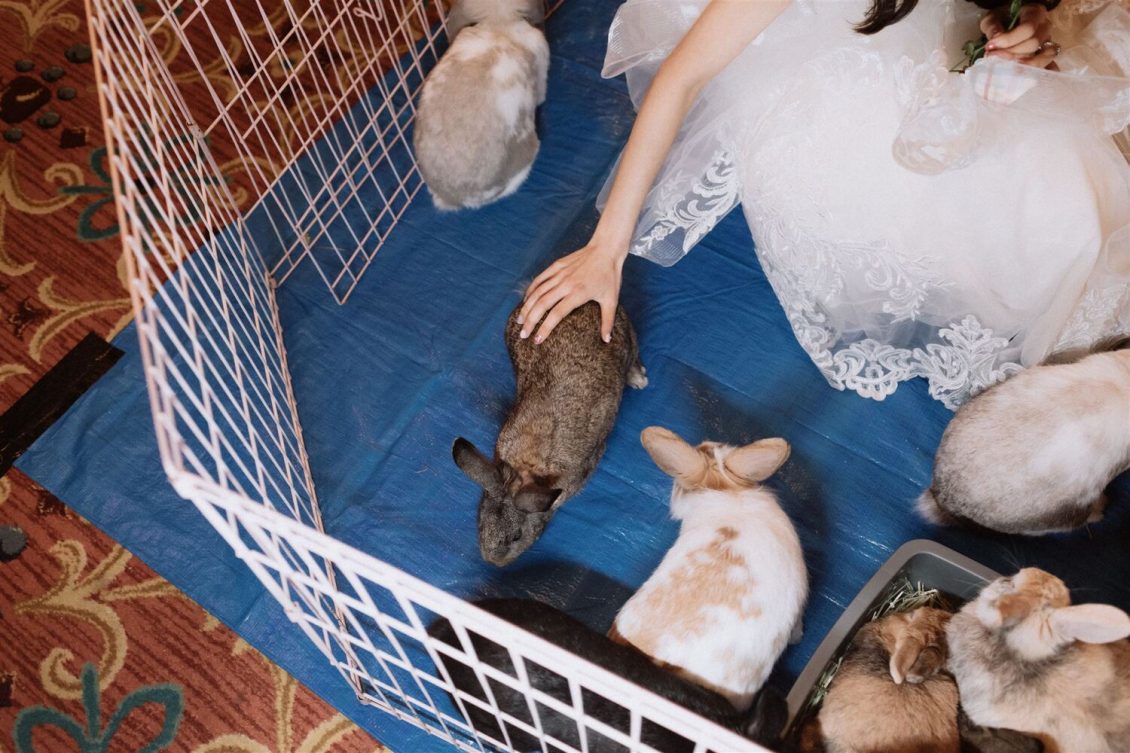 Photography @jumistory, Wedding and Event Planner @dreamgroupplanners @sandydreamgroup, Event Design, Vinyl Dance Floor Print, Lounge and Bar Furniture Rentals, and Floral Chandelier @koncept.events, Wedding Dress @pronovias, DJ @wkmdj, Pet Therapy @ecovillage, Rabbit Rescue Service @rabbitatsrescue, Illustrator @tunasnaps, Florist @flowerzinc, Custom Wardrobe @measuredstyle, Beauty @helmet_salon, Stationery @violetgreycreative, Cake @cakeandgiraffe, Live Music Ensemble @timelessmusicentertainment
