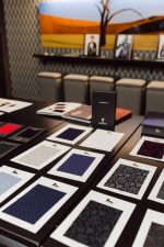 Valentino’s “P.P. Pink inspired the eye-popping pink elements within the space. DFD Event Solutions provided the vinyl runway carpet and backdrop center panel with 3D structural side panels designed and installed by Engineered Arts .