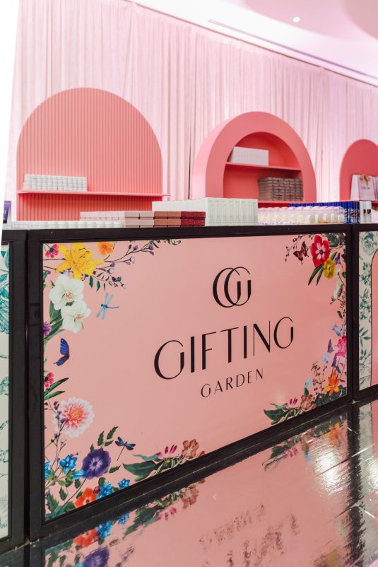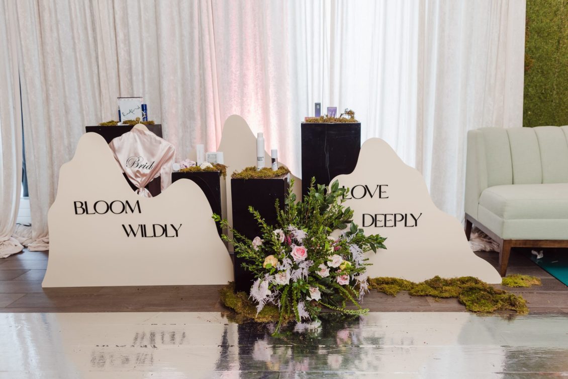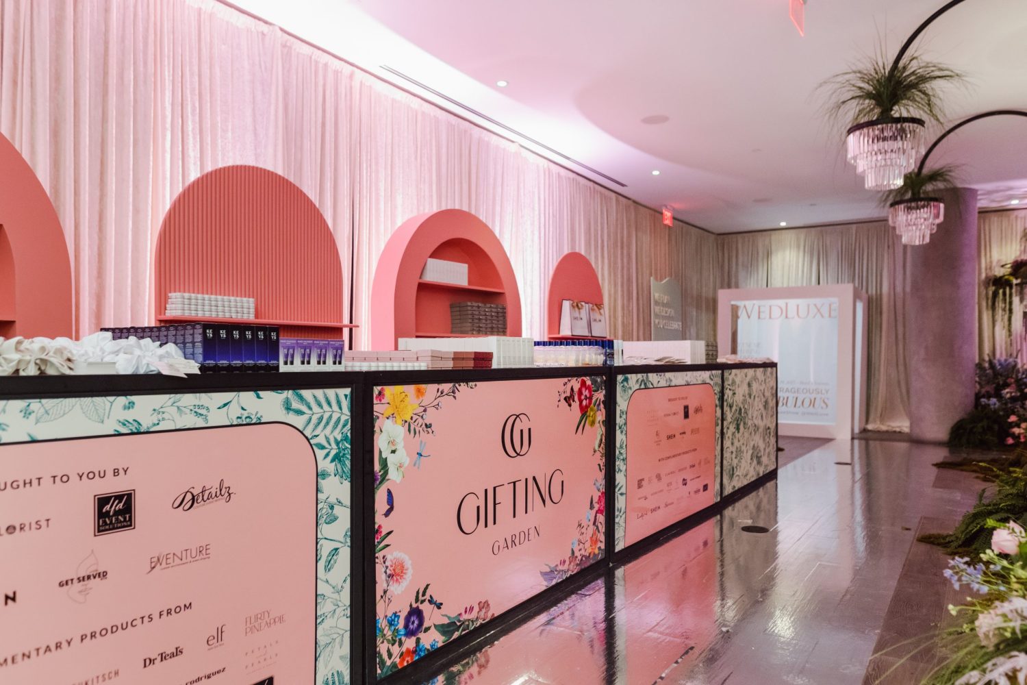 Gift Products: Sourcing and Procurement by Samantha Cass, Bella Geraghty @wedluxe, “Gifting Garden” Space Planning & Design @petalsandpearls, Floral Design @hennaflorist, Photo Opp Structure & Printed Decor (window decals, signage, bar decals, mirror flooring) @dfdeventsolutions, Furniture Rentals @detailzfurniturerentals, Gift Bar Backdrops @luxuryeventdecor_