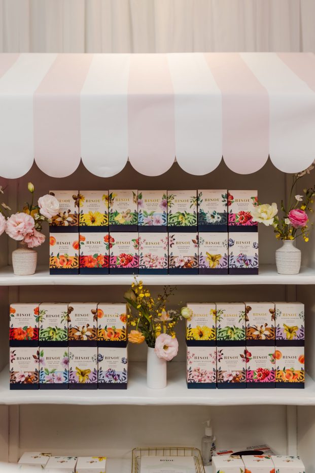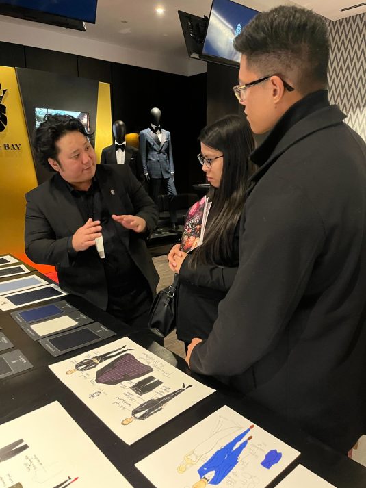 hosted The Bowtie Room at The 2023 WedLuxe Show, where guests could enjoy a luxe cocktail experience while admiring the brand’s extraordinary custom clothing on showcase.