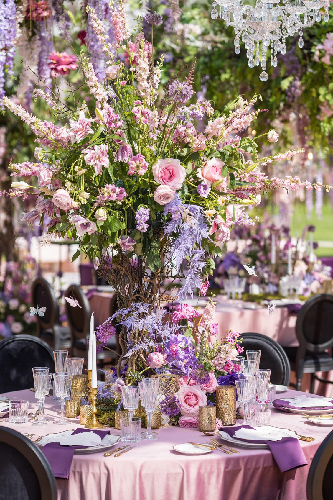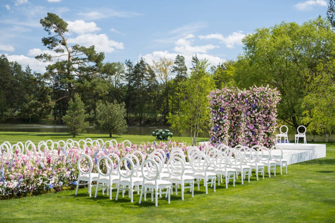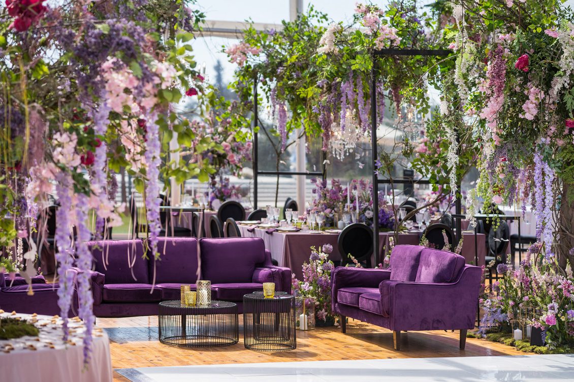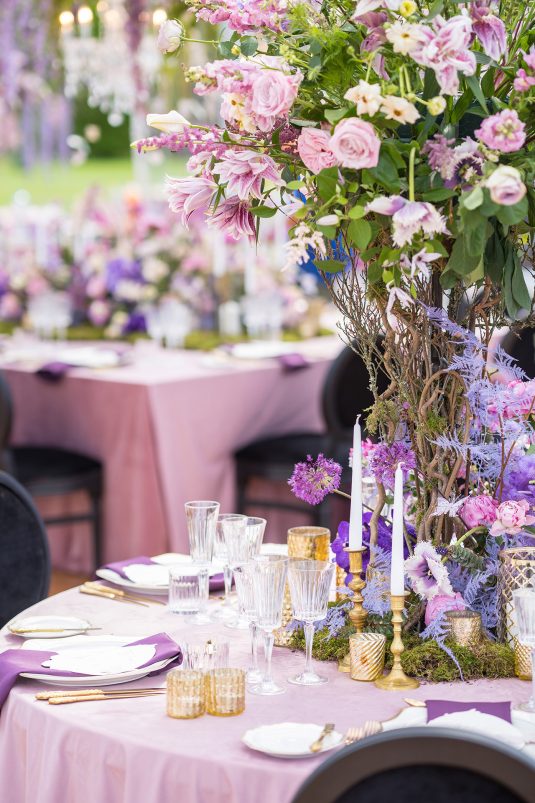 This might just be the ULTIMATE purple and pink, enchanted forest-themed wedding! Held outdoors at a private mansion in the Czech Republic, the celebrations were full of fun and entertainment, including a magical forest with animals (and a unicorn!), a ballet soloist, and more!
