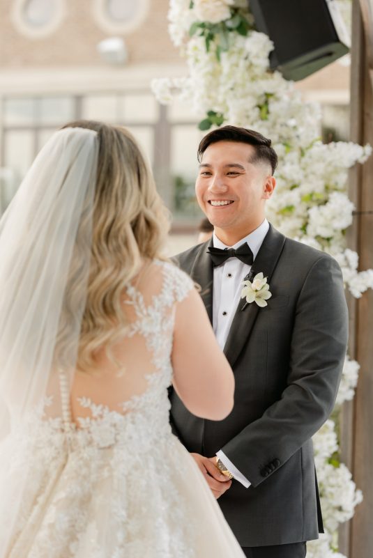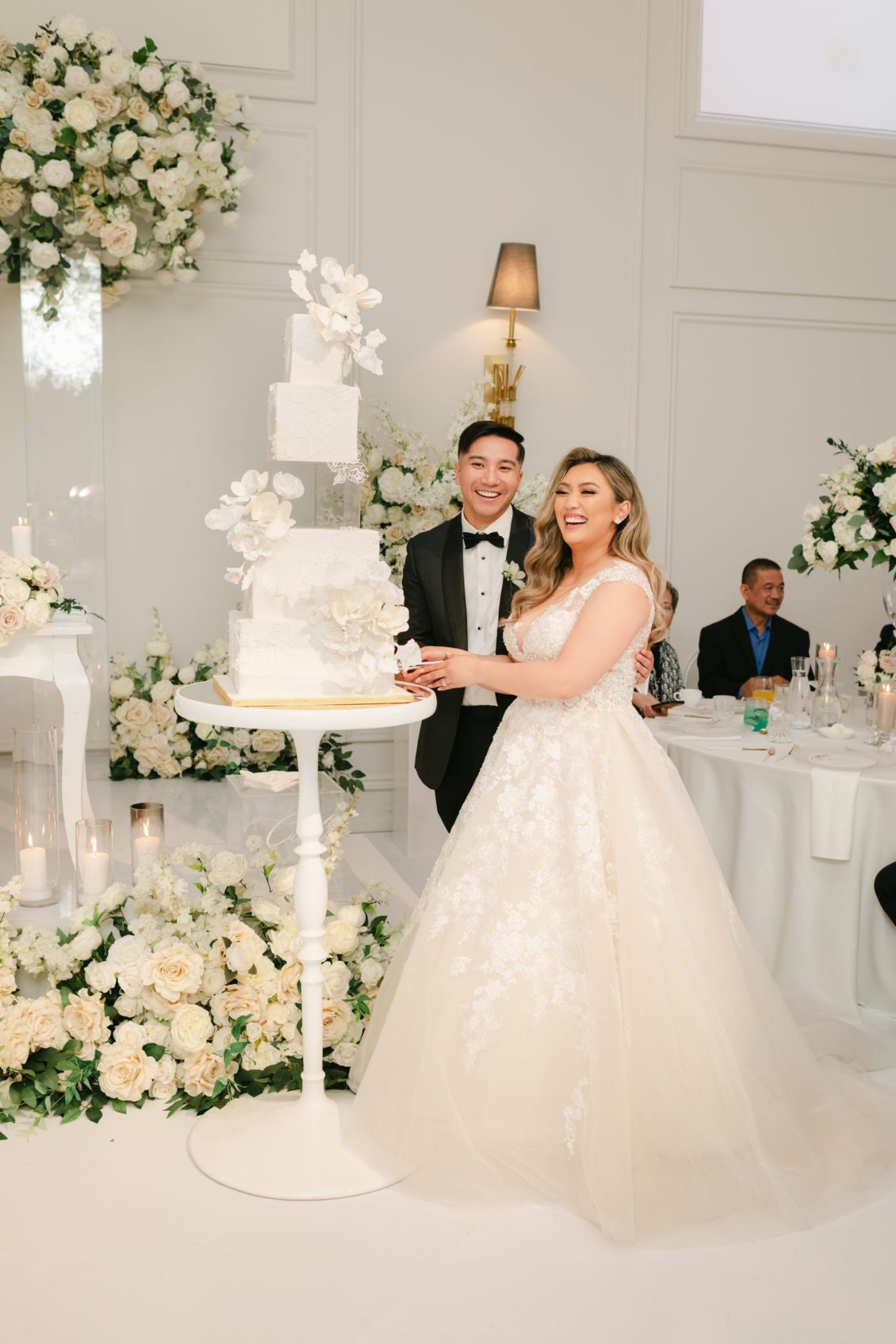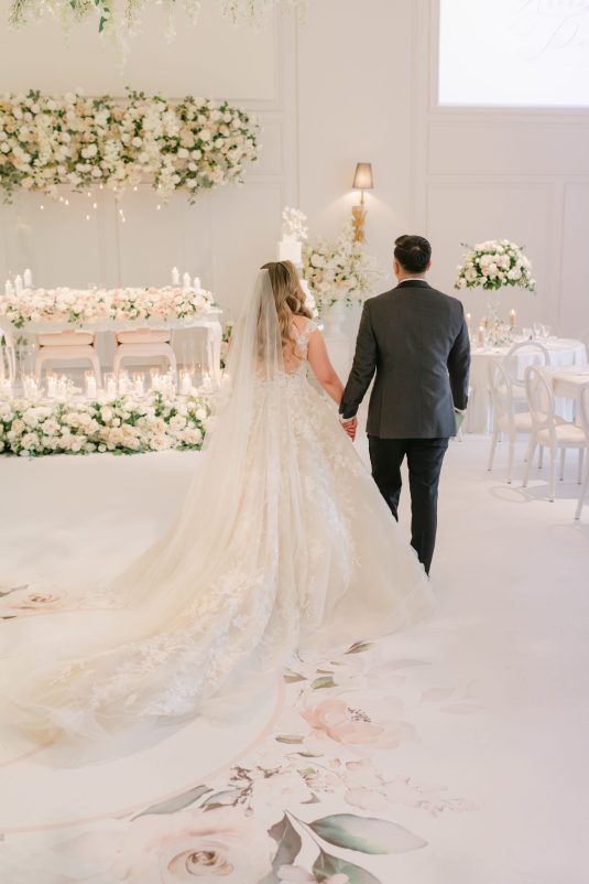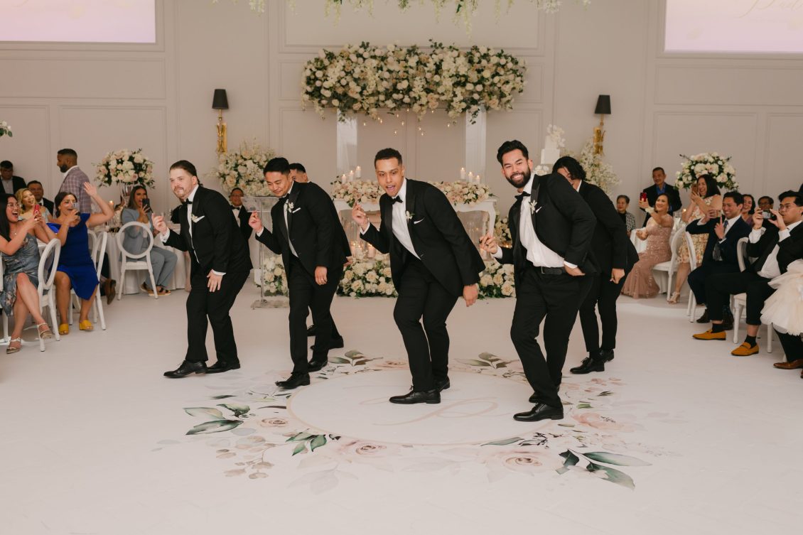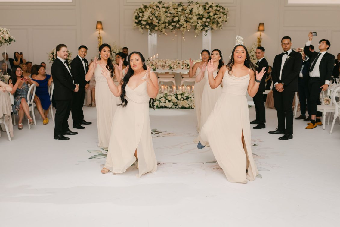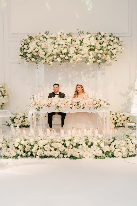 Photography @cloud9photo, Couple @hannahdavid._ @paolodavid_, Month-Of Coordination @fidan_designeddream, Floral and Event Design @royalorchidflorist, Getting Ready Venue @visionroom.ca, Wedding Venue and Catering @thearlingtonestate, Wedding Officiated by Pastor Josh of @porticocc, Stationery @paperdamsels, Studio Floral Design @lenasfloraldesigns, Ceremony Gown @demitriosbridalaustralia from @amandalinasofficial, Reception Dress @morileeofficial from @sophiesgownshoppe, Engagement Ring @suzannecruddenjewellery, Veil @noononthemoon.bridal, Earring @oliveandpiper, Makeup @muaveemakeupstudio, Hair @shanpetrohair, Hair Extensions @sparklehairextensionbar, Groom’s Tuxedo @garrisonbespoke, Bride and Groom’s Shoes @louboutinworld, Groom’s Watch @michaelkors, Bride’s Perfume and Groom’s Cologne @parfumsdemarly, Robes @pretty_robes, Bridesmaids’ Dresses @davidsbridal, Groomsmen’s Formalwear @tiptop, Furniture Rentals @detailzfurniturerentals, Flatware and Crystal Charges @sweetbeeteaparty, Glassware @plateoccasions, Lighting, AV and Rigging @bbblancevents, Entertainment (ceremony) @littleharpist, @bongo_and_b, MC @iamalltalk, Floor Vinyl @torontofloorwraps, Cake and Guest Favors @fruitilicious_cakes, Transportation @classic_rolls_royce_chauffer, Cinematography @julesmvideos
