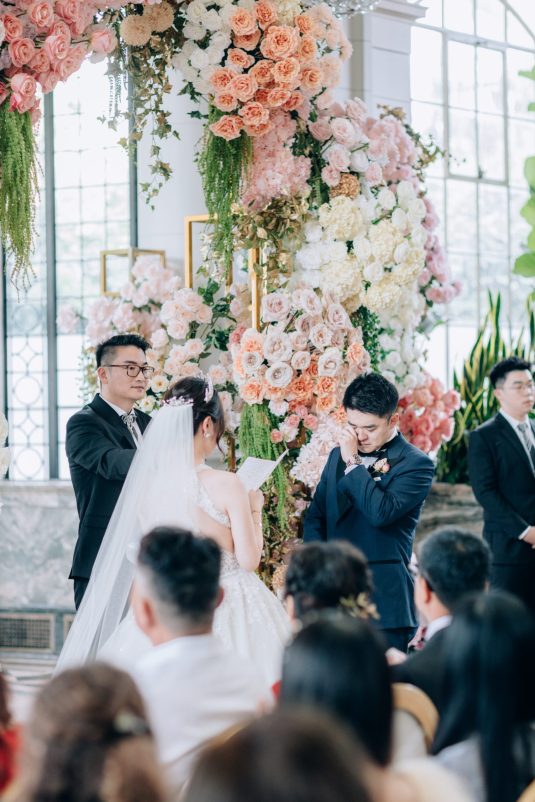 Photography @lamemoir, Groom @andygeng_, Event Planning and Design @fleurweddingstoronto, Floral Design, Arch Candles and Stands @infinitude_design, Venue @casalomatoronto, Wedding Invitations provided by Yun Mu, Day-Of Stationery provided by Dongge Liu, Engagement Ring @harrywinston, Wedding Dress @avenue22bridal, Beauty @louminousmakeup, Groom’s Formalwear @johnferrigamocustom, Cake @blanc.artistrycake, Linens, Furniture and Tabletop Rentals @chairmanmills, Flooring @whitedancefloors, MC Leo Shiu, DJ James Lau, Harpist @denisefungmusic, Cinematography @agistudio