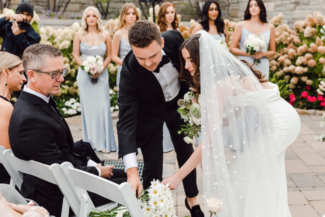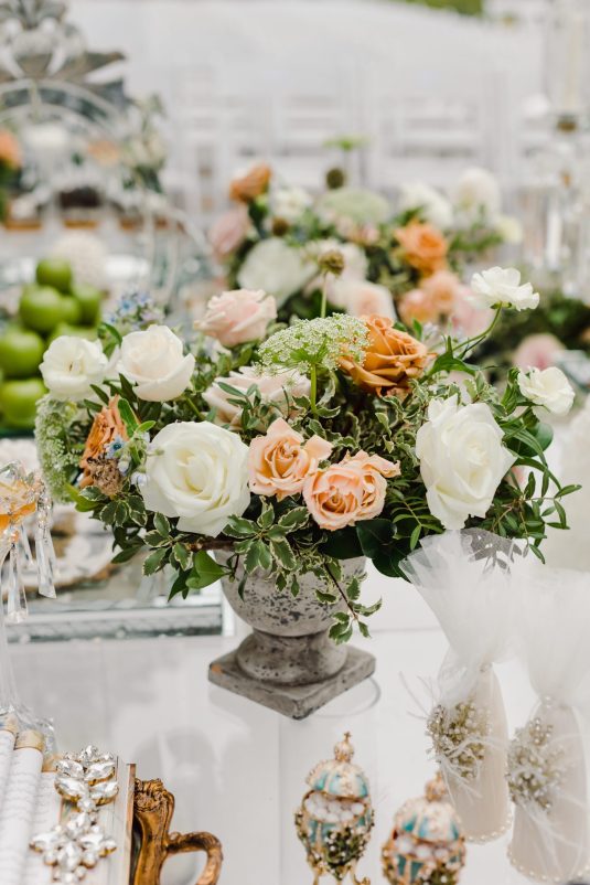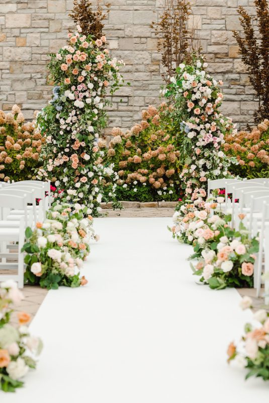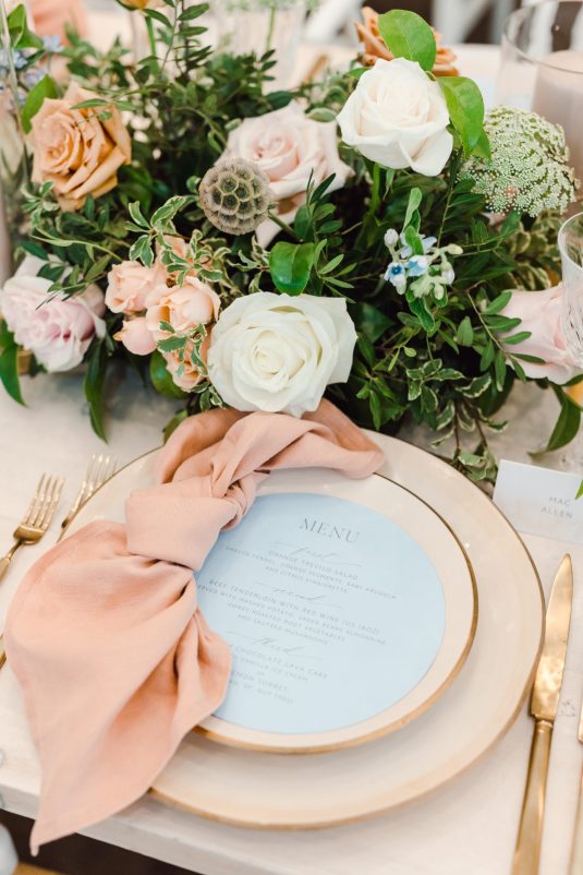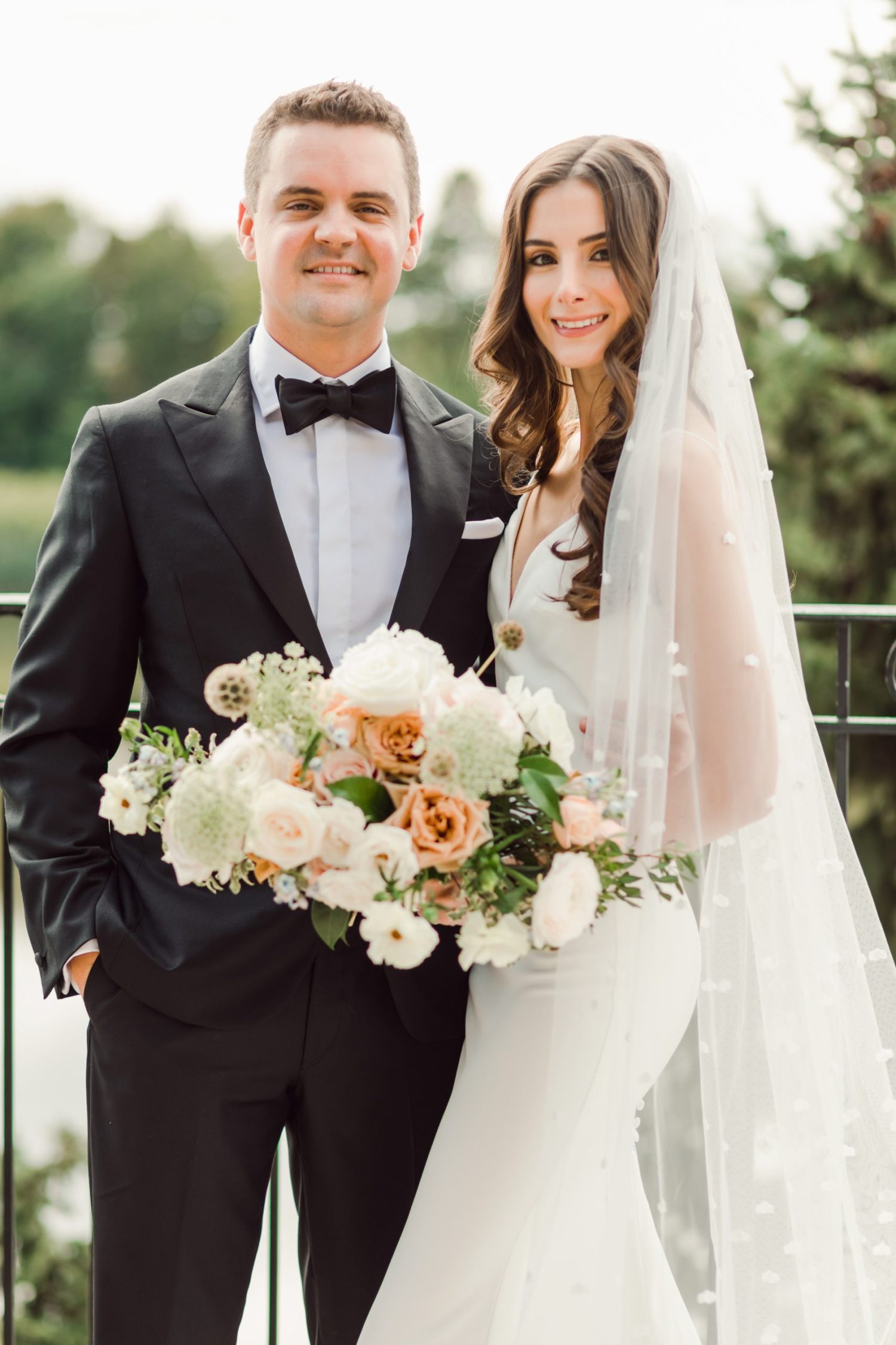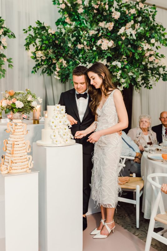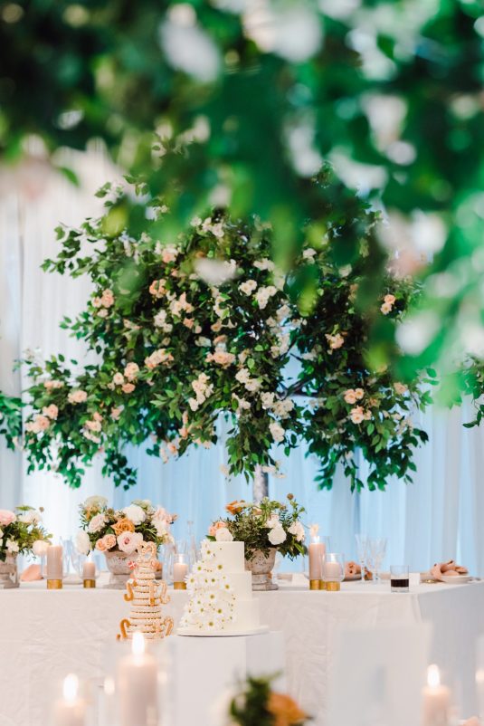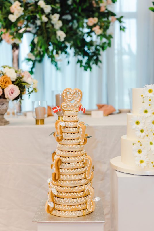 . “We wanted our wedding to feel inviting, cozy, ethereal but modern and garden-like at the same time.” shares Sara. The wedding design came together with warm florals, greenery, and terracotta hues. To honour Carsten’s late mother, her favourite flowers, daisies, were incorporated throughout the wedding’s design and Danish wedding cake.