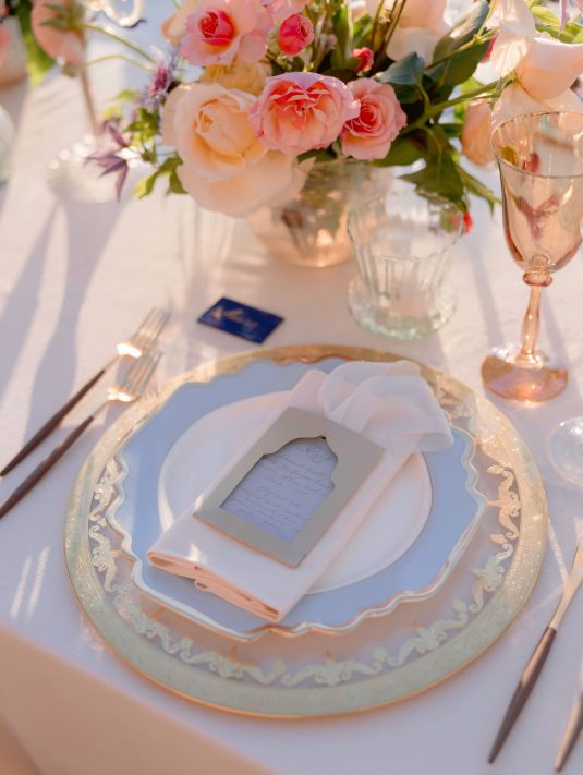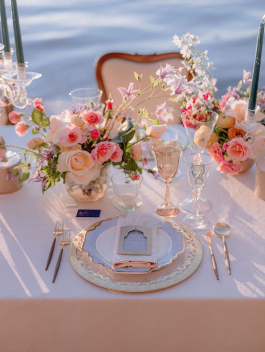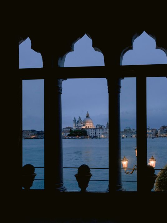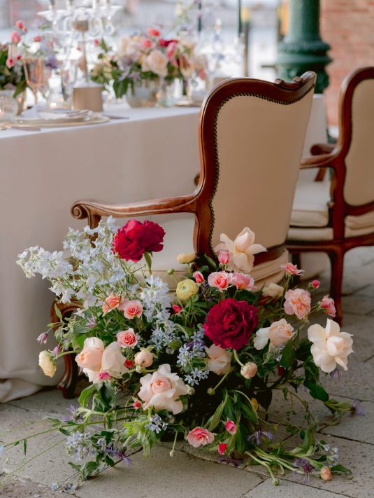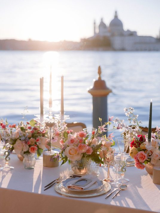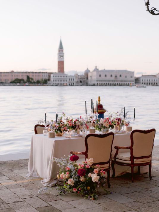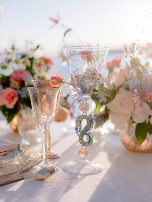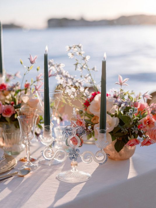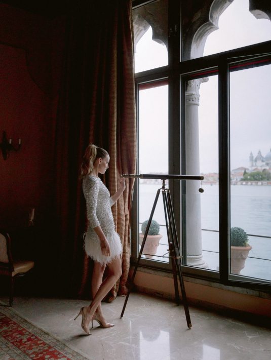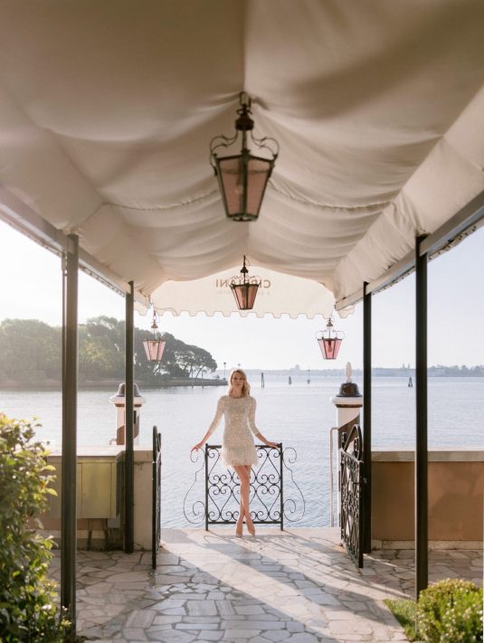 We love this DIVINE wedding fashion editorial that was captured at the hotel. With Murano glass being such a treasured part of Venice’s history, we love the inspiration from the beauty of glass in its many forms — from the model’s glittering beaded dress to the beautiful glassware.