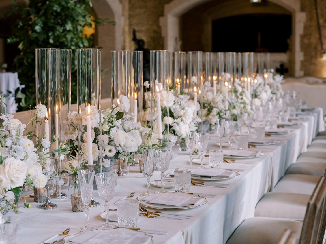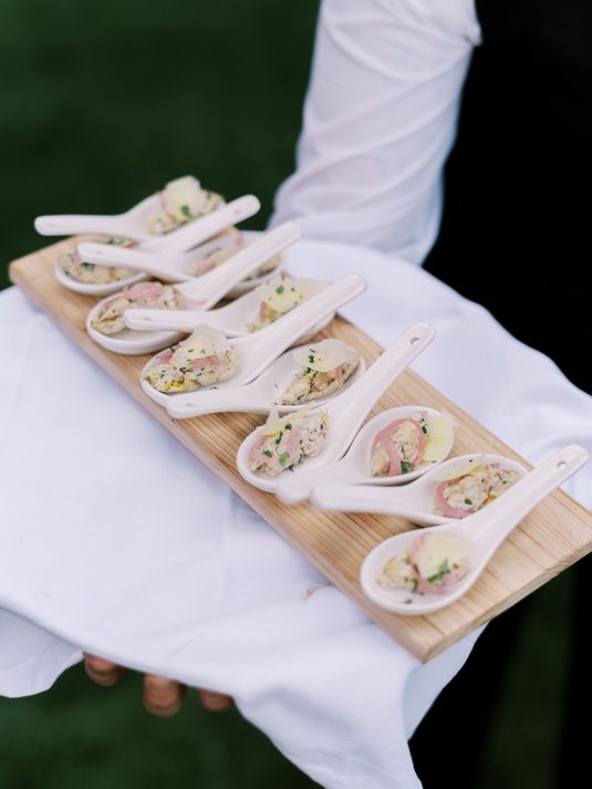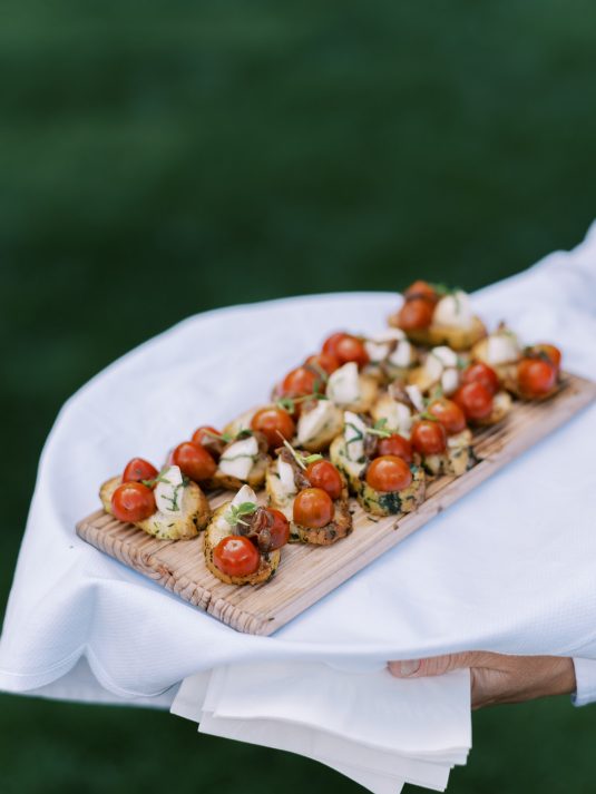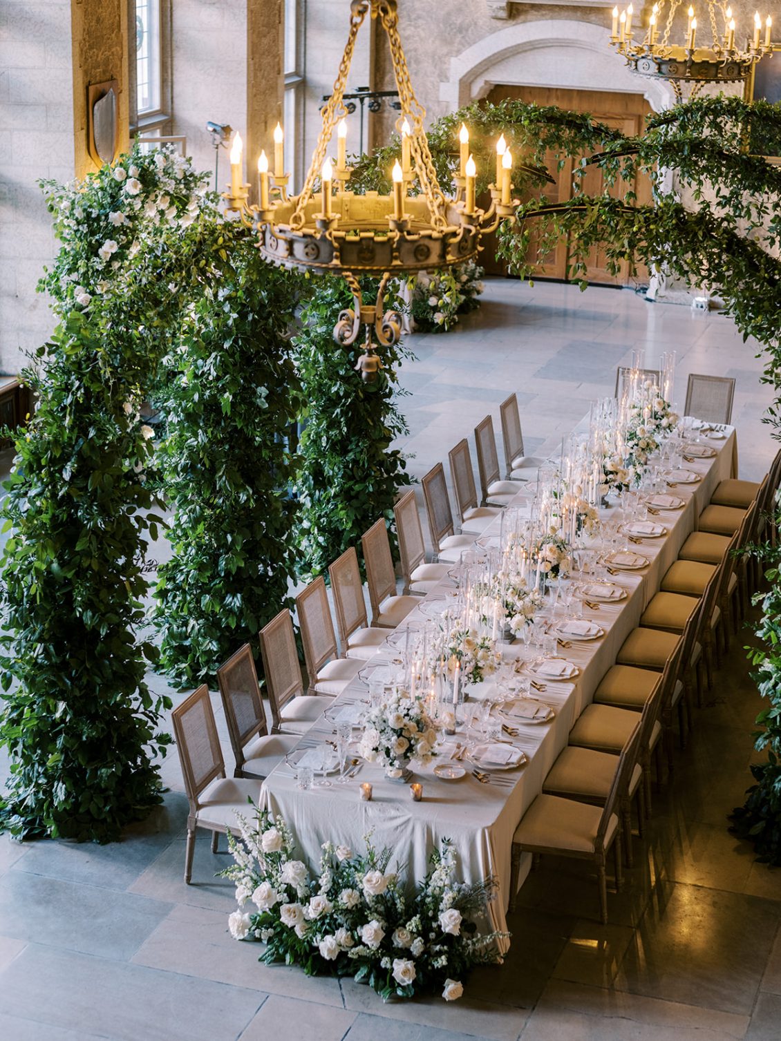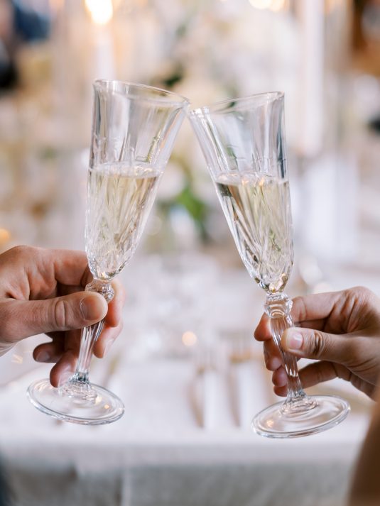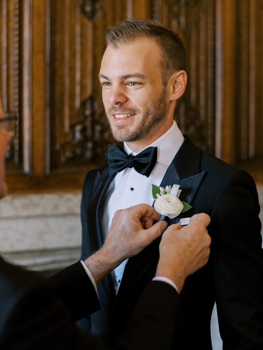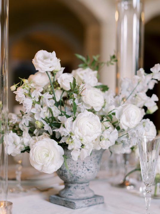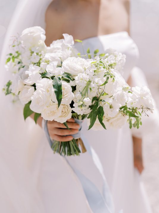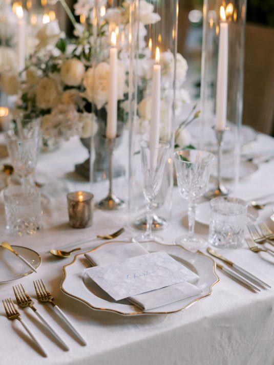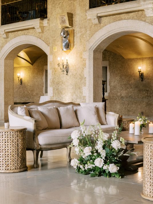 When San Francisco-based Misoo and Charles postponed their wedding in 2021, they eloped on their would-be honeymoon in Positano, Italy. They brought back elements to tie into their eventual destination wedding celebrations at the iconic Fairmont Banff Spring in Alberta, Canada. With the magnificent Canadian Rocky Mountains as the backdrop, a plein air cocktail hour serving “French Canadian 75” cocktails was followed by an elegant reception at the hotel’s ballroom, where guests dined beneath giant arches of fresh greenery. Talk about bringing the outdoors in! Scroll to see the details of this stunning event!
