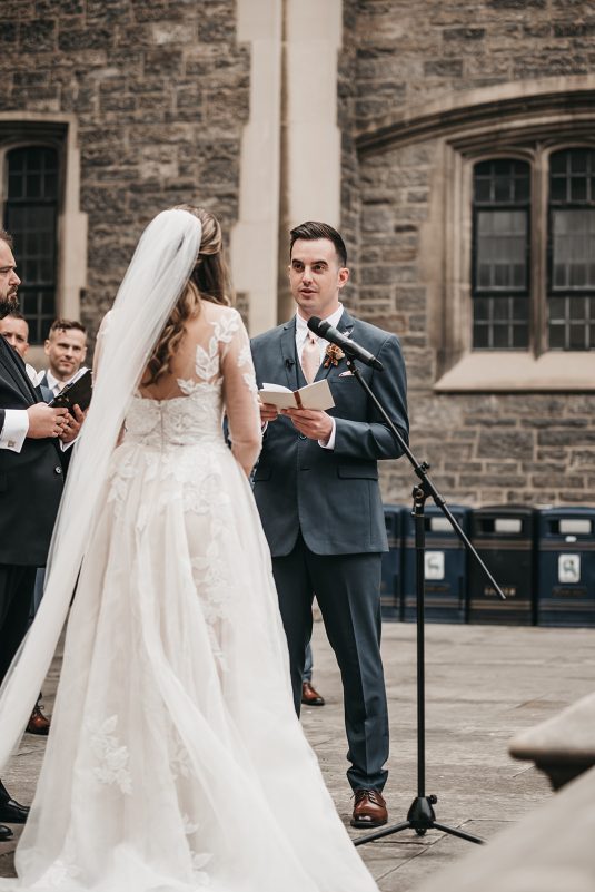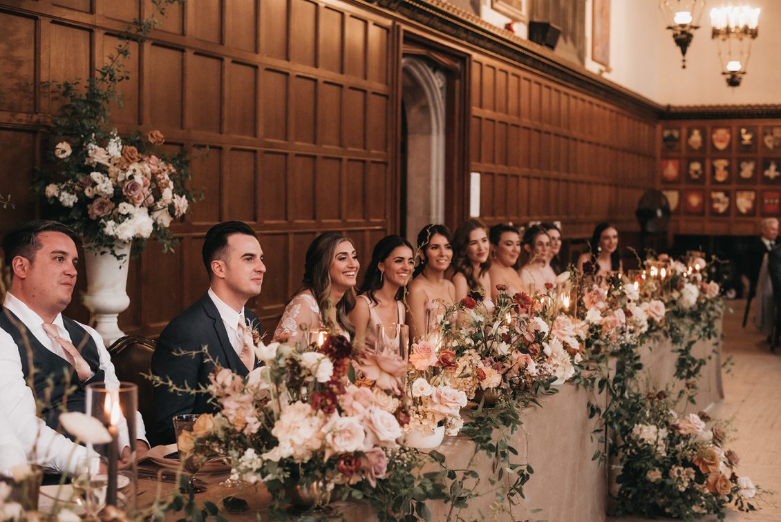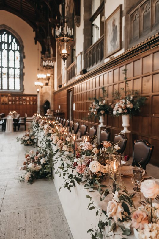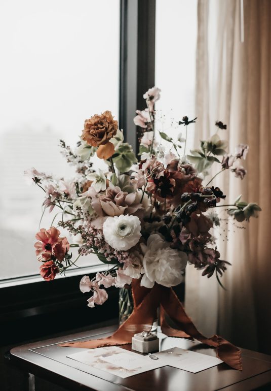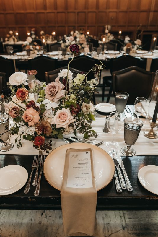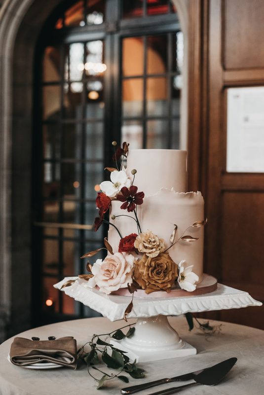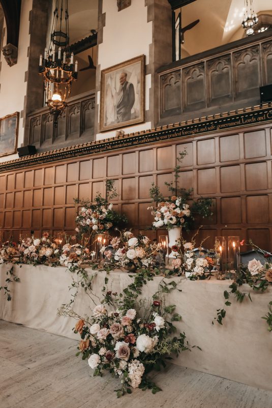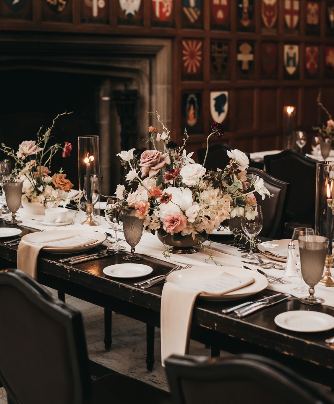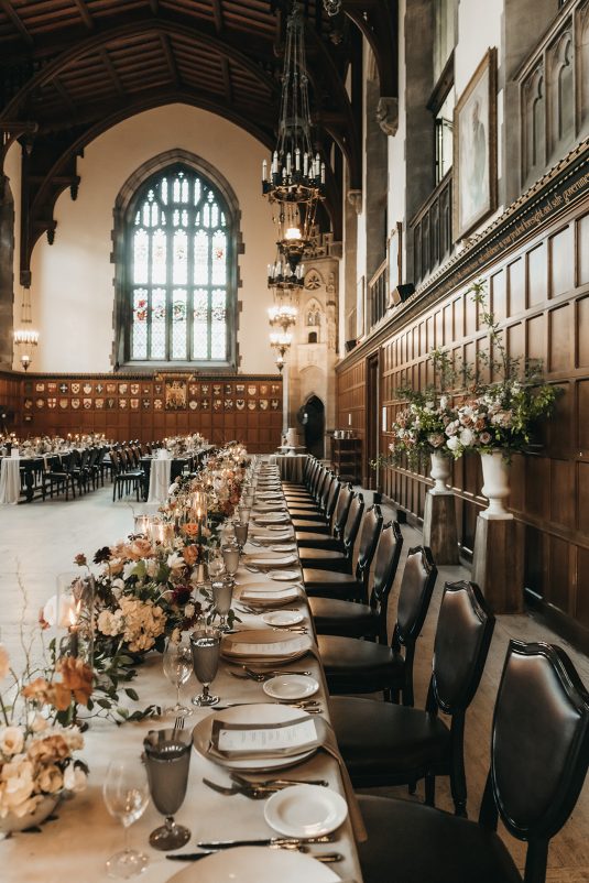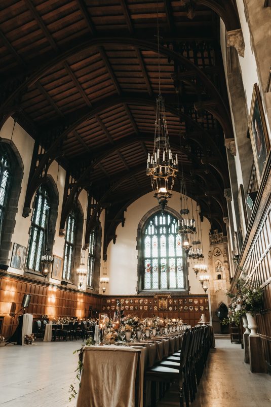 United States-based couple Hayden and Nate were married in Hayden’s hometown of Toronto, Canada. The caramel-hued wedding was designed to compliment the venue’s architecture, Hart House at the University of Toronto, with a moody-meets-ethereal vision and a carefully curated playlist to match — both lovers of great music, the bride and groom selected every song that played on their wedding day! We LOVE the old-world castle-like vibes of Hart House, channeling the feel of a castle banquet hall in the heart of a cosmopolitan city.