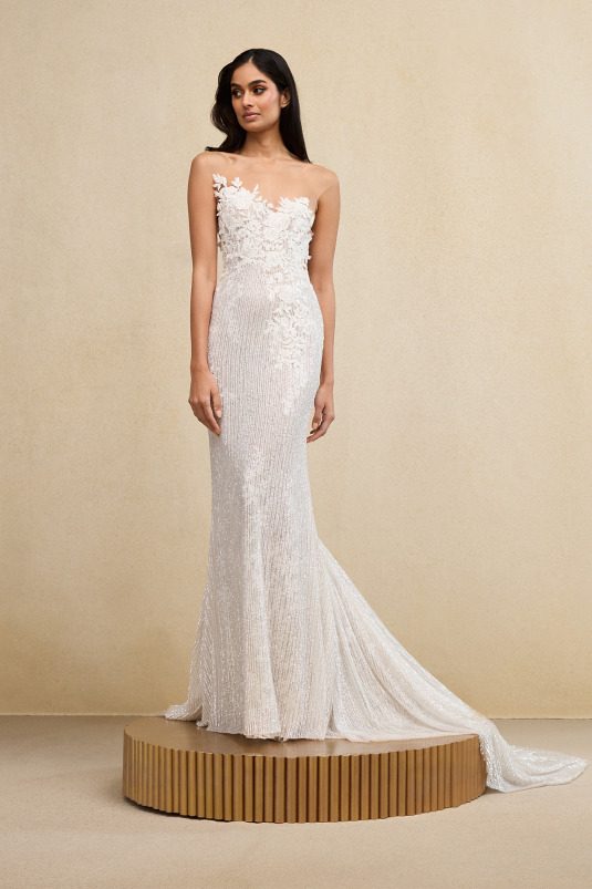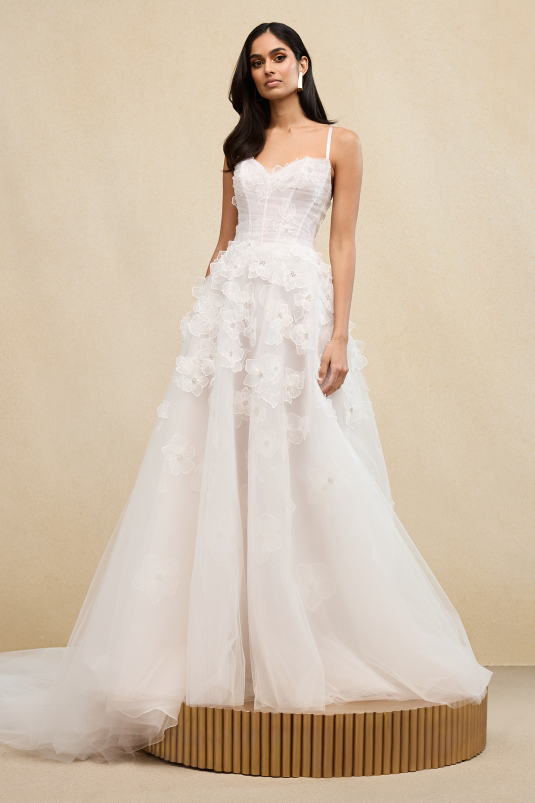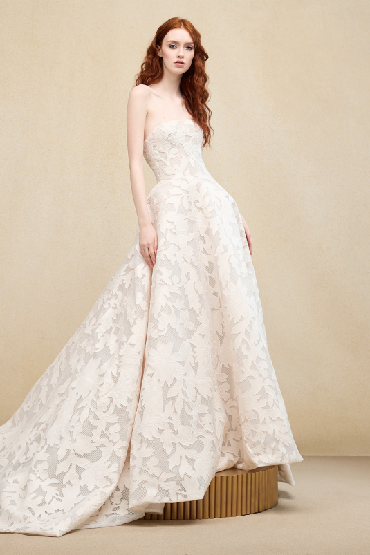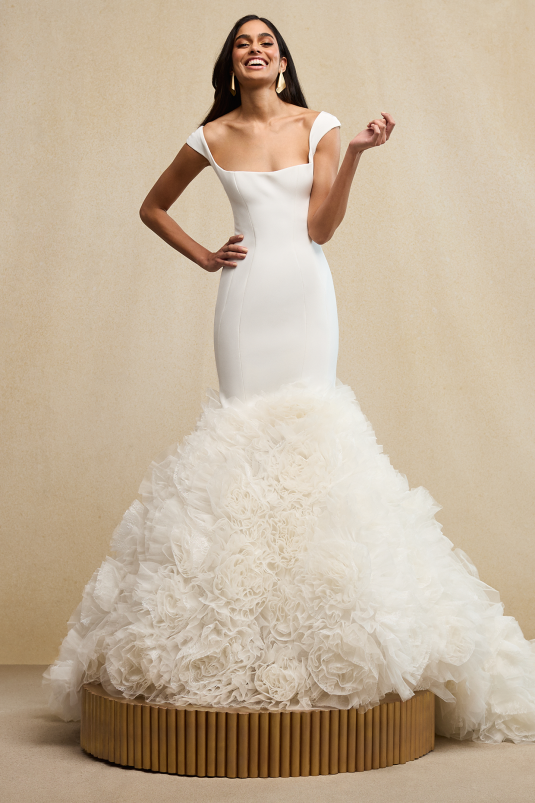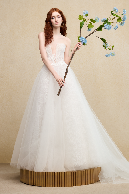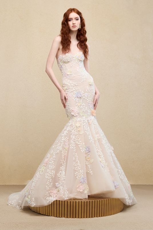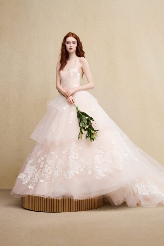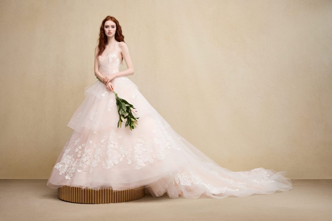 The 54th collection from Ines Di Santo’s namesake line, titled “In Full Bloom,” replicates the beautiful pastels and textures of springtime garden. “Every bride should feel like a flower in full bloom, beautiful and perfectly unique.” — Ines Di Santo